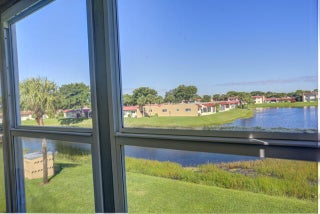 Wake up to the long lake view and enjoy the quiet privacy of the pool to the East or socialize with neighbors at the main clubhouse on the East side of the community. Golden Lakes has country club features without the initial fees and membership dues! Imagine joining the BBQ social, playing bingo mid afternoon or lounging in the sun overlooking the lake. There is Bocce, shuffleboard, a card room, billiards and an events space for movie night.The owners of this 2nd floor unit improved bathrooms and installed impact glass. It's ready for your special touches. The split plan allows for an occasional guest.A dedicated parking space is available directly in front of the stairs for this unit and a 2nd car can park in a guest spot. The condo can be leased after 1 year of ownership.