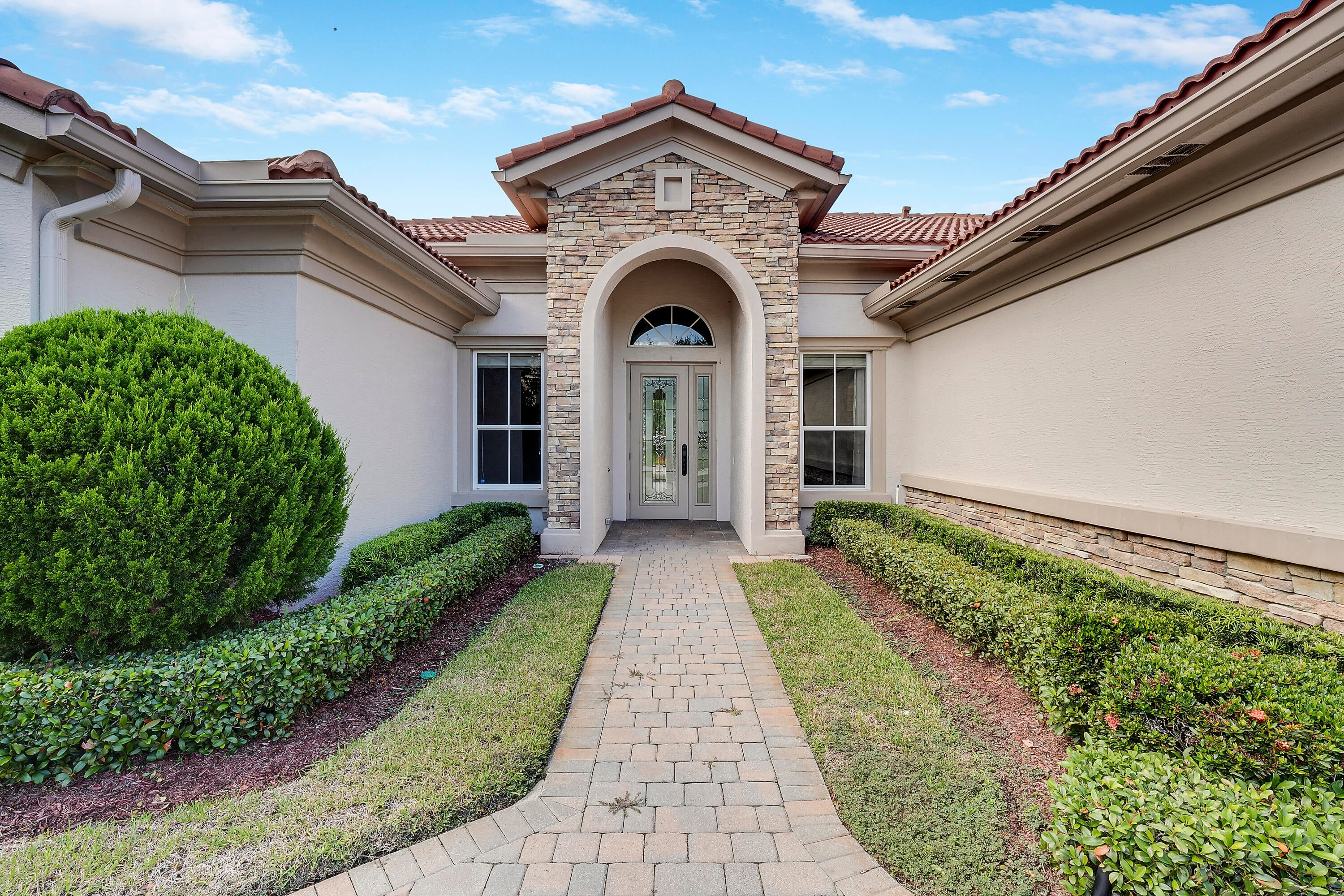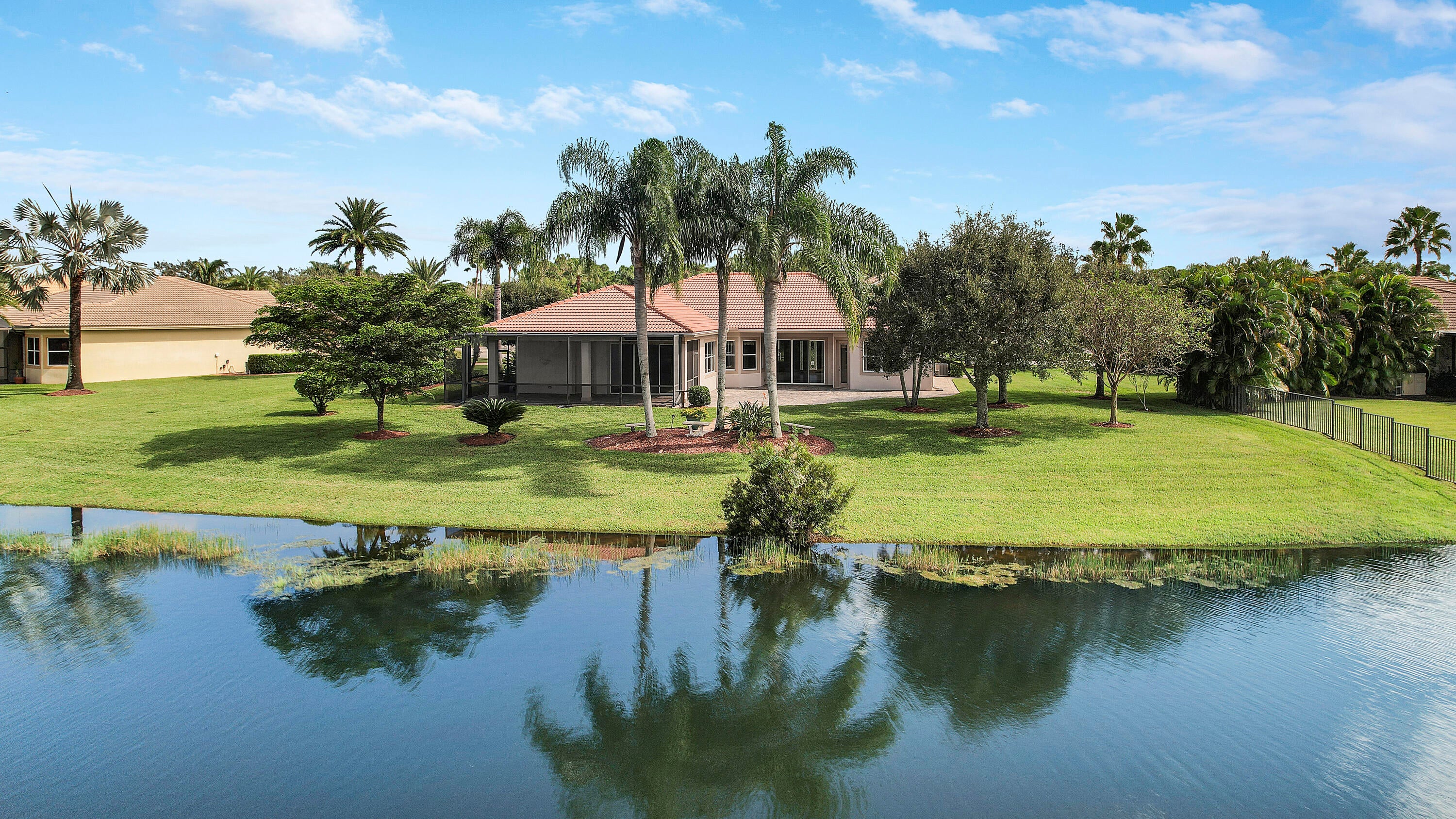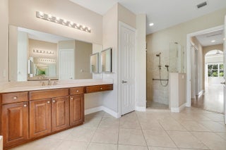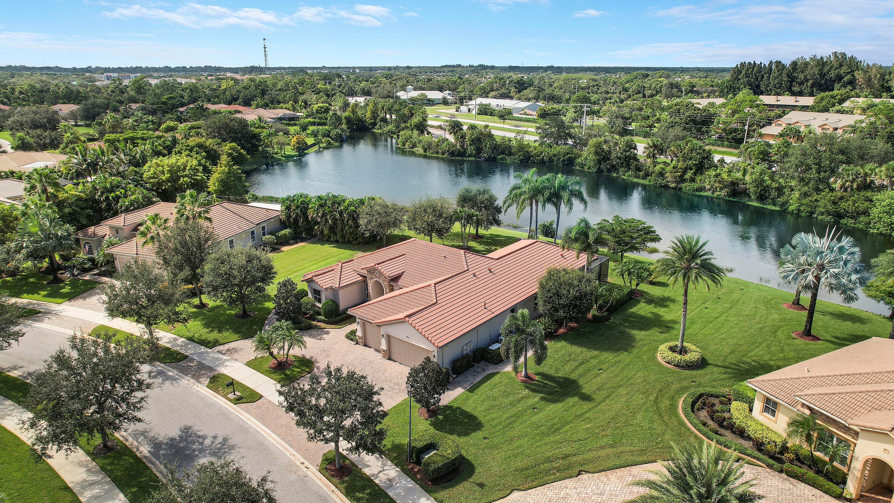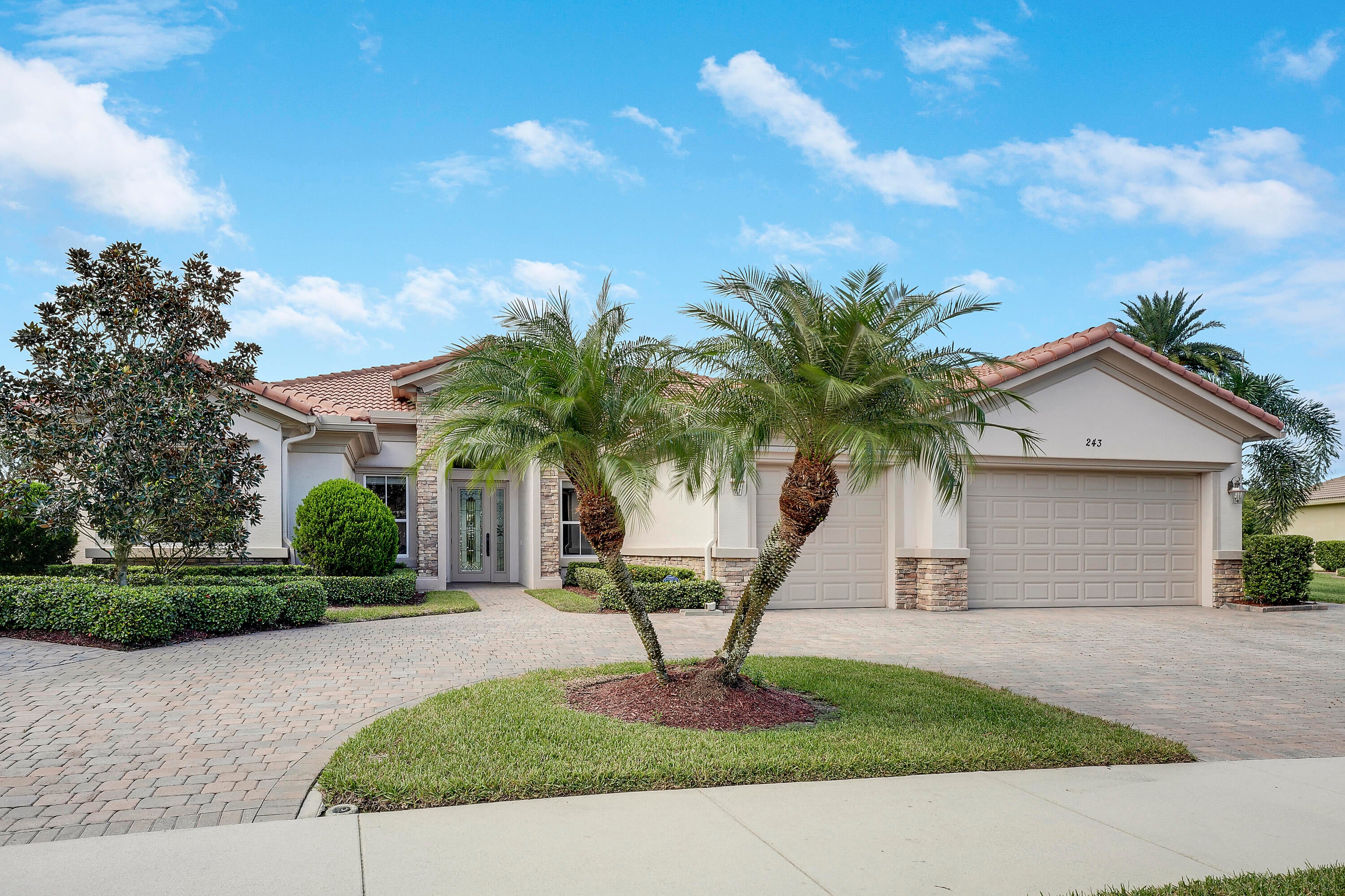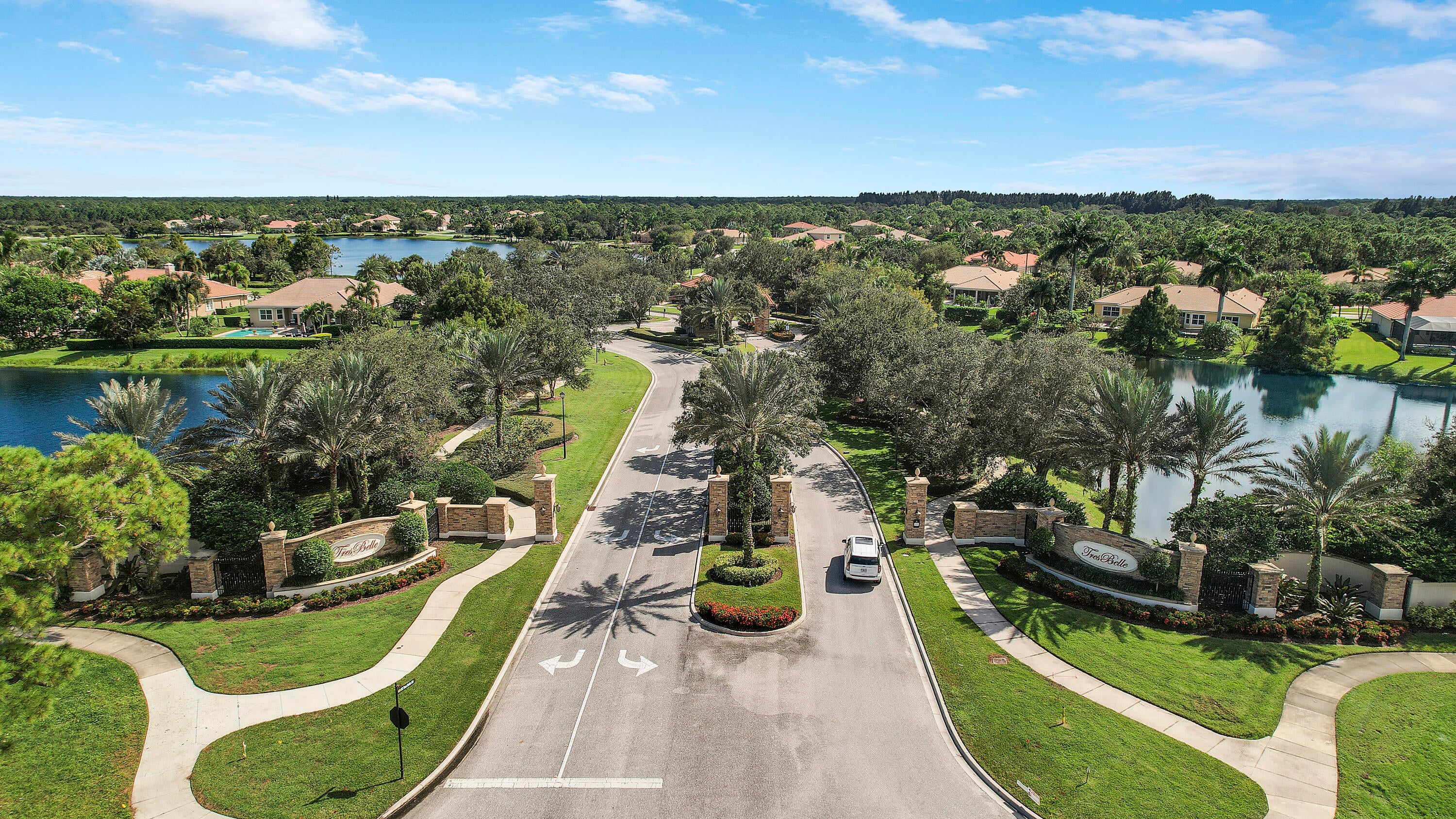 This stunning lakefront, single-story Calais model in the gated community of Tres Belle is perfectly positioned on a private half-acre lot. The home offers a thoughtfully designed split floor plan featuring 4 bedrooms plus den/office, 3.5 bathrooms, and a spacious 3-car garage. Interior highlights include volume ceilings, elegant crown molding, and a high-end gourmet kitchen ideal for entertaining. The primary suite provides a relaxing retreat with a spa-style bathroom and generous walk-in closets. Quality Kolter CBS construction is enhanced by a whole-house generator for peace of mind. Enjoy serene lake views from your covered patio and the privacy of a beautifully landscaped lot. Tres Belle is located minutes from downtown Stuart, top-rated schools, beaches, and shopping.This exceptional home won't last long! Schedule your private showing today.