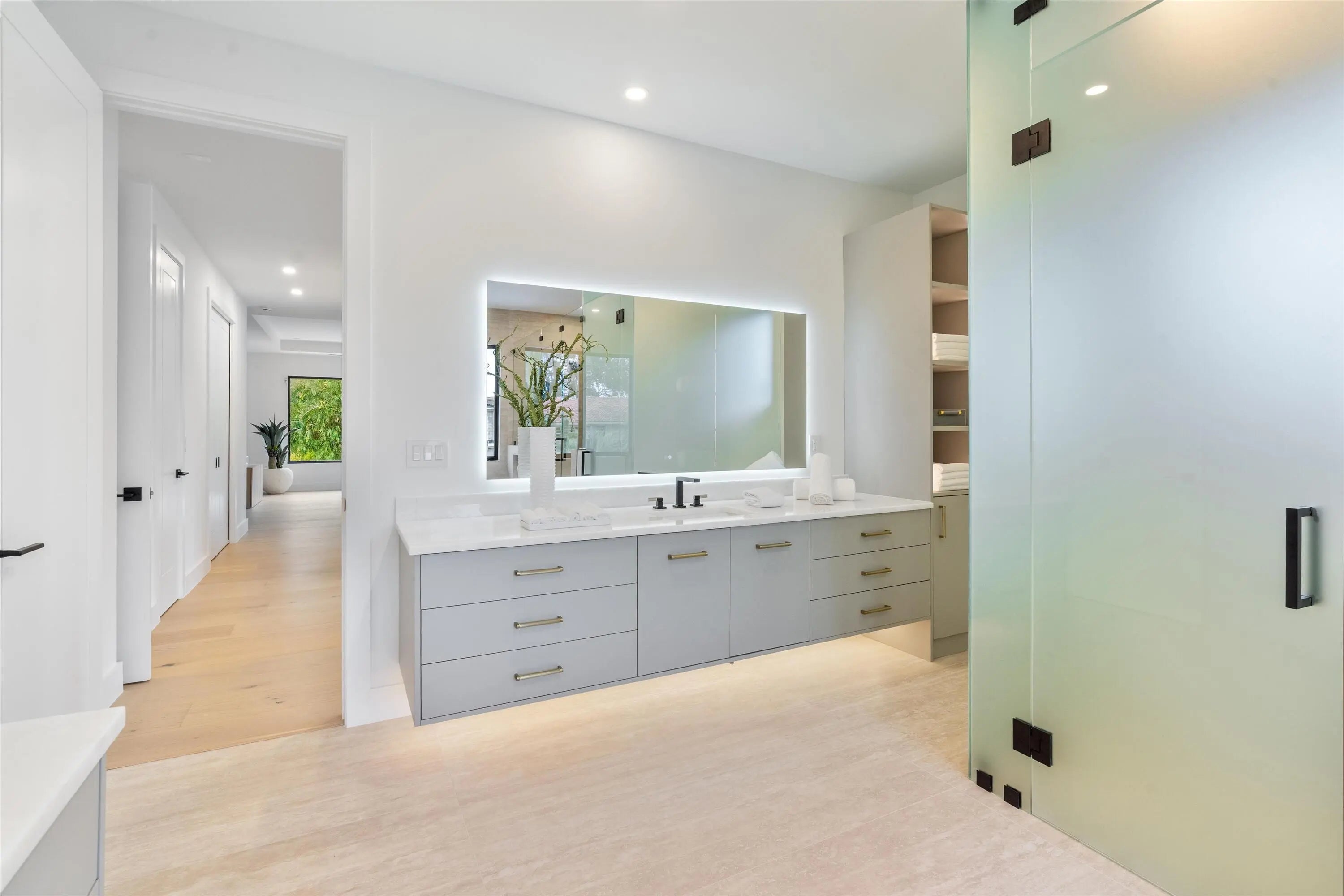 Stunning Modern Key West new construction showcasing a dramatic foyer with circular staircase that welcomes you to the expansive living room with 23' ceilings and an entire wall of glass overlooking the resort-style pool and deck. The open-concept chef's kitchen is a showstopper, featuring Miele appliances, 19' of quartz countertops, an 11' custom island, double wall ovens, and walk-in pantry. The first floor offers a private office/den, powder room, elevator and guest suite with cabana bath. Upstairs, a loft overlooks the living area below, leading to two ensuite bedrooms with walk-in closets. The luxurious primary suite includes a versatile bonus room, built-in coffee station, dual outfitted closets, private balcony, and spa-style bath with freestanding tub and 8' glass-enclosed