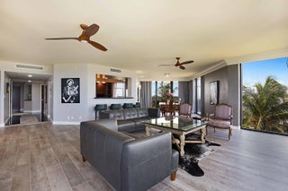 This is a RARE opportunity to rent a half-floor residence with unmatched panoramic ocean views in the exclusive, boutique building of The Ocean Club in Boca Raton. Owning 300 feet of private beach and with only 2 units per floor, 15 total units in the building, The Ocean Club is coveted and exceptionally desirable. This spacious, open, light and bright, 3 bedroom/3 bath condo has been beautifully remodeled and converted to a 2 bed/2.5 bath + expanded living area, which can easily be converted back to a 3 bedroom should renter desire. With 2,490 sf of living space, an open split bedroom floorplan, black marble and driftwood porcelain flooring, an abundance of floor-to ceiling impact windows and doors, and 3 separate balconies (one screen enclosed) off of the large living areas andbedrooms, you won't miss one sunrise, sunset, or a night of oceanfront stargazing. From the moment you step into this residence, you're greeted with exquisite detail, bright blue breathtaking panoramic ocean views, an overwhelming feeling of relaxation, and a beautiful feeling of home. Wake up to the calming sea from your Primary Bedroom and continue basking in the ocean's grandeur while enjoying a spa bath en-suite. The spacious eat-in kitchen with top-of-the-line stainless steel appliances and oversized serving hatch provides ocean views while you entertain in a dramatic and versatile fashion. Rounding off the amazing features of this condo is the in-unit, oversized laundry room with tub, which is both practical and convenient. The private, gated Ocean Club features 300 feet of deeded beach with gated access, tennis/pickelball court, heated pool and jacuzzi, community room and gym. This beautiful condo is offered unfurnished on an annual basis and includes garage parking plus an in-building, air conditioned storage unit.