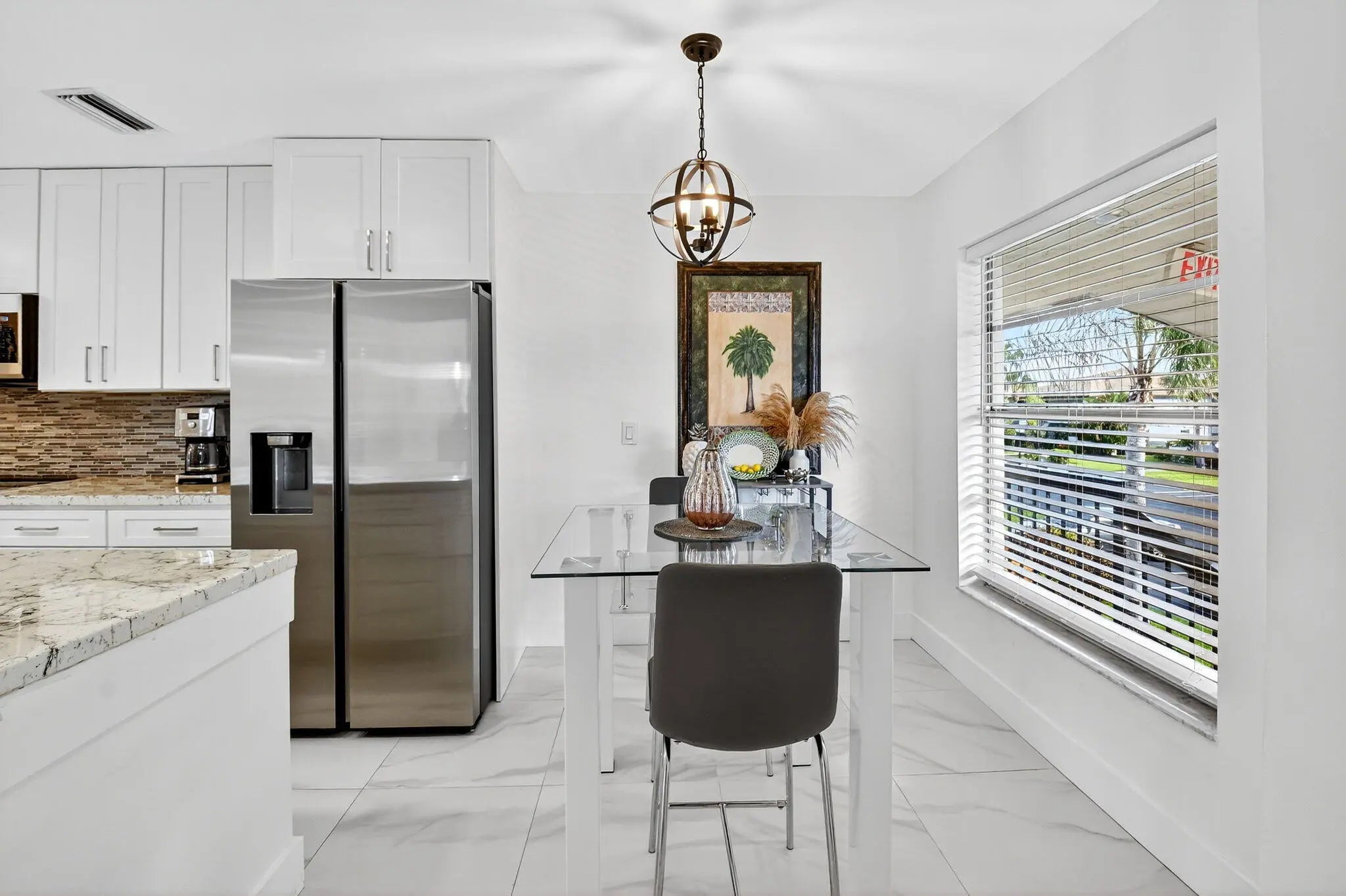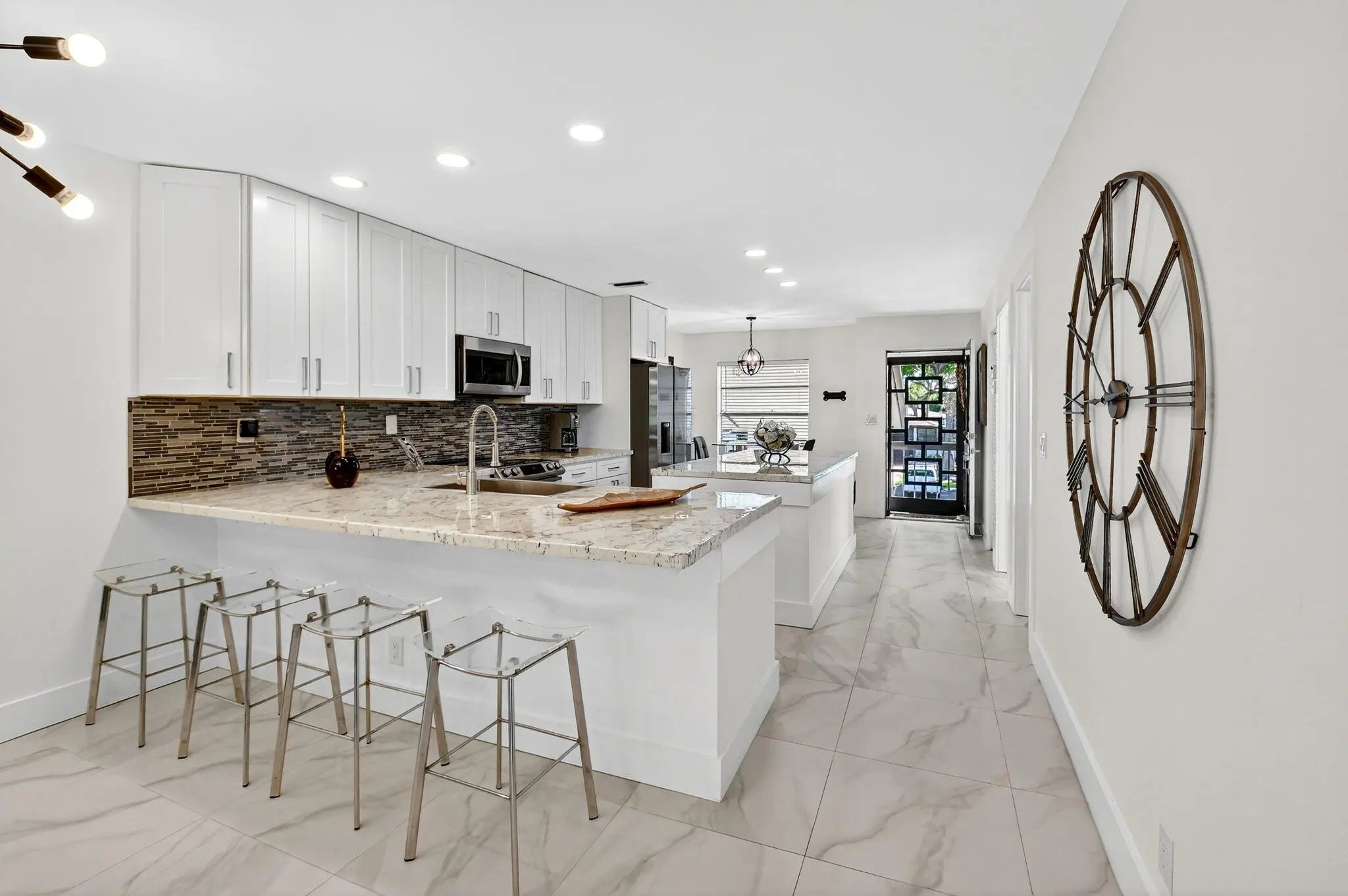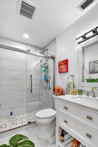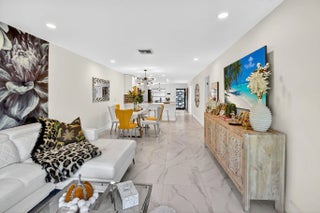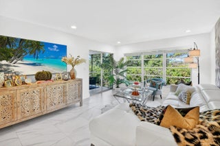 Step into luxury living with this recently and beautifully renovated corner 2 bed, 2-bath condo in the desirable Palm Greens community of Delray Beach. Bathed in natural light from its corner location, this turnkey residence has been reimagined with high-end design, top-tier finishes, and modern elegance throughout. The open-concept layout showcases beautiful large-format tile flooring, sleek pocket ceiling lighting, and an effortless flow ideal for both everyday living and entertaining. At the heart of the home sits an oversized kitchen island, perfect for gatherings, complemented by a chef's kitchen featuring high-end appliances, premium fixtures, and custom cabinetry.