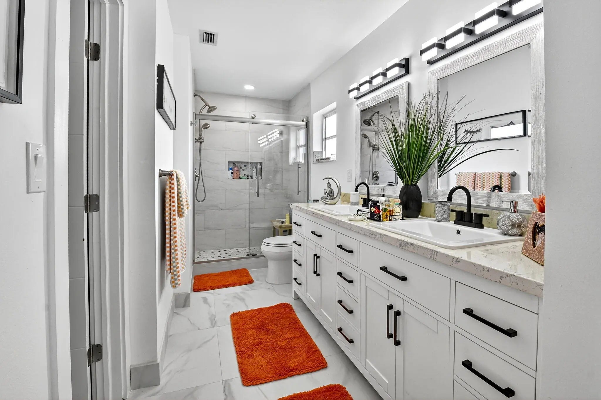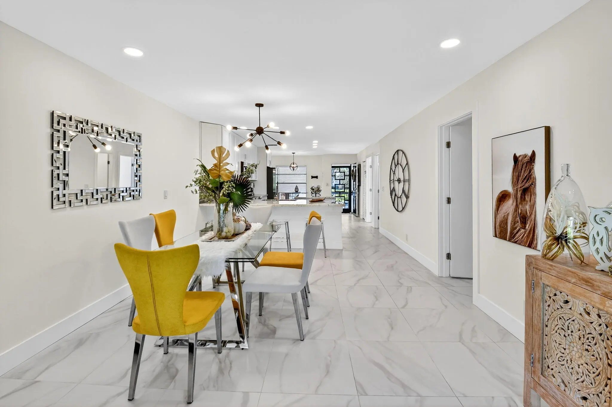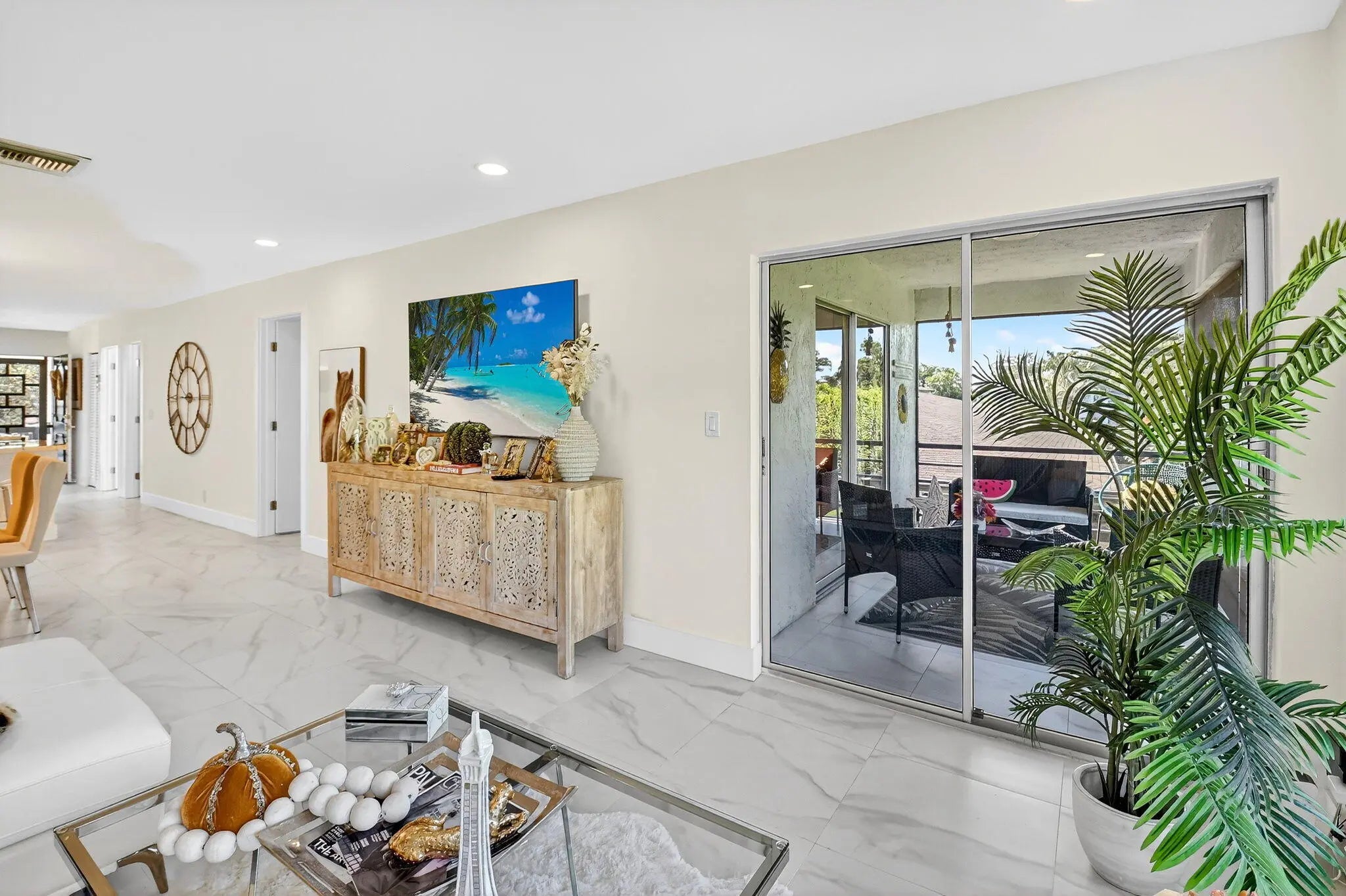 Step into luxury living with this recently and beautifully renovated corner 2 bed, 2-bath condo in the desirable Palm Greens community of Delray Beach. Bathed in natural light from its corner location, this turnkey residence has been reimagined with high-end design, top-tier finishes, and modern elegance throughout. The open-concept layout showcases beautiful large-format tile flooring, sleek pocket ceiling lighting, and an effortless flow ideal for both everyday living and entertaining. At the heart of the home sits an oversized kitchen island, perfect for gatherings, complemented by a chef's kitchen featuring high-end appliances, premium fixtures, and custom cabinetry.