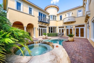 You are going to fall in love with this stunning courtyard estate boasting 8,360 total sq ft, and almost 6,400 sq ft living! This 5 bedroom, 5.5 bath, 3 car garage home is nestled in the highly sought after community of Azura in Boca Raton. The exterior of this home shines as the property's landscaping has been professionally done with tropical plantings. You also have luxury outdoor lighting, a beautiful free form pool with an elevated hot tub, and a stunning veranda with a wood plank ceiling for shade and comfort. The outdoor space truly encompasses Florida living at its finest.As you enter the custom oak front door, your jaw will drop! You will walk into the grand foyer with soaring ceilings overlooking the pool. The downstairs is perfectly designed as you have a large living room with tons of natural light, a huge game room / 5th bedroom with a coffered ceiling, a massive open chef's kitchen with a 6 burner Wolf gas range with dual ovens, GE Monogram refrigerator, Miele dishwasher, tons of storage, walk in pantry, butlers pantry, a beautiful long island, all overlooking the family room. As you go up the wrought iron staircase with solid marble steps you will be greeted with a split upstairs floorplan. The upstairs features 3 large guest bedrooms with on-suite bathrooms and custom walk-in closets and the Primary. The guest bedrooms are split from the primary for privacy. The primary bedroom is very large and overlooks the pool / courtyard. The primary bedroom encompasses an office space, his and her bathrooms with shower jets, Kohler fixtures, marble countertops, glass showers, two large closets, and a balcony! All the bedrooms upstairs are finished with hardwood flooring. To complement the bedrooms upstairs, you also have a loft and a generously appointed laundry room! When designing this estate the owners spared no expenses. Some of the features include: All impact glass, whole house generator, 18x18 Saturnia marble tiles throughout the living areas, an elevator right off the master suite, 5 sets of french doors leading to the courtyard, sound system, Tesla charger in the garage, custom plantation shutters, security alarms for the pool, interior low voltage lighting, and so much more. Azura is a man gated community and features a beautiful 7,000 sq ft clubhouse with fitness center, club room, game room, resort style pool and more. The community also offers two har-tru tennis courts. One major bonus of living in this home is you will be zoned for some of the best schools in the state, all A rated! Additionally, you will be close to all of the fine shopping and dining Boca Raton has to offer!