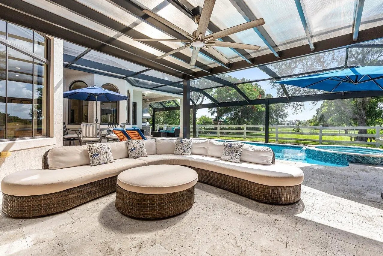Spectacular estate home situated on a prime 1/2-acre interior lot in the prestigious, gated community of Equus. This beautifully updated residence offers approximately 6,600 total square feet with 6 bedrooms and 6 full baths, thoughtfully designed to accommodate both everyday living and entertaining.The main living areas feature volume ceilings, a gas fireplace, and an open, airy floor plan. The chef's kitchen is equipped with quartz countertops, quality appliances, generous cabinetry, and flows seamlessly into the family room. Additional interior highlights include custom closets, impact windows, and a generator hookup. The roof was replaced in 2022.