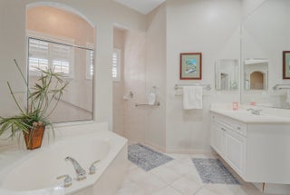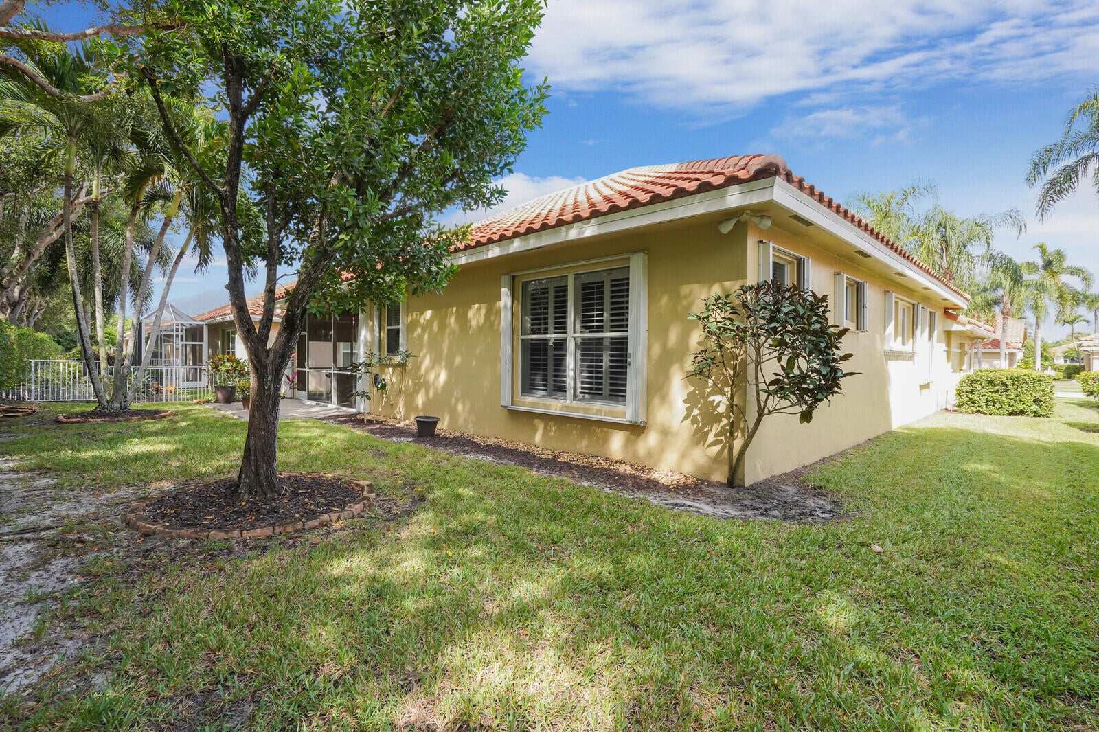 THIS HOME WAS GREATLY LOVED AND WELL MAINTAINED. LOW HOA! NO FLOOD ZONE! 20 MIN TO AIRPORT. EAST LOCATION. THIS 3 BEDROOM BEAUTIFUL HOME HAS THE PERFECT LAYOUT. ALL PLANTATION SHUTTERS THROUGHOUT. THE PRIMARY BEDROOM IS AN EXTREMELY SPACIOUS LARGE SUITE. THE SPLIT BEDROOM LAYOUT OFFERS PRIVACY FOR YOU AND YOUR GUESTS. AN ENGLISH STYLE SCREENED IN PATIO HOSTS BEAUTIFUL LANDSCAPING VIEWS. THE OUTER PAVED PATIO IS A GARDEN OF TRANQUILITY SOUNDS OF BIRDS CHIRPING ALL AROUND. A PEACEFUL & SERENE OUTDOOR SETTING. THIS EXTRAORDINARY HOME COULD BE YOURS. JOG ESTATES IS A GATED 55+ SMALL NEIGHBORHOOD WITH DIFFERENT STYLE HOMES. FRIENDLY & UNIQUE. A PRETTY COMMUNITY POOL & CLUBHOUSE. JOG ESTATES IS NEAR ALL SHOPPING, RESTAURANTS, 5-8 MILES TO CLOSEST BEACH, NEAR ALL HWY'S. CLOSE TO BOCA & DELRAY