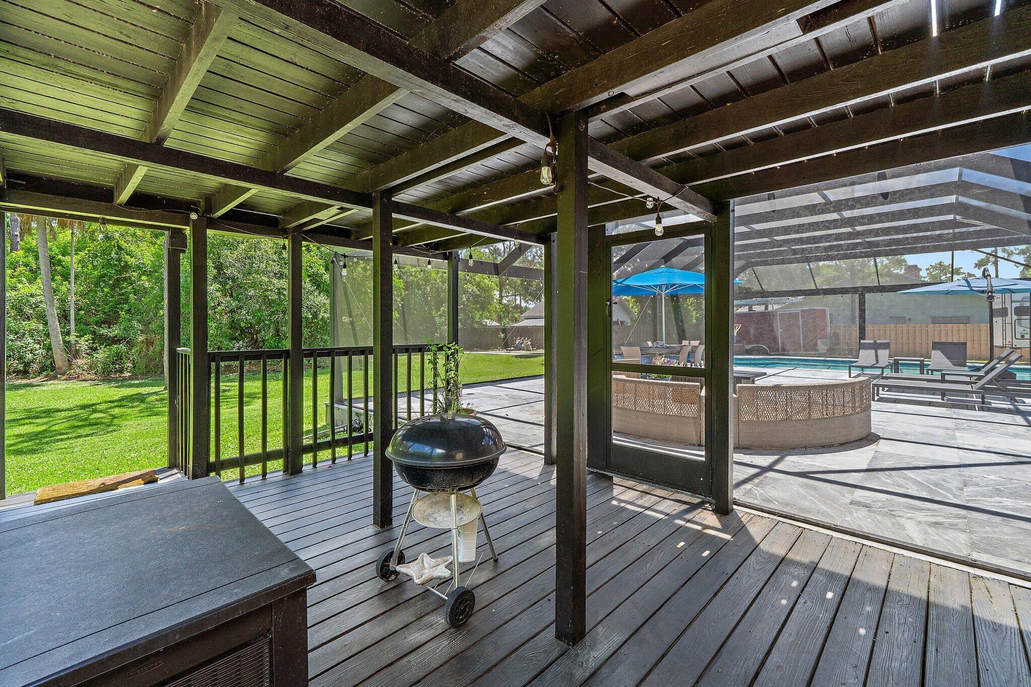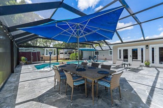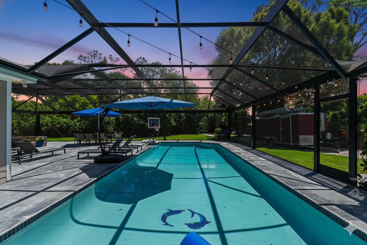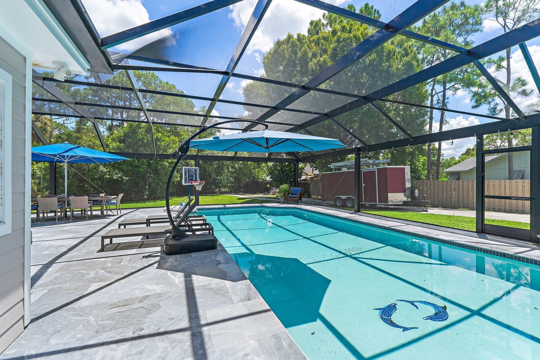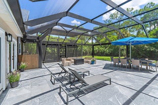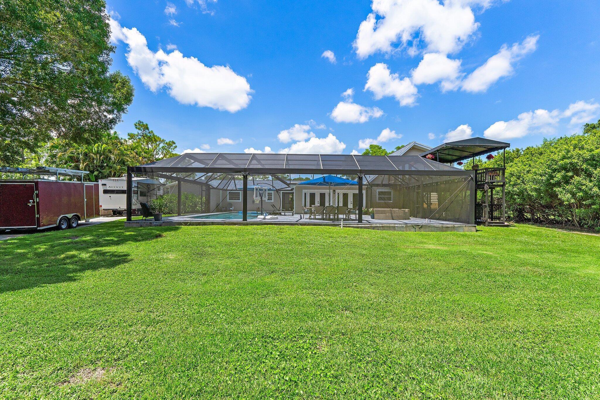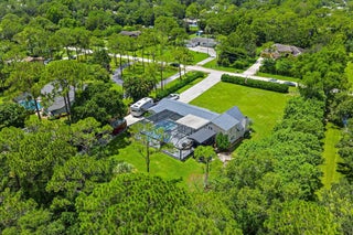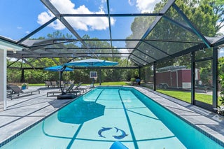 Discover Jupiter Farms living in this updated 3BR/3BA pool home on 1.25 acres with no HOA. 2022 roof, partial impact windows & hurricane-rated pool enclosure (2023). Spacious family room w/ custom built-ins, oak loft, remodeled kitchen w/ quartz, stainless appliances & built-ins. Bathrooms updated w/ quartz, seamless glass & custom cabinets. Flooring includes porcelain tile, engineered wood & oak stairs. Primary suite has private deck; 3rd BR currently office w/ built-ins. 3.5-bay garage ideal for storage/workshop. Outdoor living features 30-ft screened patio, saltwater pool w/ heater & chiller, lush landscaping & summer kitchen hookups. Minutes to schools, parks, shopping, dining & beaches.Updates: Roof 2022, Pool Heater/Chiller 2022, A/Cs 2016 & 2022, Kitchen 2021, Baths 2021-22, PoolEnclosure 2023.