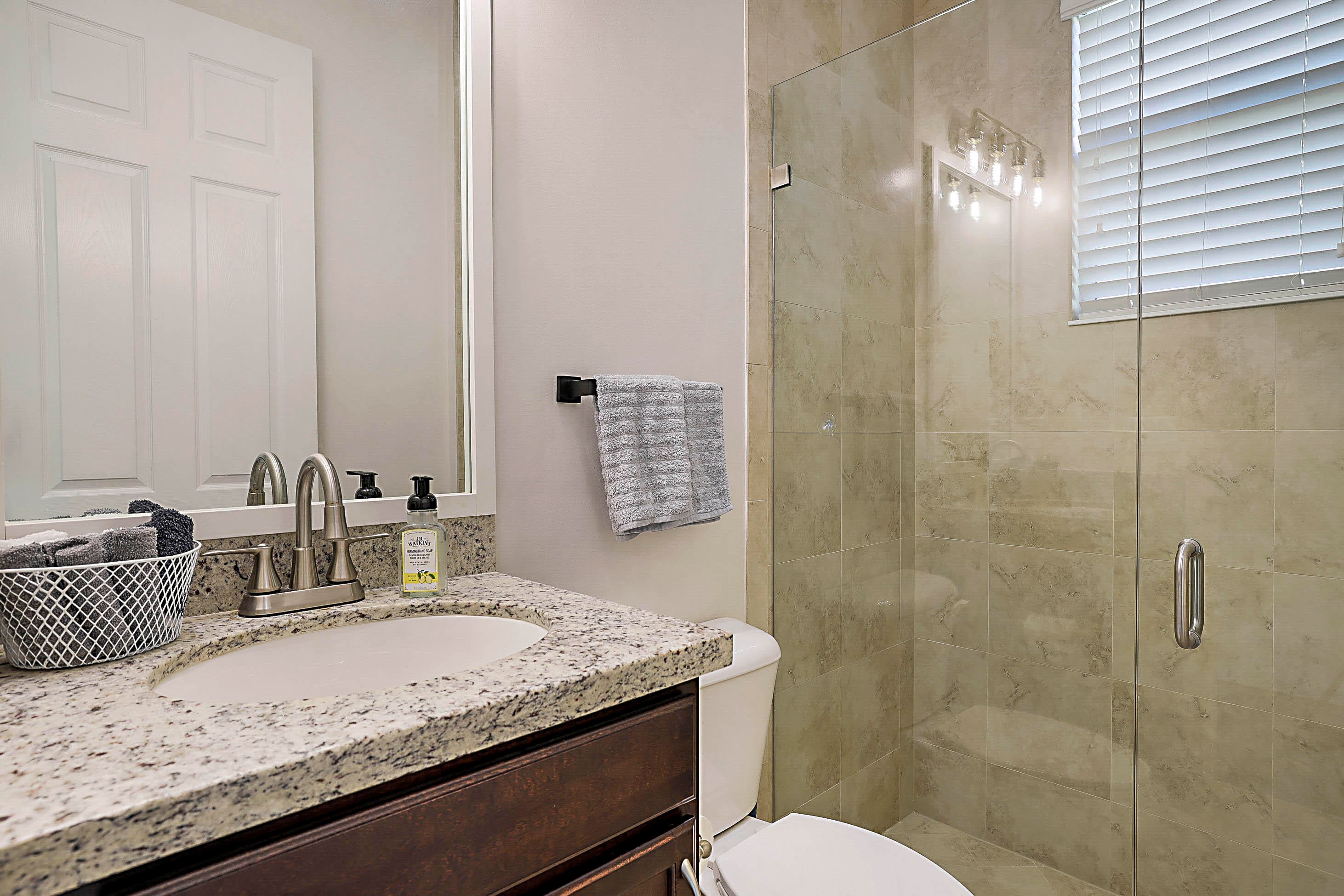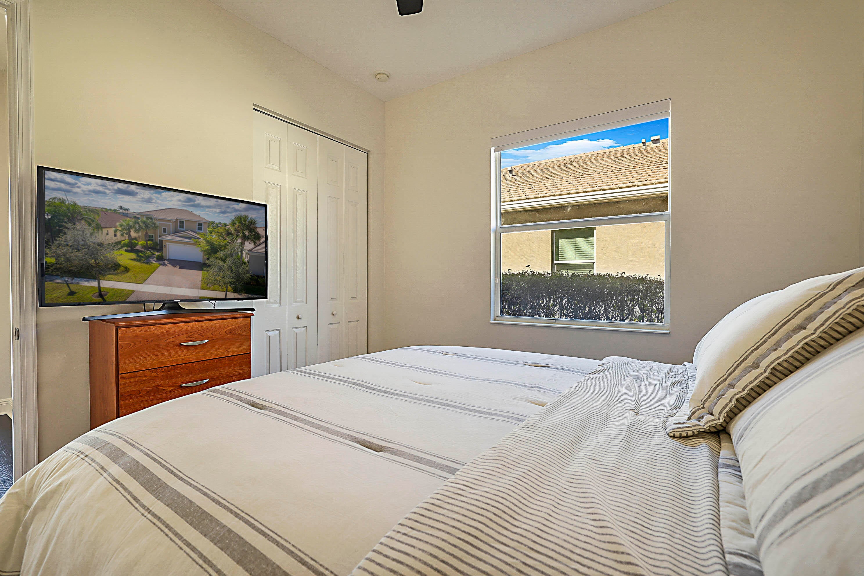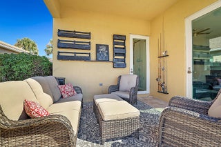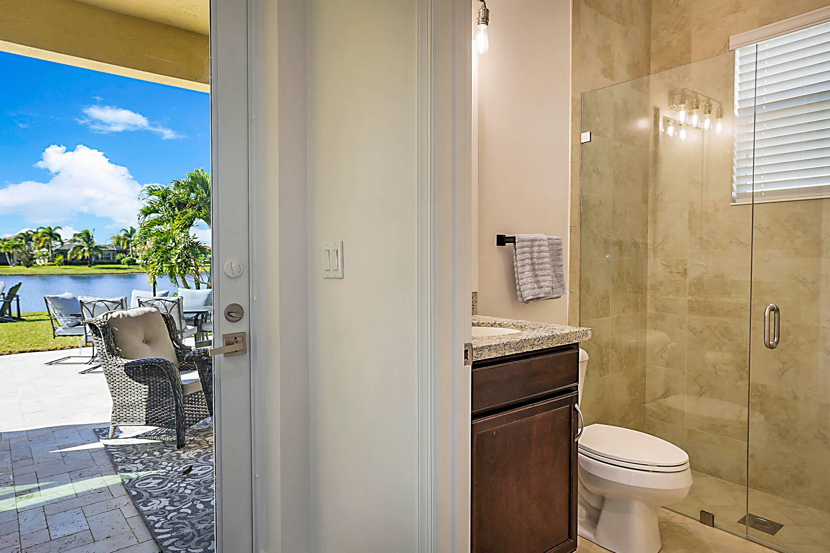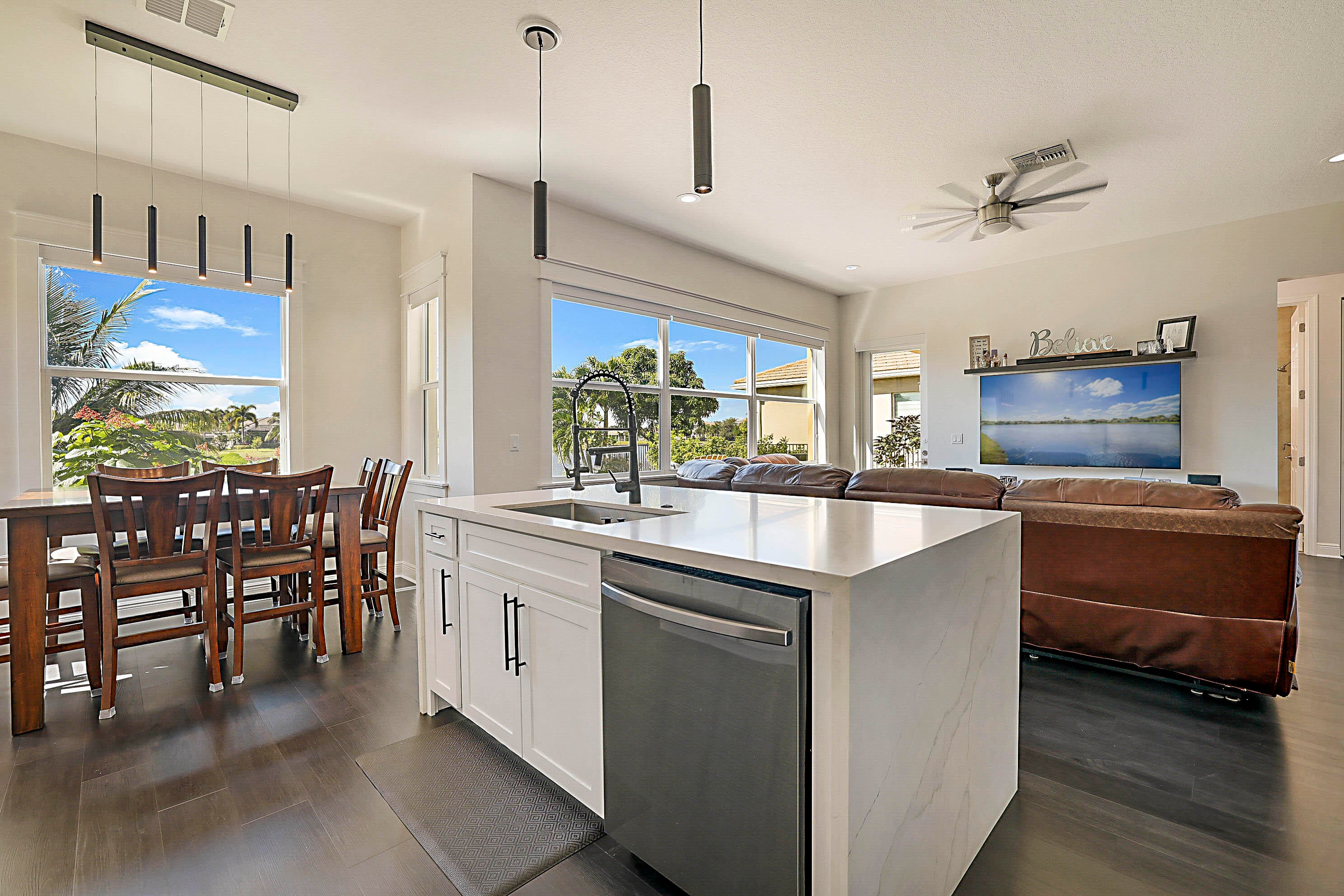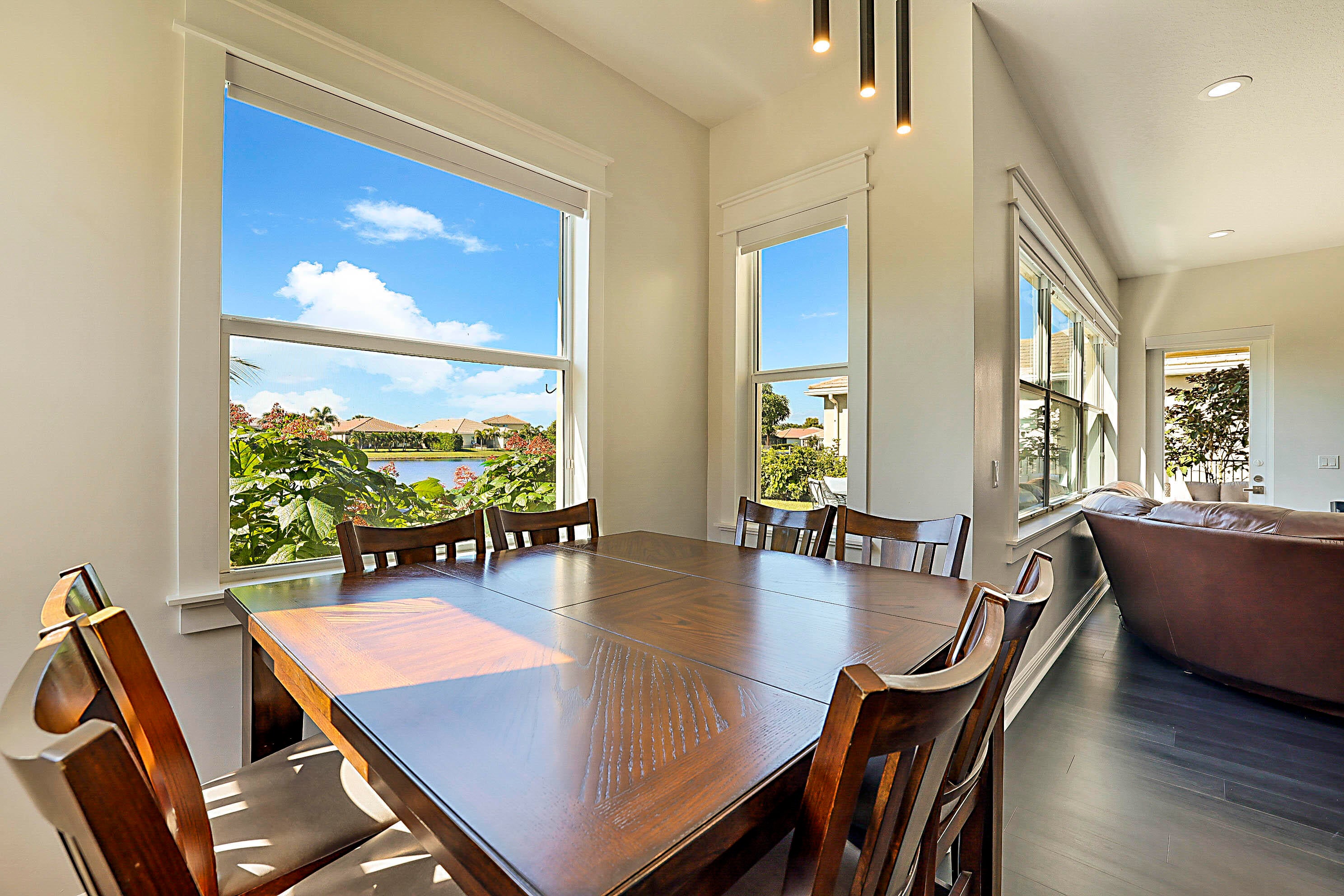 Enjoy stunning lakefront living in this impeccably updated and maintained home featuring upgraded floors, cabinets, quartz counter tops and backsplash, large kitchen island, stainless steel appliances, light fixtures, fans, impact windows and doors, remote control window blinds, travertine patio pavers and an abundance of natural light. Room for a pool and more in the large backyard. Enjoy fishing in the lake and nights around the fire pit. 3 bedrooms+ loft. One bedroom on main floor near cabana bath. Large closets and extra storage space. Close to schools, shopping, dining, entertainment, and recreation. Resort-style amenities include pickleball, pool, hot tub, tennis, clubhouse, gym, splash pad, sand volleyball, walking paths, basketball, and more. Low HOA Must see. Move-in ready.