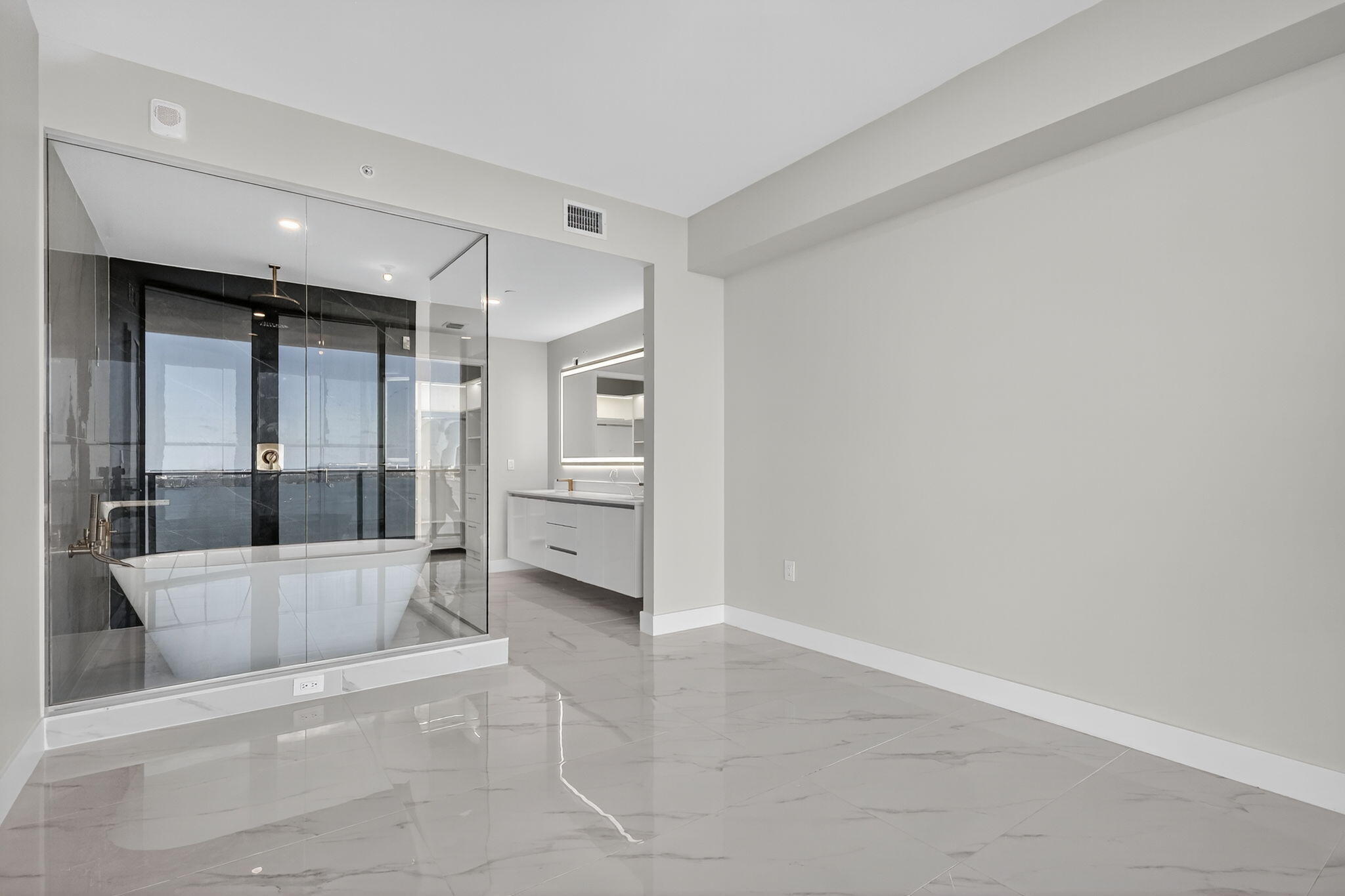 This one's on the 30th floor : higher, brighter, and with that full bay view everyone asks for. Offered furnished at $11,000 or unfurnished at $10,000. Same clean finishes, but with more light and privacy. Custom closets, drapes, shades, and lighting will be done. Two bedrooms plus office, three baths, one garage, one valet. Move-in ready in two weeks. Amenities are next level: pool, spa, gym, courts, kids' areas, and a private wine cellar. You're right between Midtown, Wynwood, and the beach. Visit today!!!