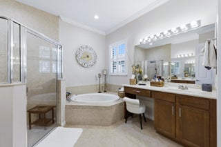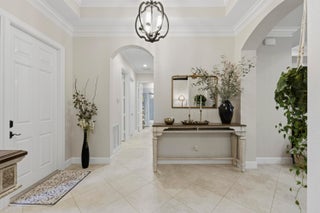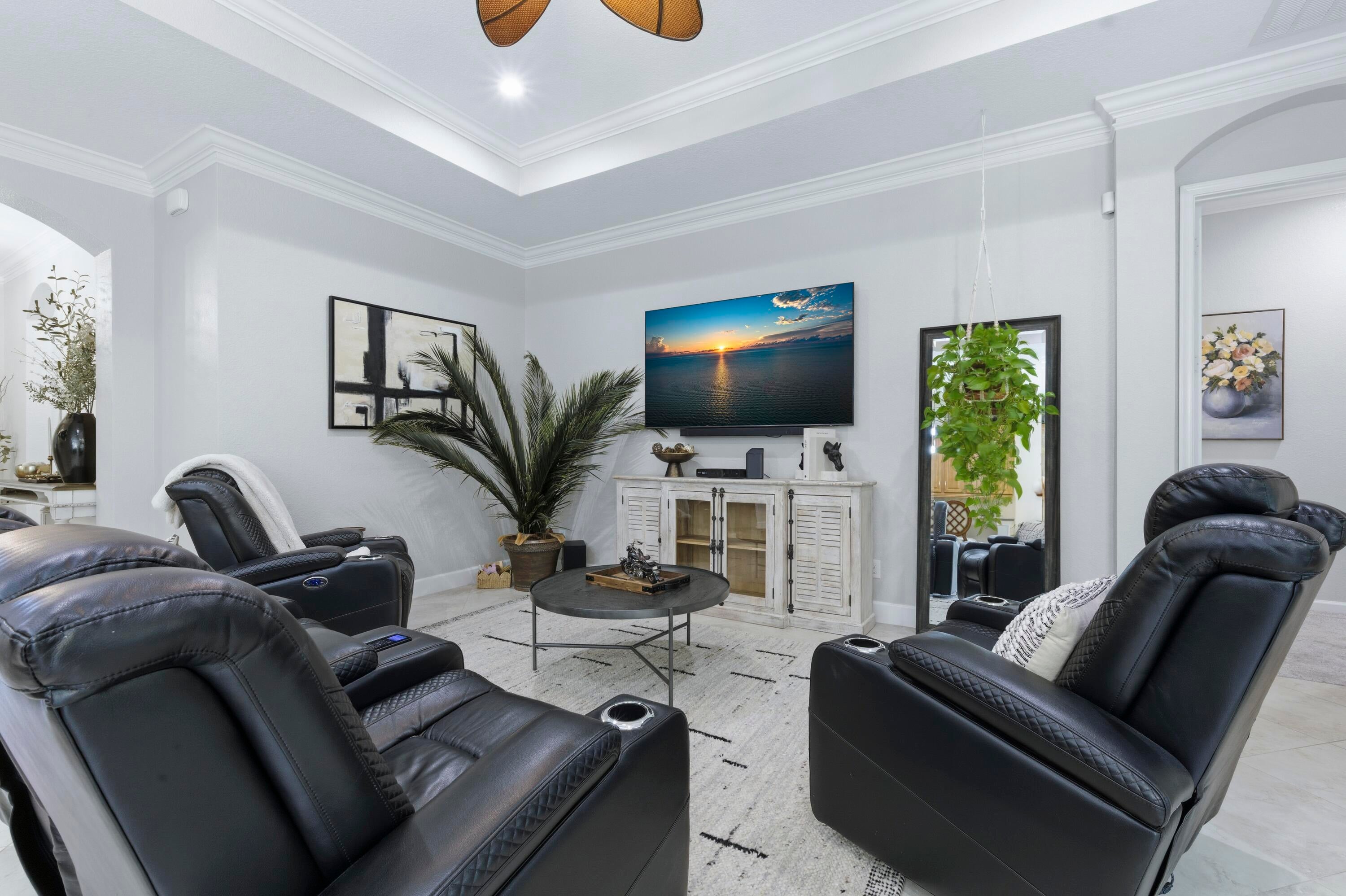 Welcome to Savannah Estates (aka Venetian Village), a gated community of just 50 homes. This well-maintained CBS 3BR/2.5BA pool home offers a 3-car air-conditioned garage with epoxy flooring and is ideally located on a cul-de-sac. Built in 2013, features include impact windows, crown molding, tiled common areas, and refreshed 2024 landscaping with remote irrigation. The driveway, patio, and pool deck are covered with brick-pavers. Enjoy a screened lanai overlooking the heated saltwater pool and spa with lighted waterfalls (2024) --perfect for entertaining or relaxing in style. A kitchen window was added for more natural light and a pool view. Convenient to I-95, schools, shops, medical services dining, parks, beaches, and golf. PBI is approx 45 minutes away. Up to three pets welcome.