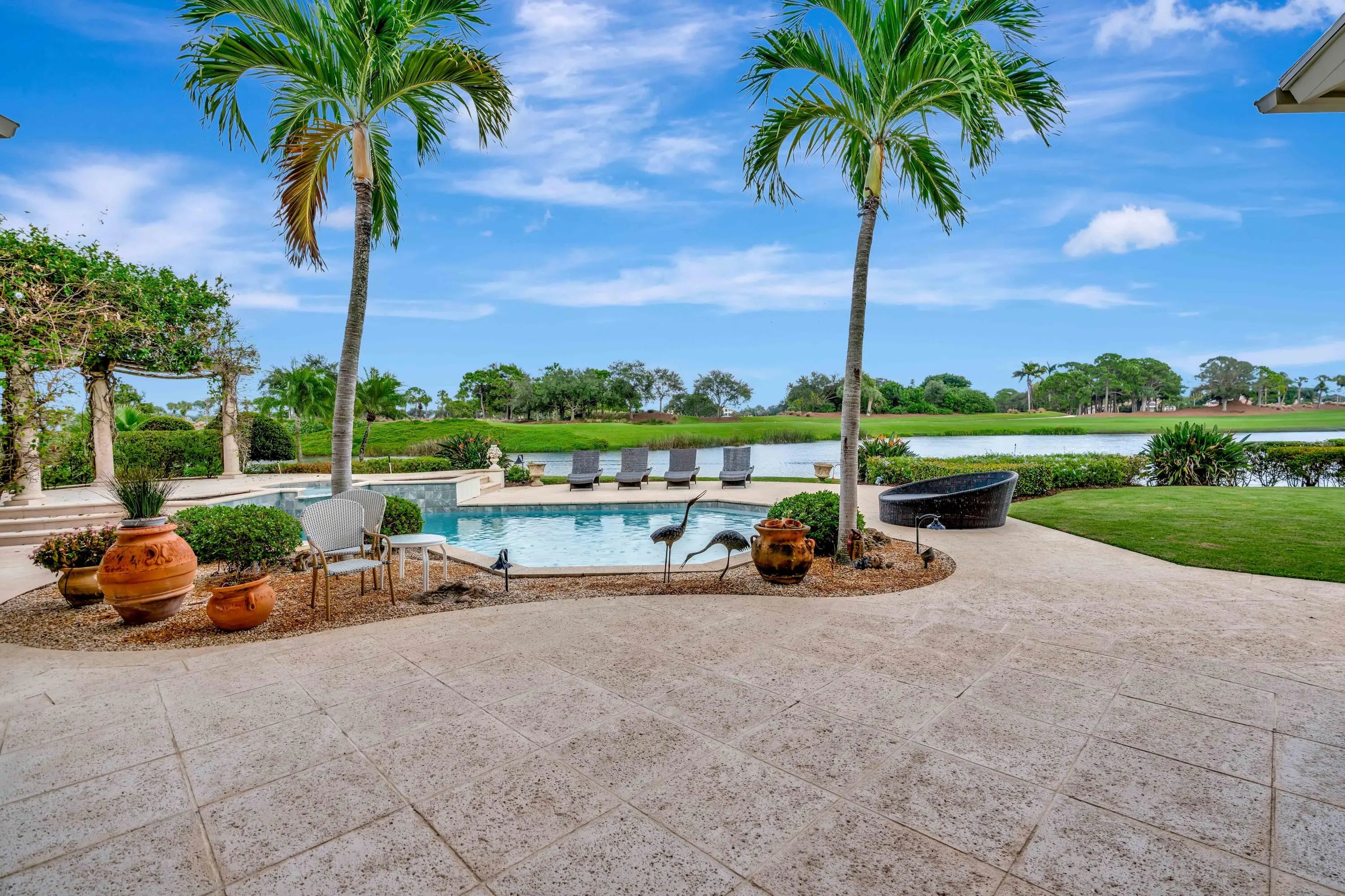 Welcome to one of the most coveted addresses in The Loxahatchee Club. Perfectly positioned at the end of a quiet cul-de-sac, this exceptional point lot offers some of the most spectacular golf and water views in the entire community. With sweeping vistas in every direction, this property represents a truly rare opportunity. The existing residence is move-in ready, offering comfortable living from day one -- yet it also serves as the perfect canvas for a major renovation or an extraordinary new build. Premier lots of this caliber are few and far between. Beyond the property, residents of The Loxahatchee Club enjoy world-class amenities including 18 holes of championship golf on a Jack Nicklaus Signature course with a renowned caddie program, a newly renovated clubhouse