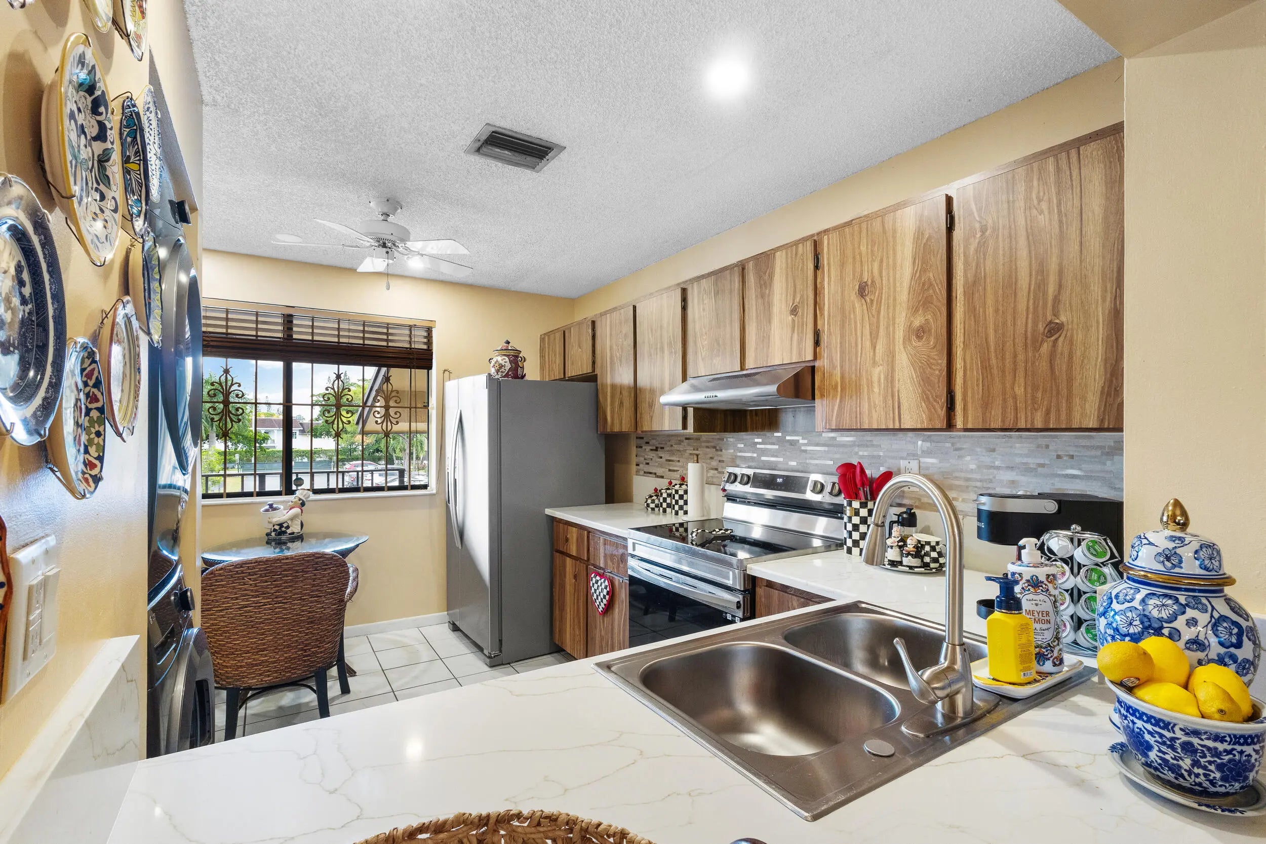 The perfect place to call home in East Deerfield Beach, just 1.5 miles from the ocean. This spacious 2 bed, 2 bath, second-floor corner unit in Windwood Isles offers an open layout with great natural light. The large eat-in kitchen features ample counter space, plenty of cabinets, stainless steel appliances, and a newer washer and dryer. Enjoy a private patio overlooking the tennis courts. Both bedrooms are generously sized with great closet space. Windwood Isles is an all-ages, pet-friendly community with assigned parking, guest parking, pool, and tennis courts--close to shops, dining, and the beach.