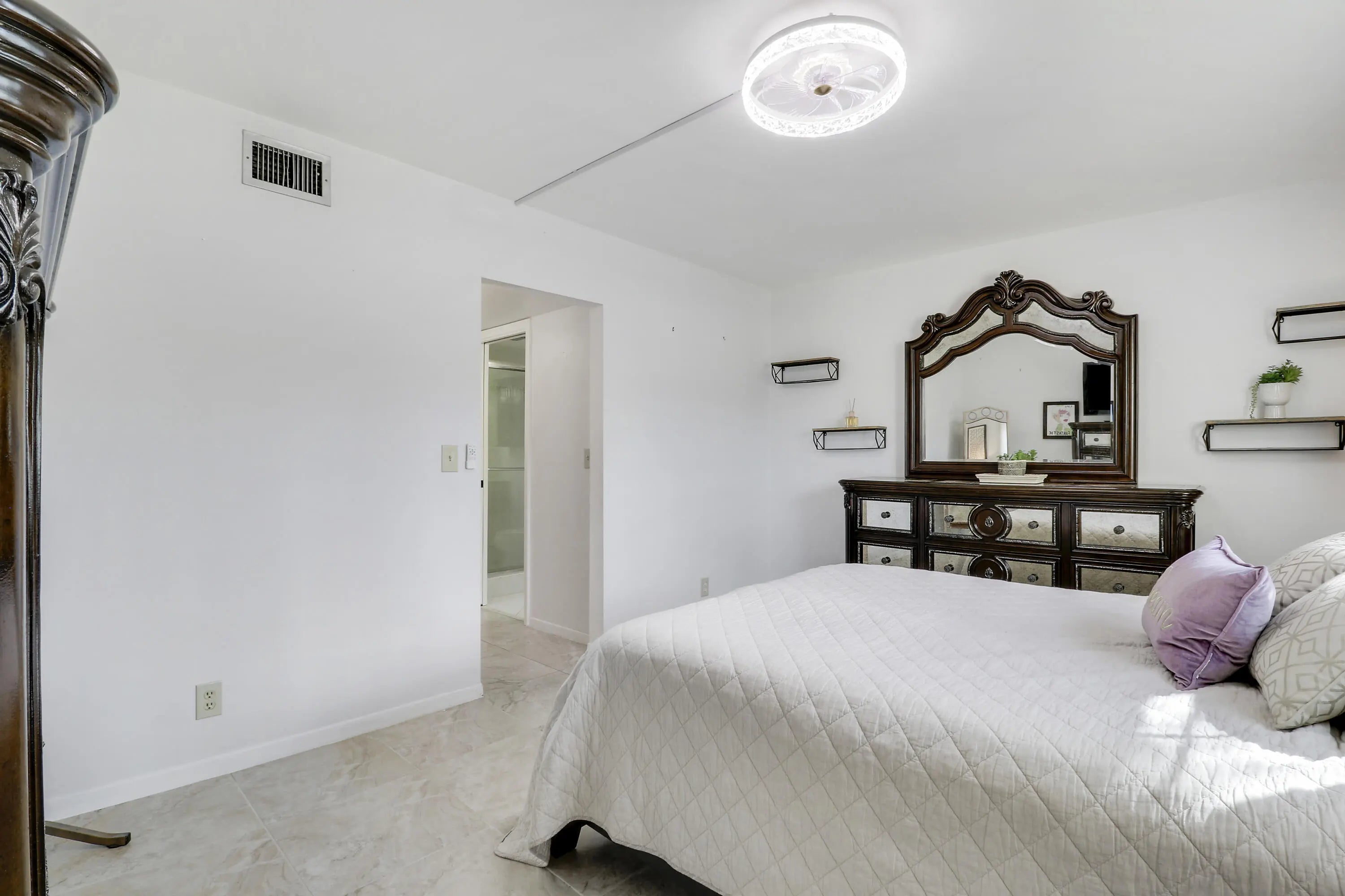 Step into this beautifully updated 2 bedroom, 2 bathroom corner unit, offering a bright and spacious layout filled with plenty of natural light. The modern kitchen features stainless steel appliances, ample cabinet space, and flows effortlessly into the open living and dining areas, perfect for everyday living and entertaining. Tile flooring extends through the kitchen, hallway, bedrooms and bathrooms, while the living and dining rooms feature warm laminate floors that add comfort and style. Both bedrooms are a generous size and include walk-in closets, while both bathrooms have been tastefully updated. Impact glass windows provide peace of mind and energy efficiency, and there's plenty of extra storage throughout, including a separate storage unit for added convenience.