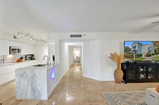 Only updated unit on the market with hurricane impact windows + doors! Completely renovated 1st-floor corner residence in a gated community with pool, tennis & pickleball. Can lease right away. No expense spared! Home has marble floors, stunning modern kitchen with sleek custom high-end cabinetry, quartzite waterfall countertops and stainless steel appliances. Bathrooms have gorgeous matching quartzite counters + dual sinks in the primary suite. Bonus space off the living room. Additional highlights include 2 covered patios, spacious bedrooms, walk-in custom closets, full-size in-unit laundry, and a newer AC. Can be rented immediately! The community was recently renovated with freshly painted exteriors and offers resort-style amenities: pool & spa, clubhouse, business center, gym, EV charEV charging, tennis & pickleball courts, indoor racquetball, billiards, BBQ area, tiki bar, playground, and more. A 24-hour manned gate ensures peace of mind in one of Boca Raton's most sought-after locations. Top-rated schools, walking distance to shops and dining, and just a short drive to the beach!