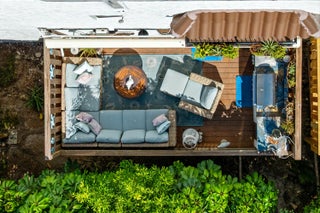 This coastal inspired beachside retreat townhome offers a one-of-a-kind living experience in the exclusive Jardin del Mar community. Renovated in 2008 by renowned Delray architect Randall Stofft, the unit has been thoughtfully redesigned to maximize space and comfort. The original two-story atrium was removed, allowing the square footage to flow seamlessly into an open first-floor plan, while the second floor now boasts spacious bedrooms and luxurious bathrooms. The townhome offers an exceptional level of privacy with two dedicated parking spaces located below in the secured gated garage, as well as a personal enclosed storage area.The home's unique design includes an open-concept living and dining area with a built-in bookcase and a Cyprus bead-board tongue-and-grooveceiling. French doors lead out to the landscaped outdoor living space, which is equipped with a custom kitchen, a remote-controlled electric awning, speakers, and updated decking and railing. Whether you're grilling with the Delta heat grill or relaxing on the balcony, the space is perfect for enjoying the coastal lifestyle. The chef's kitchen is a dream for entertainers, featuring custom glass tile backsplash, Brazilian Rain Forest granite countertops, a large two-level island with ample storage, and GE Monogram premium appliances. For added convenience, there's also a storage closet for beach accessories just off the kitchen. Upstairs the primary bedroom is a retreat, complete with a custom built-in walk-in closet with drawers. The en-suite bathrooms are equally luxurious, with marble showers, premium Kohler and Grohe fixtures, custom glass backsplashes, and St. James by Brentwood cabinetry. The loft is currently staged as a stylish dual-use office/guest space, offering great flexibility. It functions perfectly as a home office, guest room with a sleeper sofa, or even a workout area. This versatile space also includes additional storage, cabinetry, and a built-in bookcase. A new Samsung washer and dryer are conveniently located in the closet off this dual-use space. Every detail has been taken into consideration, from custom plantation shutters and PGT hurricane-proof windows to solid internal doors, crown molding, and a guest-safe discreetly built into the home. The unit is also wired for music with Boston Acoustic speakers. The ocean front community of Jardin del Mar offers 38 exclusive units and is undergoing continuous improvements, including a freshly painted exterior and new roofs on all buildings. With a variety of amenities such as a community room, sundeck, pool, and underground parking garage, this boutique community provides a unique beachside living experience. Located just two blocks from vibrant Atlantic Avenue, this home offers unparalleled access to Delray Beach's finest dining, boutique shopping, and lively entertainment. Whether you're looking for a gourmet meal, a trendy café, or an afternoon of boutique shopping, everything is within walking distance. For those who love the beach, the ocean is just steps away, allowing for effortless beach days or sunset strolls. This home offers everything one could want in a beach retreat, blending timeless design, modern comforts, and a prime location for an unparalleled lifestyle.