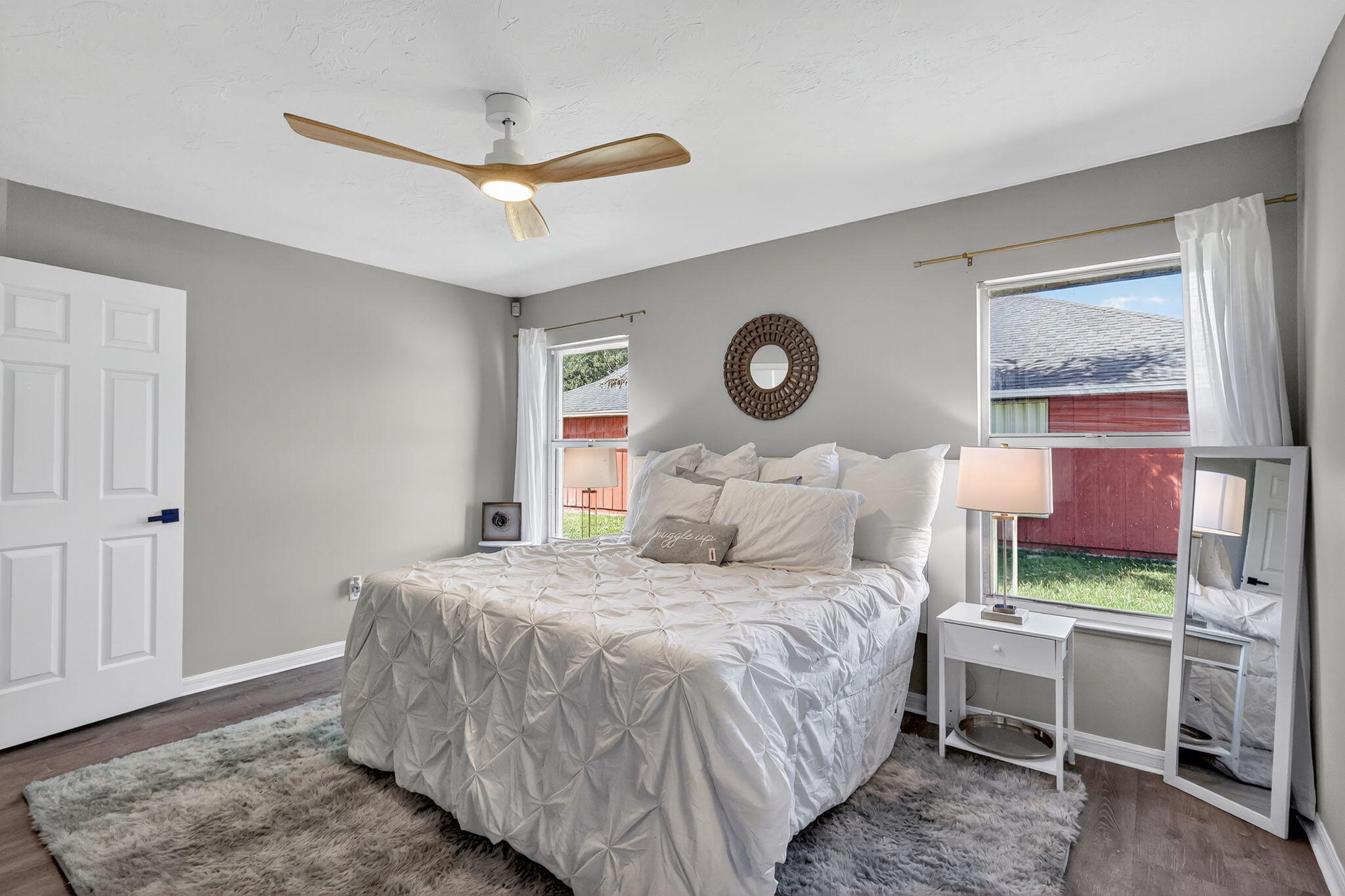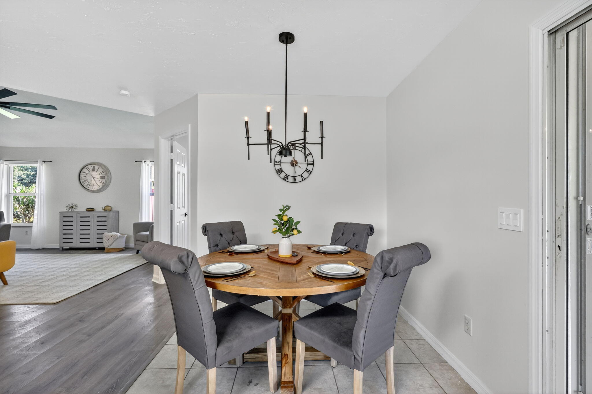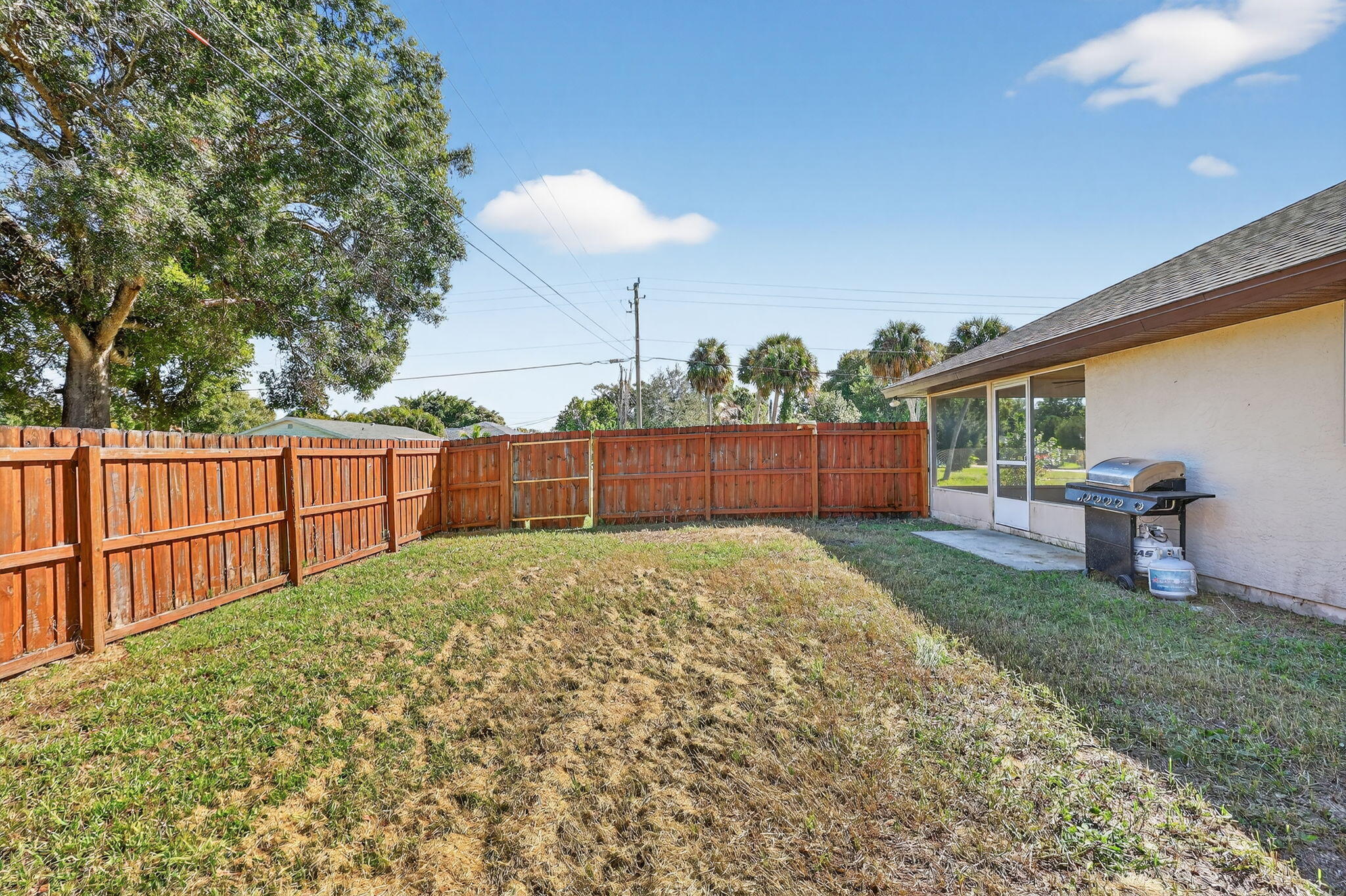 Priced to sell!! Come see this spacious, open floorplan 3-bedroom, 2 bath home in lovely Vero Beach. This beauty offers a large living room, dining room, huge cathedral ceilings and screened patio with views of your oversized fully fenced corner lot! Roof from 2018 and full accordion shutters put safety first. Your chef's kitchen w/ duel colored cabinetry, stainless appliances, massive bar with room for 5+ stools and loads of counter space makes cooking a dream! Kid and pet friendly with newer vinyl flooring, separate laundry room and bathroom updates make this home stand above the rest. Investor-friendly with no HOA, room for boat or RV parking, so bring the toys. Priced aggressively so hurry! Buyer may qualify for Hometown Hero Grant of up to 5% with approved lender, inquire within