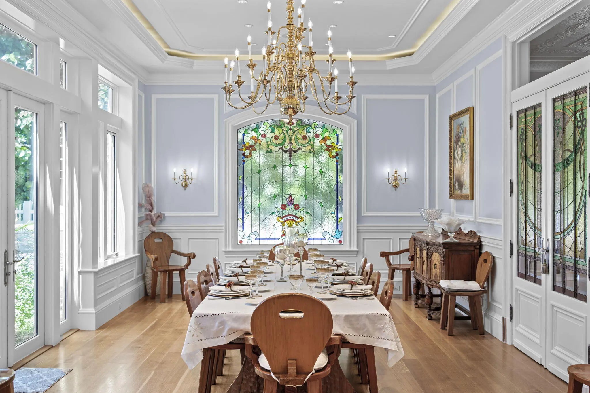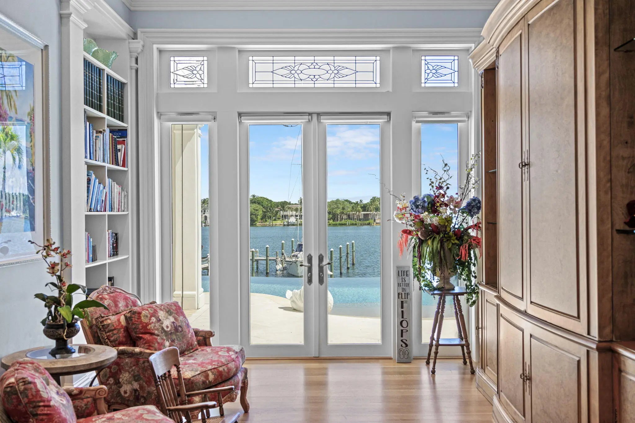LUXURY PROPERTY AUCTION: 6-20 March.Accepting starting bids through 5 March.Starting bids expected between $10M-$15M.Earn an incentive by 5 March.Anglesea Estate represents an architectural masterpiece on 200 feet of elevated Intracoastal Waterway frontage, where expansive floor-to-ceiling windows frame sweeping water views from nearly every room. Inside, timeless European architecture meets modern coastal luxury through impeccable craftsmanship--custom millwork, hand-carved Carrara marble fireplace, Murano chandeliers, and exquisite reclaimed stained-glass transoms. The chef's kitchen features dual walk-in pantries and premium appliances, while the primary suite includes a fireplace, dual spa-like en-suites, and massive custom-built walk-in closets. Each bedroom suite enjoys broad