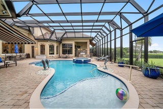 Absolutely Amazing 4BR/4BA Estate on Premium 1/2 Acre Waterfront lot. Over $426K+ in Modern/Luxurious updates! Interior includes Satin Finished Saturnia Marble, hardwood and slate flooring, Top of the Line Appliances, gas cooktop, custom cabinetry, bar, wine cellar, surround sound, custom closets, central vacuum and plantation shutters. Custom wall unit accommodates a 75-inch TV. Custom Closet systems. Exterior features stone facade, circular drive, screened patio with French Pattern pavers, pool, spa and incredible summer kitchen. Builder-modified floor plan with upstairs guest suite and loft. Potential 4th BR. All updated bathrooms. Full Impact Windows, Whole House Generator, 2025 Roof and so much more! This is an absolute ''Must See!'' Schedule your tour today!Equus has a 7,000 Clubhouse with Athletic Center, 2 Har-Tru Tennis Courts, Pickleball, (coming soon) Tot Lot, Billiard Room, Party Room, Swimming Pool, Hot Tub, Fire Pit & BBQ Grill.