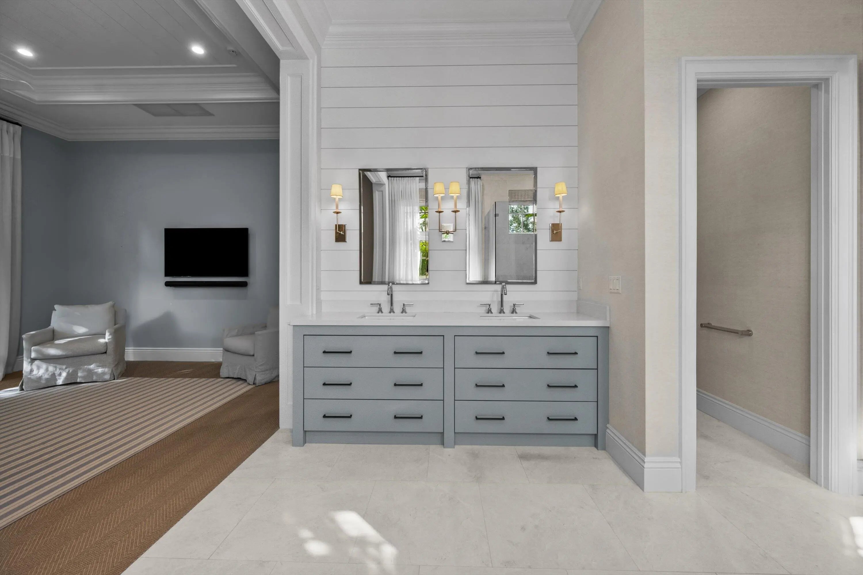 Discover timeless elegance and coastal charm in this exquisite 4 Bedroom/ 4.5 Bathroom residence, ready for immediate move-in within the prestigious Loxahatchee Club. Thoughtfully designed with superior craftsmanship, this home showcases custom woodwork, soaring ceilings, and floor-to-ceiling doors and windows that bathe the interiors in natural light.The spacious primary suite offers a serene retreat, featuring an oversized spa-like bath and custom finishes that create an atmosphere of refined relaxation. A private guest suite opens to a charming courtyard complete with a sparkling pool and outdoor kitchen, ideal for entertaining or enjoying peaceful moments under the Florida sun.Designed for both comfort and sophistication, the home's open floor plan
