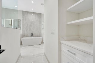 GRAND NEW! This beautiful estate has it all. Features an amazing entry with double impact front doors. Chef's kitchen with stainless appliances, gas grill top w/ designer hood vent, double wall ovens, large island with built-in microwave and lots of draws and cabinets. huge refrigerator freezer, Wine cooler with a bar area, Lg living room with backyard view, formal dining room. Master suite fit for a king and queen. Double counters and sinks, free setting tub with Lg separate shower, two full laundry rooms one on each floor, beautiful staircase leading to the upstairs with a huge family room overlooking the balcony with view of the gorgeous salt pool with spa and spacious backyard just waiting for your entertaining. Home has gas appliances and impact windows and doors. A TRUE MUST SEE!!