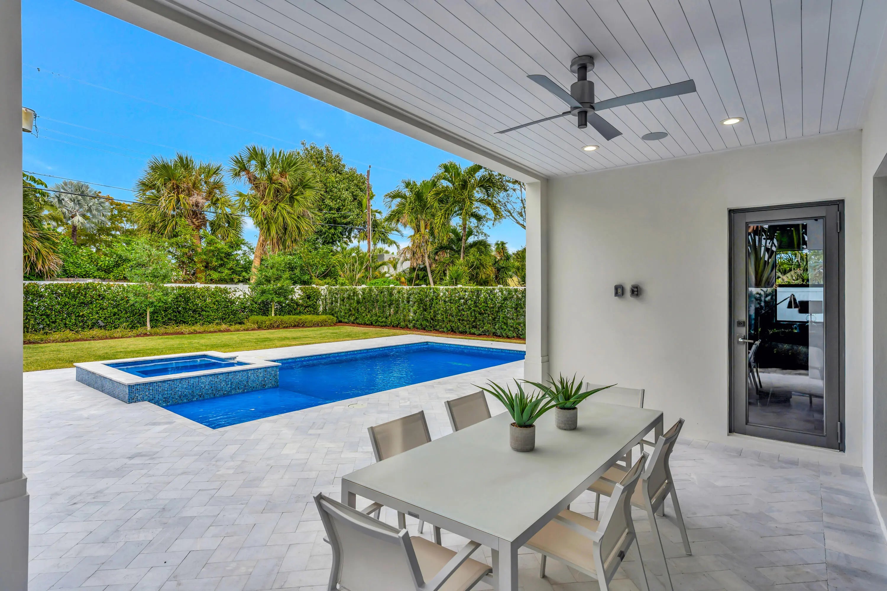 Auto Sprinkler, Covered Patio, Custom Lighting, Fence, Open Balcony, Outdoor Shower