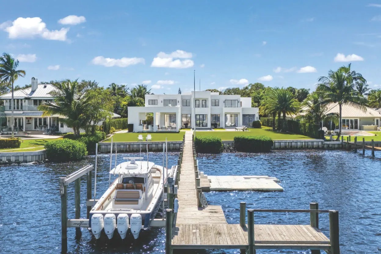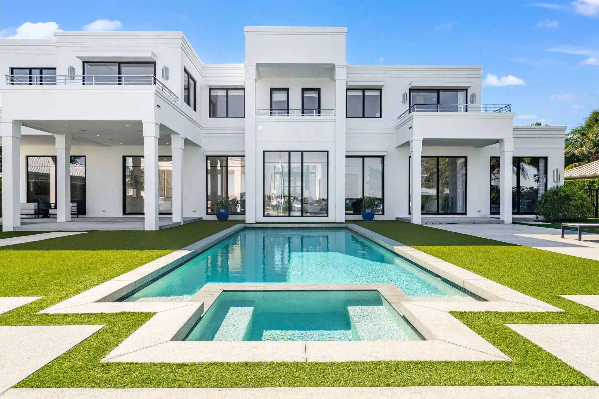 Experience the art of luxury living in this spectacular modern estate on the scenic Loxahatchee River in Jupiter, Florida. Tucked away on a private street, this custom-built masterpiece blends architectural sophistication, advanced technology, and the serene beauty of South Florida waterfront living.Beyond the stately gates, the resort-style setting offers 127' of waterfrontage, a covered outdoor kitchen with large island and seating area and a 20' x 40' pool with spa. The meticulously landscaped grounds feature artificial turf lawns ensuring a pristine look year-round. The private dock, with boat lift and floating dock for smaller boats, provides direct boating access to the Intracoastal Waterway and the Atlantic Oceana''perfect for those who treasure the coastal lifestyle.
