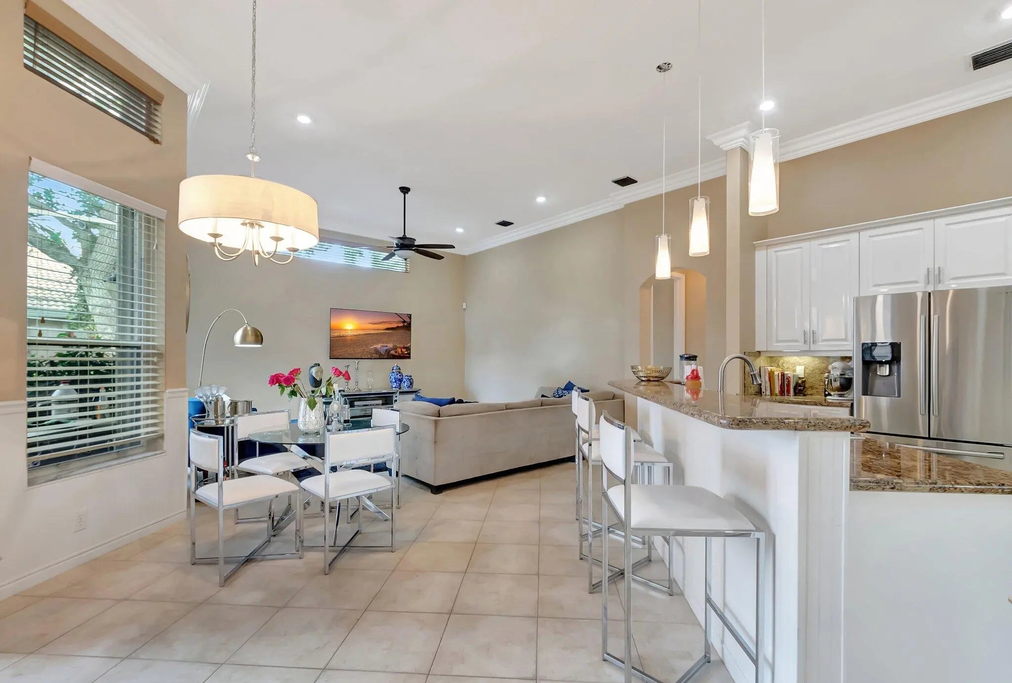 MOTIVATED SELLER: *NEW ROOF INSTALLED April 2025* This beautiful well-maintained home has 3 bedrooms and a large office. The home features hurricane impact glass, and crown molding throughout. The eat-in kitchen has granite counters, stainless steel appliances, under cabinet lighting, double built in pantries and a butler's pantry. The kitchen and family room are tiled floors with engineered wood floors in the bedrooms. The primary bedroom has his and hers walk-in closets that are fitted with organizers. This home has all the great features for entertaining friends and family, including a large screened in patio surrounded by lush landscape and lake views. NO MANADATORY GOLF MEMBERSHIPS REQUIRED. Lender Incentive of $3000, towards buyer's closing costs for buyers using preferred lender.