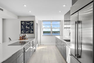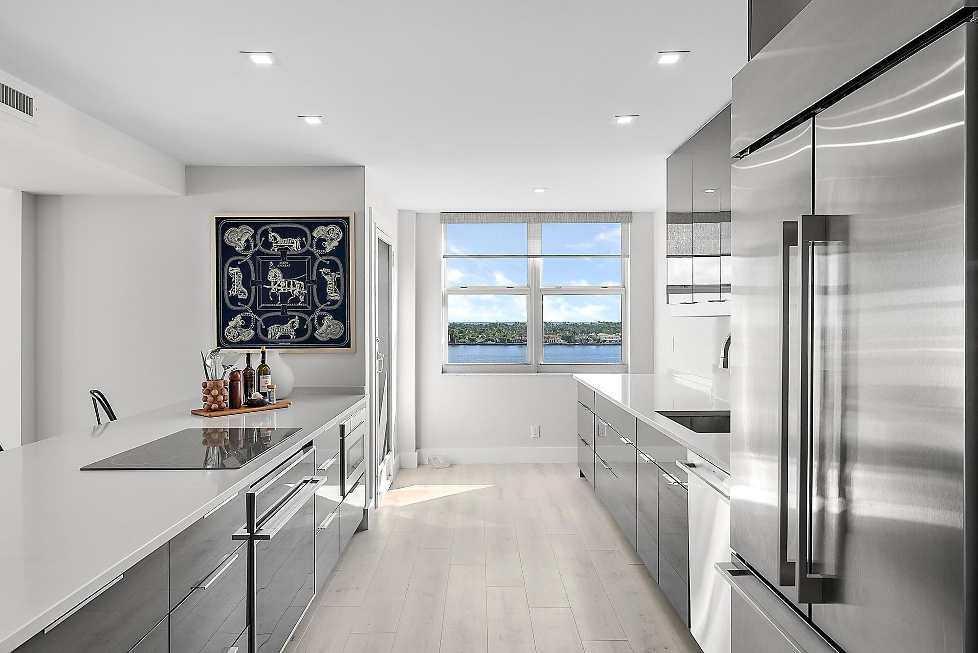 Indulge in panoramic intracoastal views from this rarely available, elegantly redesigned condo near downtown West Palm Beach. This 3-bedroom, 2-bath residence showcases a sophisticated open layout, a chef's kitchen with custom island, designer finishes, and exquisite flooring throughout. Floor-to-ceiling impact windows invite endless natural light and breathtaking vistas. The primary suite features a a generous walk-in closet and a contemporary en-suite bathroom with an oversized walk-in shower. Perfect as a primary home or seasonal retreat, this residence offers effortless access to upscale dining, shopping, and the vibrant Palm Beach lifestyle.