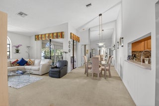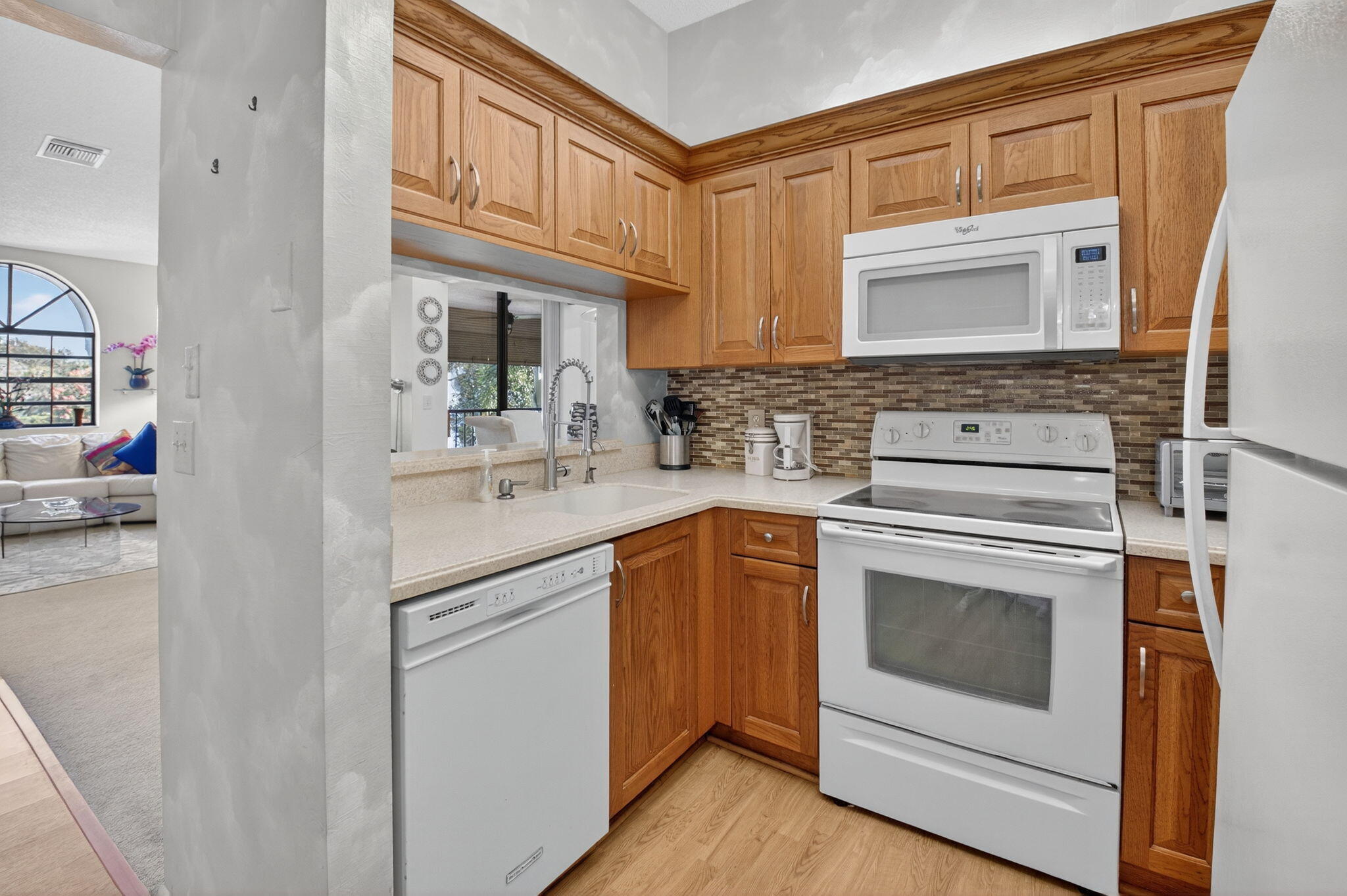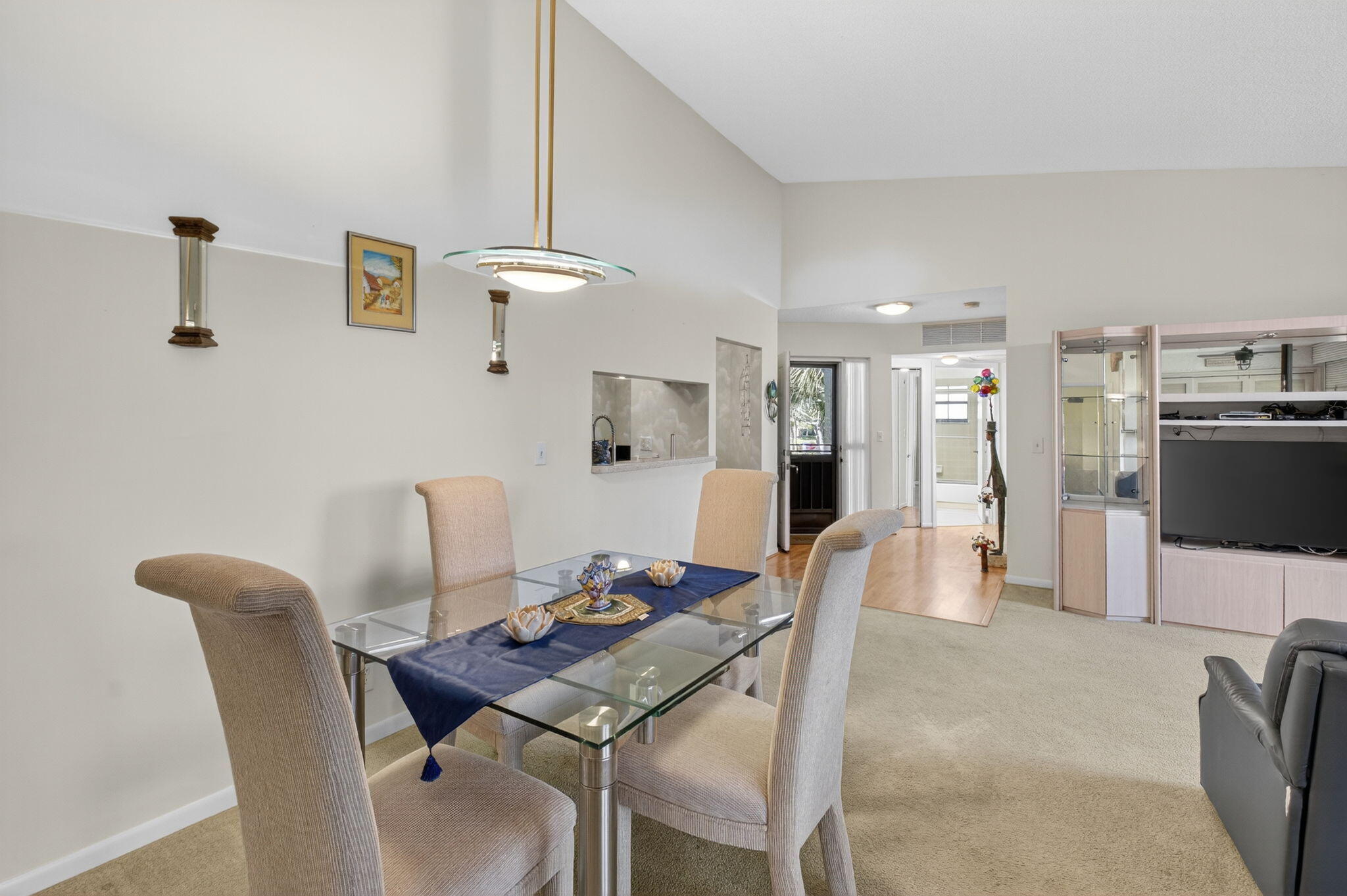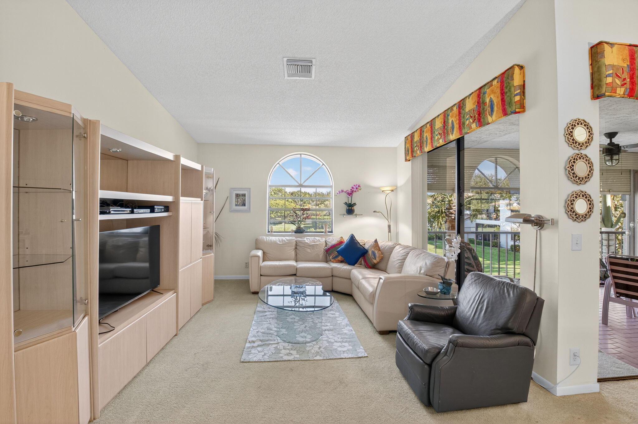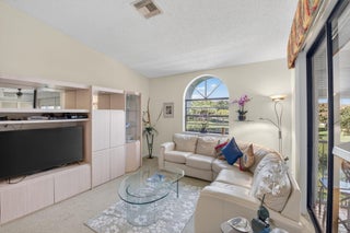 Welcome to this inviting and beautifully maintained second-floor condo, ideally situated between two tranquil lakes. This spacious 3 bedroom, 2 bathroom home offers comfort, style, and convenience in the very popular Platina community. Perfect for full-time living or wonderful vacations in the Florida sunshine, the kitchen boasts a cozy breakfast area and a convenient pass-through to the formal dining area, perfect for entertaining guests. Enjoy a modern quartz vanity in the main bathroom, providing both elegance and durability. Split floor plan for privacy and comfort, featuring vaulted ceilings that add to the open and airy feel. New hot water heater installed for peace of mind and efficiency. Relax on the screen-enclosed balcony, offering beautiful views and a comfortable space.This condo is being sold fully furnished and equipped. All contents are included, making it move-in ready. (Please note: the clock on the wall in the kitchen is excluded from the sale.) Whether you're seeking a permanent residence or a vacation getaway, this home offers everything you need to experience the best of Florida living. Platina offers care-free, resort-style living at its very best! AT&T FIBER OPTIC HIGH SPEED INTERNET is INCLUDED IN THE CONDO FEES along with DIRECT TV, PEST CONTROL, ROOF MAINTENANCE and WATER. All you pay for is electricity! The active 20,000 square foot clubhouse is stunning! Cafe open for breakfast and lunch now offering take-out meals, card rooms, fitness center with stationary bicycles in a solarium overlooking the pool area. Relax in one of the satellite pools or at the enormous free-form main pool and spacious sundeck. Tennis, handball and pickleball courts. There is also an art room with a kiln! With shows, bingo, and an array of clubs, you will not be bored! 24-hour guard gated community. Convenient access to I-95 and the Florida Turnpike. Close to shopping and wonderful restaurants. DON'T FORGET TO VISIT THE CLUBHOUSE.