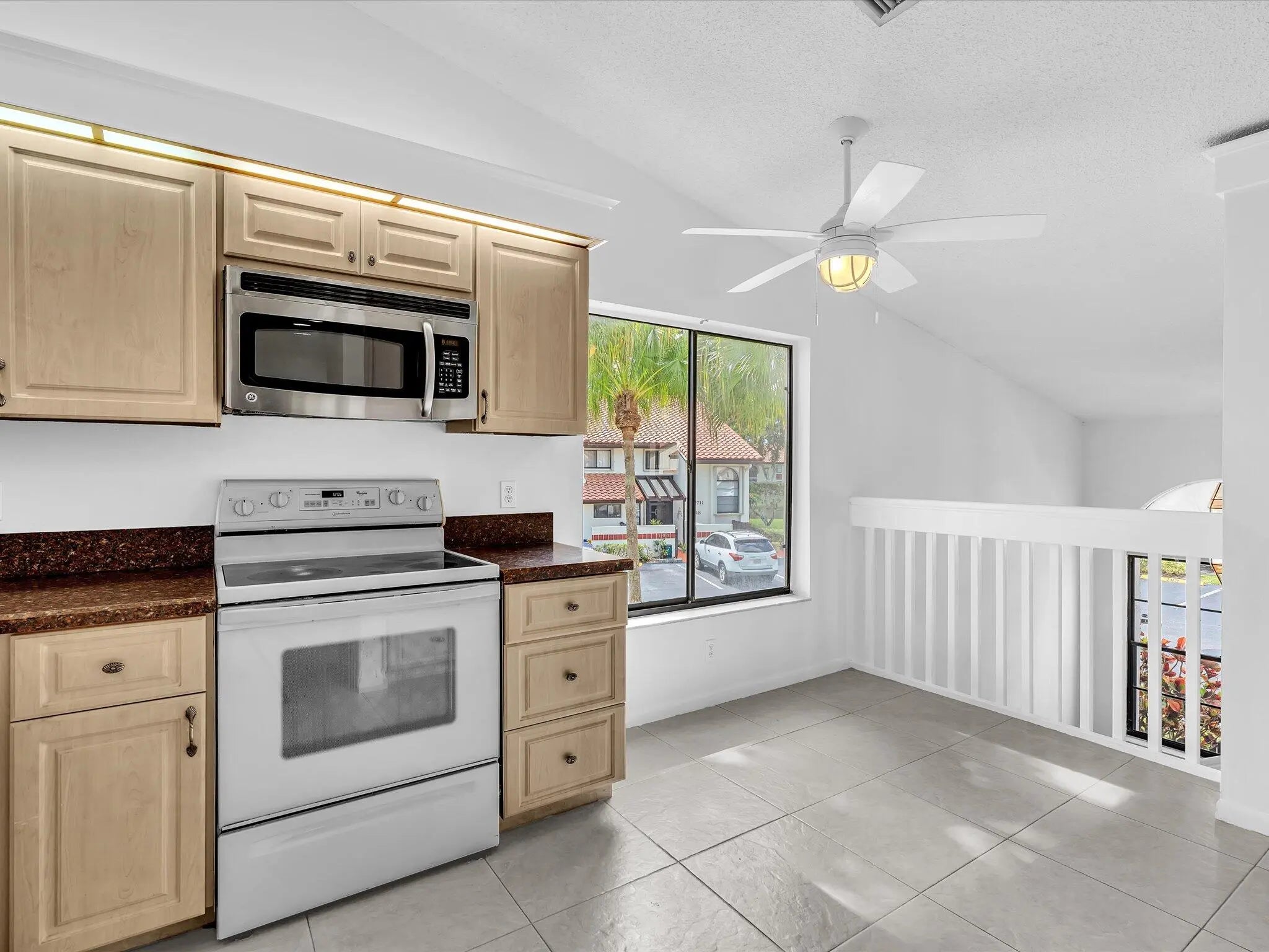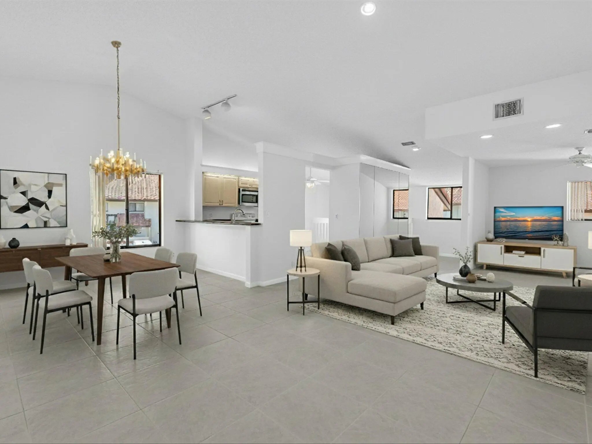 Centrally located in a gated and picturesque 55+ community, this bright and airy home features two bedrooms plus a den that can serve as a third bedroom along with 2 full baths. Vaulted ceilings and abundant natural light enhance the open design, while the air conditioned balcony offer comfortable year round enjoyment. Residents enjoy outstanding amenities such as a temperature controlled resort style pool, clubhouse, tennis, pickleball, bocce, billiards, fitness center and card rooms. A full calendar of activities and events ensures an active and vibrant lifestyle. This unit includes a full size washer and dryer, and there is an appliance contract in place that is transferable. The community amenities have recently been enhanced with a refurbished pool and pool deck.