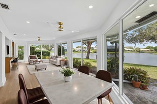 Welcome to a beautifully remodeled single-family home in the Slash Pine Villas section of Delray Dunes. Wait until you see the incredible views of the lake surrounding the back of the home. With North Northwestern exposure, the water and large shade trees guarantee amazing sunsets. From the moment you enter the new front door you will be delighted by the modern farmhouse finishes throughout. The new impact windows give generous light throughout the home and the new flooring, trim, doors and recessed lighting are designer perfect for the floor plan. The gourmet kitchen is a chef's dream, outfitted with new stainless steel appliances, beautiful custom euro wood cabinets topped with custom quartzite counters and Italian tile backsplash, plus a hidden microwave and pot filler faucet overthe range. The master bedroom has a beautiful ensuite spa inspired bathroom with his and her vanities and custom tile work in the spacious shower. There are 2 more nice sized bedrooms and another custom bath. A few other special touches include a custom bar, a large laundry room with a sink and storage, ample storage throughout, new wrap around paver patio has a designated area for an outdoor kitchen with easy access to the inside kitchen. The patio off the bedroom/ office has plenty of room to add any number of amenities like a hot tub or fire pit, a 1 car carport with storage, and a new Rheem AC and a new Tile Roof! Located right across from the pool and extra parking, this home is a must see to appreciate how nice it is. Delray Dunes is a private mandatory membership community offering an exceptional Florida lifestyle- The club features a newly renovated 18 hole Pete Dye course, a beautiful old Florida style clubhouse with a great restaurant/bar plus a new outside covered tiki bar by the pool and beautiful outdoor dining areas overlooking the 18th green. There is an onsite tennis and fitness center, and a fantastic pro shop to round out this top-notch community.