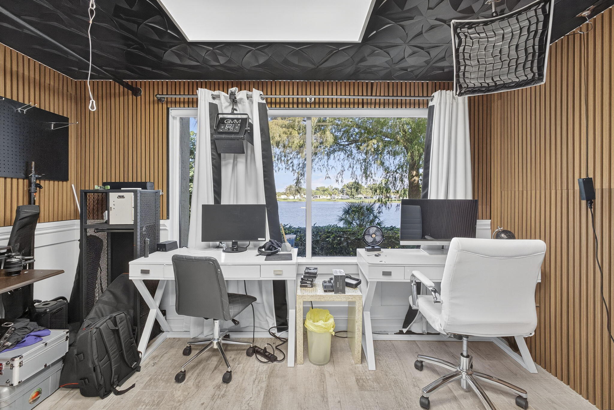 Fully Renovated Office Space in Prime Location in Royal Palm Beach. Experience a beautifully renovated 1,400 sq. ft. office suite located in the Professional Office Building on the east side of the Royal Inn Plaza. This turnkey space features four private offices, a spacious conference room, a modern kitchenette, a large, welcoming reception area, and a dedicated podcast studio -- perfect for content creation, media, or client engagement. Enjoy two fully renovated bathrooms and serene lake views that create an inspiring work environment. The building offers excellent visibility and convenience just steps away from popular restaurants and local amenities. this professional office suite combines comfort, style, and functionality -- all in one prime location.