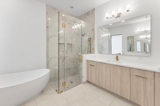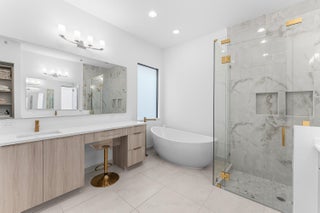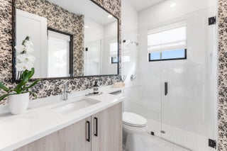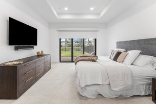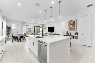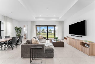 Welcome to this stunning lakefront modern home in the exclusive guard-gated community of Lotus Palm, Boca Raton. This expertly crafted residence features 5 bedrooms, 5.1 baths, and a 2-car garage. As you enter, a grand foyer leads you to the expanded great room. The oversized kitchen is a highlight, boasting beautifully upgraded stacked cabinetry and premium stainless steel appliances, including a gas cooktop. At the heart of the kitchen is a large island with quartz countertops, perfect for entertaining guests.