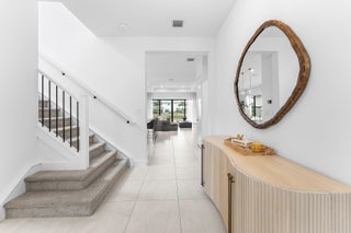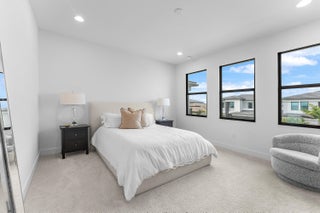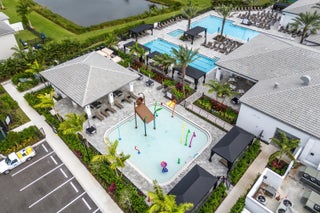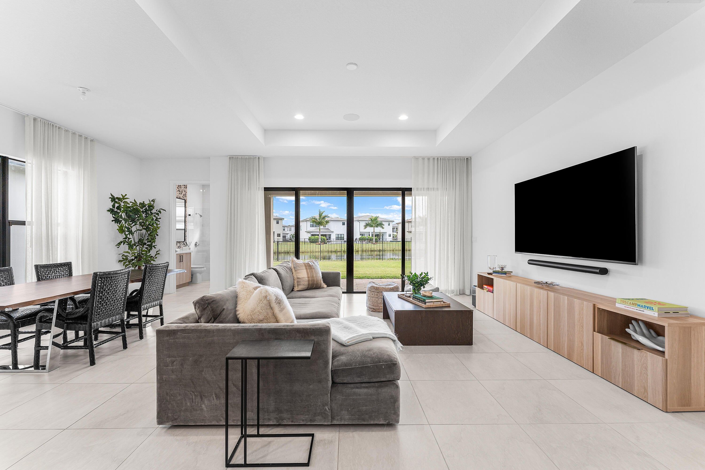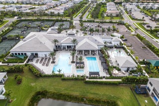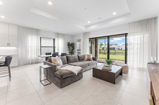 On the main level, you'll also find a convenient laundry room and the master suite, which includes a tray ceiling, custom walk-in closets, and an ensuite bathroom with dual sinks, a large walk-in shower, and a luxurious tub.The main level is completed with an office/optional 5th bedroom, powder room and cabana bath. Upstairs, a large loft entertaining area awaits, along with 3 spacious guest bedrooms and 3 full bathrooms. The covered lanai, accessible via the great room, is ideal for al fresco dining, offering southern exposure and serene lake views. The fully fenced backyard provides plenty of room to build a pool. Lotus Palm offers exceptional amenities, including a bar and restaurant, a large gym, a children's play area, and a resort-style pool. Experience the country club lifestyle without the fees, all in a modern haven near top schools in Boca Raton!