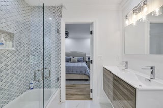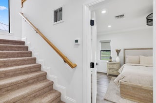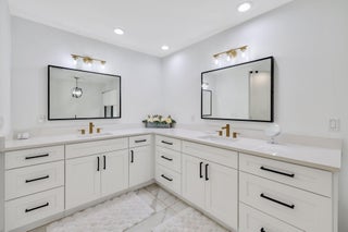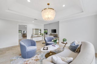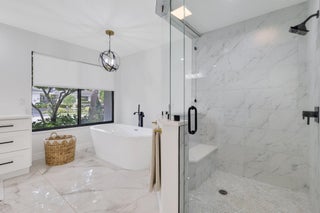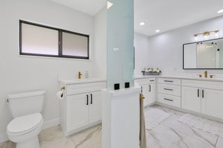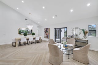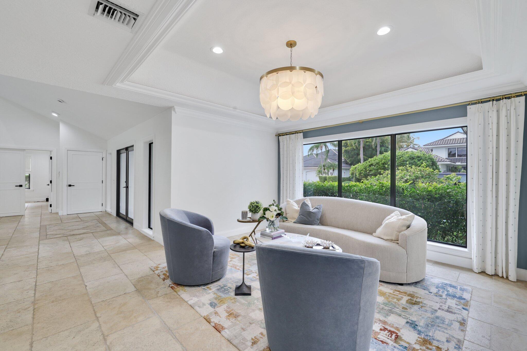 Completely renovated 4-BR home w/ lake and golf views in Boca Grove. Designed with modern elegance and comfort in mind, this residence features an open floor plan, ideal for both everyday living and entertaining. The Chef's Kitchen is the heart of the home, showcasing quartz countertops, custom cabinetry and a 48-inch gas cooktop with six burners. The kitchen seamlessly opens to both the living and family rooms, creating a bright, inviting space. The luxurious primary suite offers his/her closets, a lavish bath with dual vanities and a separate soaking tub. Three guest bedrooms with walk-in closets complete the main level. The upstairs loft offers a great flex space. The backyard retreat provides the perfect spot to relax and unwind. A newer roof and impact glass adds peace of mind.