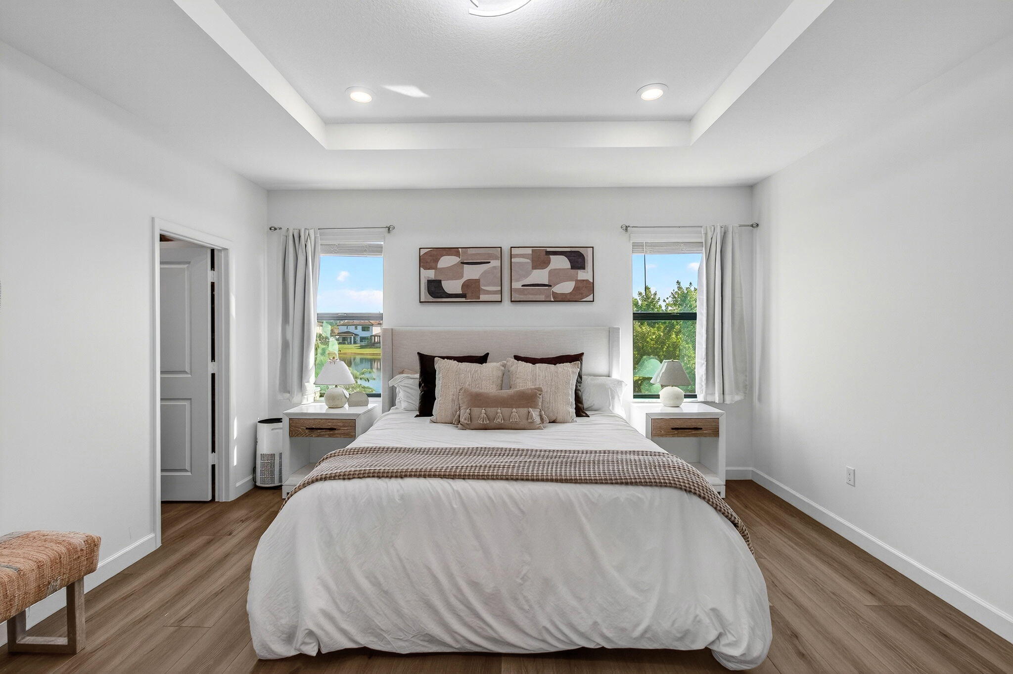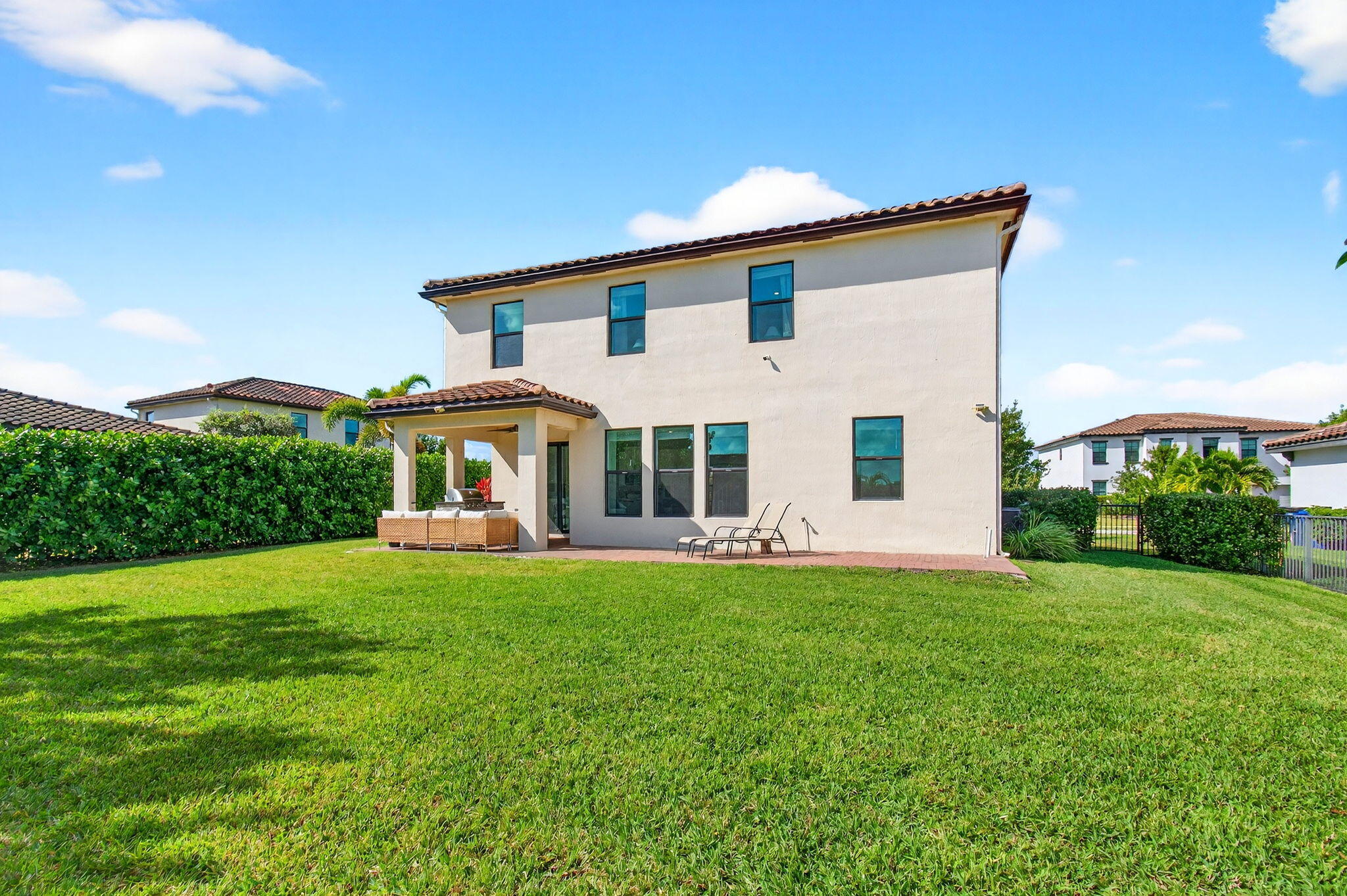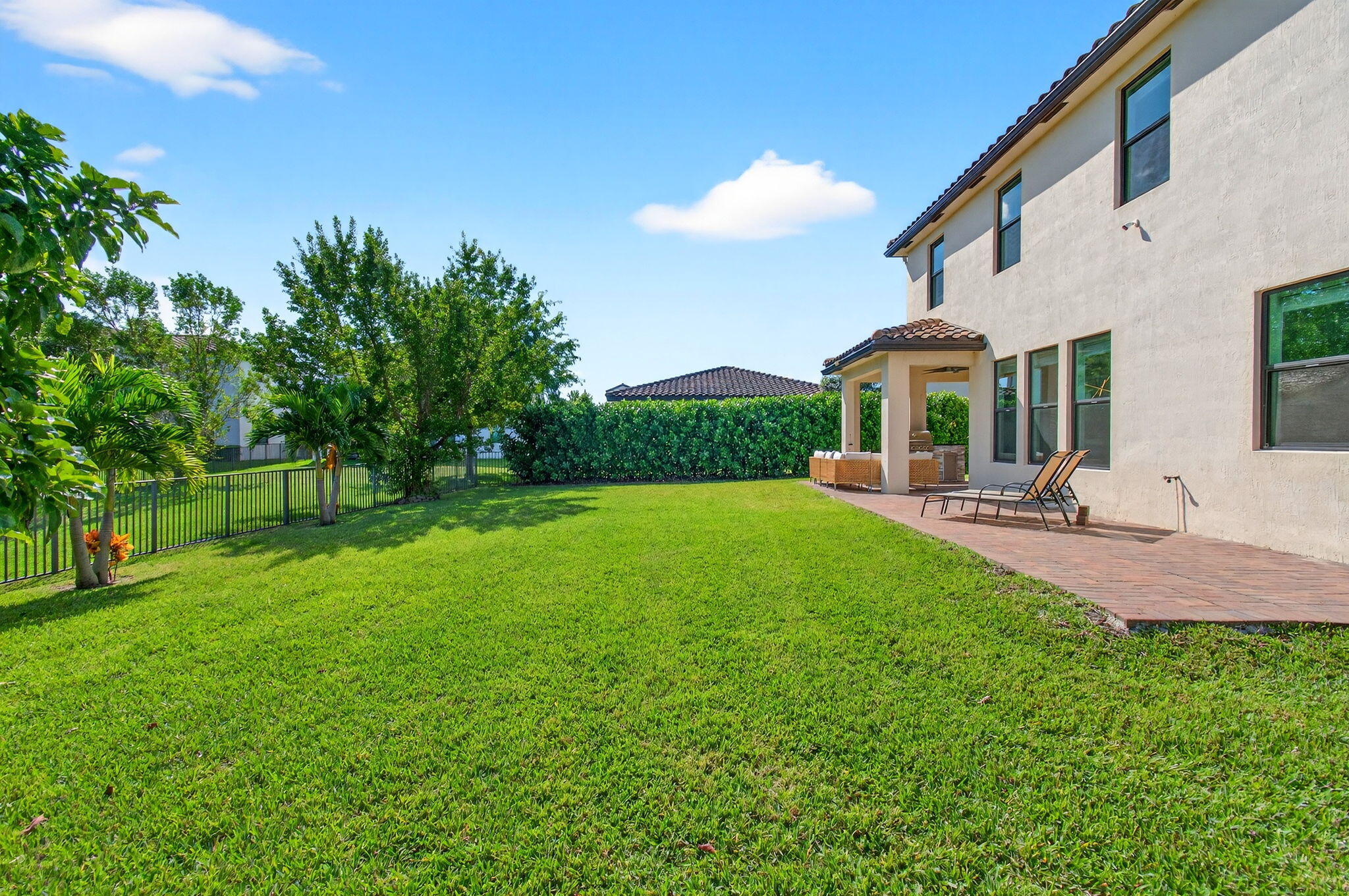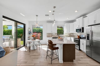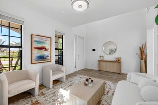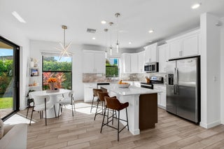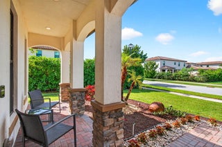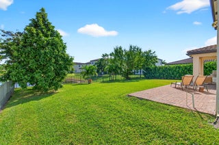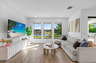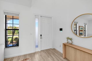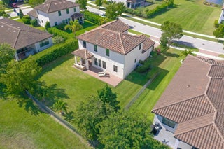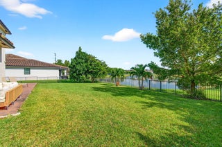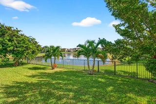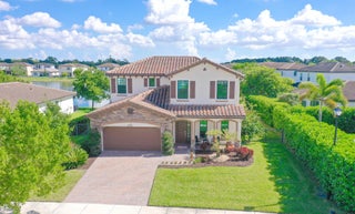 WATER, WATER EVERYWHERE- experience lake views from nearly every room in this bright contemporary Bellasera home!As you arrive, you are greeted by freshly manicured landscaping & a welcoming front porch overlooking the lake , with another lake behind the home for the ultimate privacy & serenity. The fully fenced backyard is enormous, offering plenty of room to design your dream pool while maintaining abundant green space for your four-legged friends to play. Mature Clusia hedges create a natural privacy wall, beautifully framing the water views. An impressive 12' x 40' brick paver patio provides the perfect space for alfresco dining & outdoor entertainment. Built in 2020, this home features a newer roof and full-impact glass for total peace of mind, along with lower insurance rates.Step inside a ZEN-LIKE living room (can be a dining room) with a custom decorative accent wall and peaceful front lake views. The open kitchen flows seamlessly into the spacious family room, highlighting an abundance of glass that brings the outdoors in, filling the home with natural light and vibrant energy. The kitchen design is right on trend with white shaker cabinetry, cabinet crown molding, a 24" cabinet above the refrigerator, quartz countertops, an exotic marble backsplash, reverse osmosis dispenser, and stainless-steel appliances. A counter-height island with a rich contrasting wood and contemporary lighting complete this bright, cheerful South Florida living space. A large walk-in pantry tucked under the staircase adds incredible storage and convenience. This thoughtful two-story layout offers the best of all worlds, including a DOWNSTAIRS BEDROOM with stunning lake views and a full bath, ideal for an in-law suite, guests, or a home office with a view. The first floor features stylish porcelain wood planks, while the staircase and upper-level feature luxury vinyl plank flooring (no carpet anywhere). Upstairs, the primary suite impresses with a coffered ceiling, expansive lake views, and a fully outfitted walk-in closet that maximizes ceiling height. The primary bath is beautifully cohesive with dark wood cabinetry, white quartz countertops, a roman tub, a seamless glass shower and tile to the ceiling. Two additional guest bedrooms are also upstairs, both offering lake views. The back bedroom is perfect for a peaceful home office with a view as well. YOU DO NOT WANT TO MISS THIS ONE! It is all about location and this move-in ready home will not last. Community amenities include a resort-style beach-entry pool, tennis and basketball courts, a tot lot, a state-of-the-art fitness center, and a multipurpose room. HOA includes gated security, all amenities, and maintenance of common areas. Bellasera's prime location offers quick access to Southern Boulevard, equestrian venues, premier shopping, and fine dining.