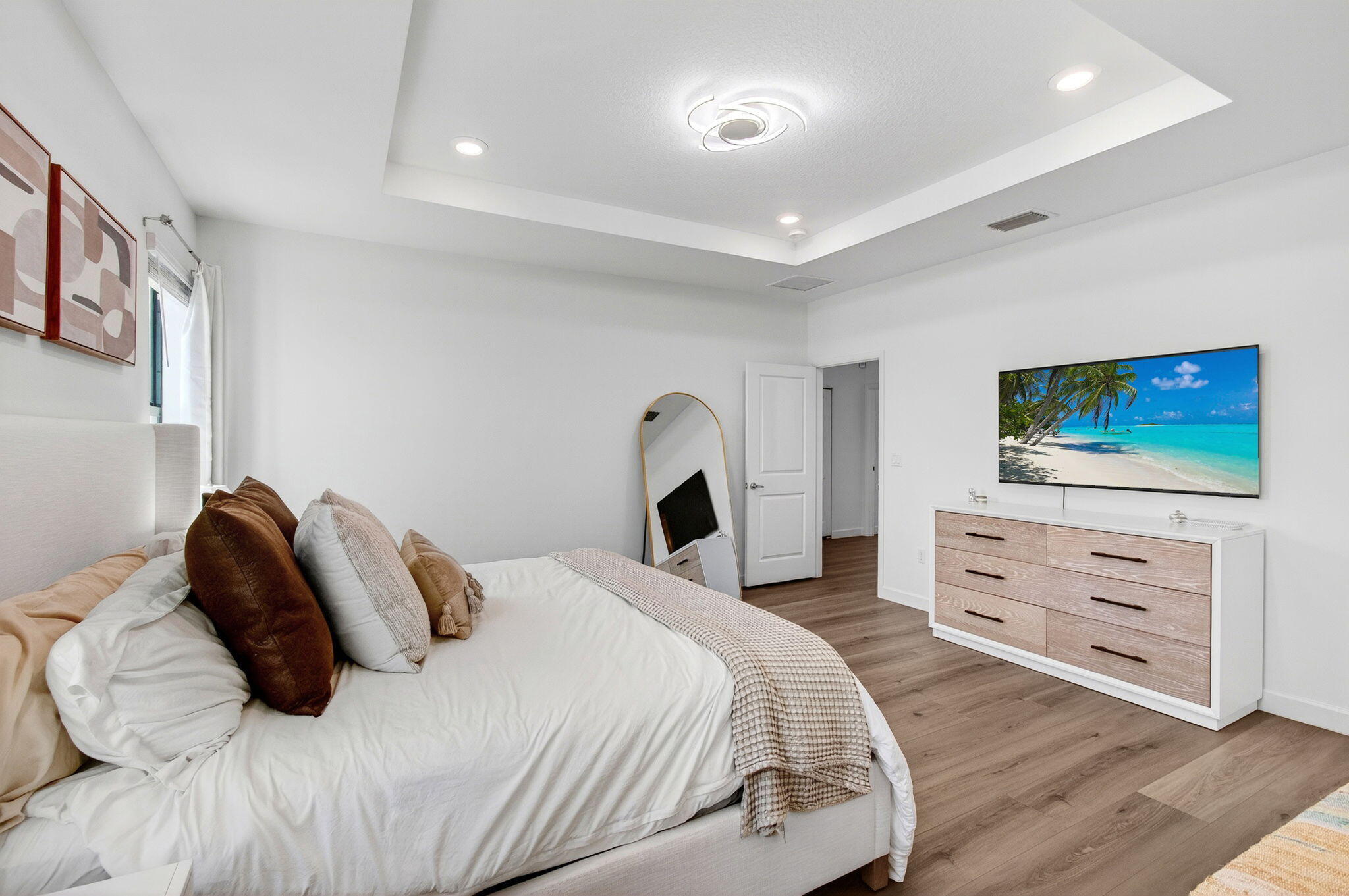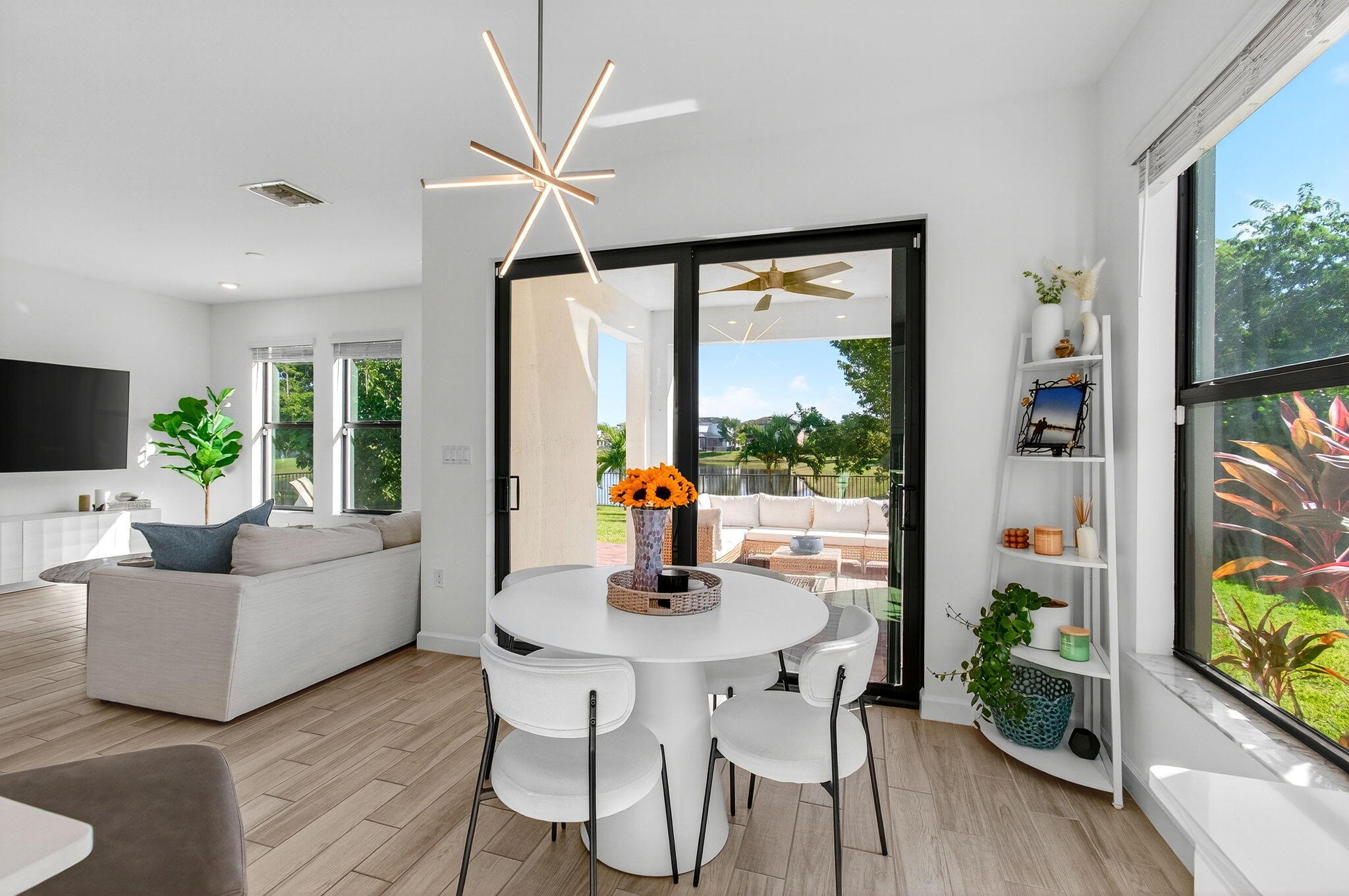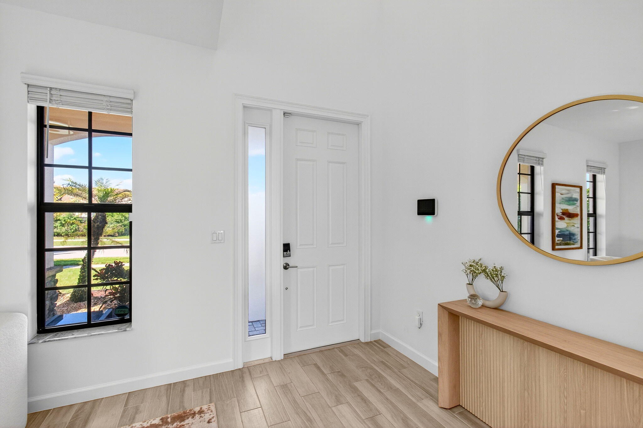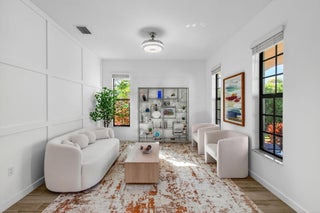 WATER, WATER EVERYWHERE- experience lake views from nearly every room in this bright contemporary Bellasera home!As you arrive, you are greeted by freshly manicured landscaping & a welcoming front porch overlooking the lake , with another lake behind the home for the ultimate privacy & serenity. The fully fenced backyard is enormous, offering plenty of room to design your dream pool while maintaining abundant green space for your four-legged friends to play. Mature Clusia hedges create a natural privacy wall, beautifully framing the water views. An impressive 12' x 40' brick paver patio provides the perfect space for alfresco dining & outdoor entertainment. Built in 2020, this home features a newer roof and full-impact glass for total peace of mind, along with lower insurance rates.Step inside a ZEN-LIKE living room (can be a dining room) with a custom decorative accent wall and peaceful front lake views. The open kitchen flows seamlessly into the spacious family room, highlighting an abundance of glass that brings the outdoors in, filling the home with natural light and vibrant energy. The kitchen design is right on trend with white shaker cabinetry, cabinet crown molding, a 24" cabinet above the refrigerator, quartz countertops, an exotic marble backsplash, reverse osmosis dispenser, and stainless-steel appliances. A counter-height island with a rich contrasting wood and contemporary lighting complete this bright, cheerful South Florida living space. A large walk-in pantry tucked under the staircase adds incredible storage and convenience. This thoughtful two-story layout offers the best of all worlds, including a DOWNSTAIRS BEDROOM with stunning lake views and a full bath, ideal for an in-law suite, guests, or a home office with a view. The first floor features stylish porcelain wood planks, while the staircase and upper-level feature luxury vinyl plank flooring (no carpet anywhere). Upstairs, the primary suite impresses with a coffered ceiling, expansive lake views, and a fully outfitted walk-in closet that maximizes ceiling height. The primary bath is beautifully cohesive with dark wood cabinetry, white quartz countertops, a roman tub, a seamless glass shower and tile to the ceiling. Two additional guest bedrooms are also upstairs, both offering lake views. The back bedroom is perfect for a peaceful home office with a view as well. YOU DO NOT WANT TO MISS THIS ONE! It is all about location and this move-in ready home will not last. Community amenities include a resort-style beach-entry pool, tennis and basketball courts, a tot lot, a state-of-the-art fitness center, and a multipurpose room. HOA includes gated security, all amenities, and maintenance of common areas. Bellasera's prime location offers quick access to Southern Boulevard, equestrian venues, premier shopping, and fine dining.