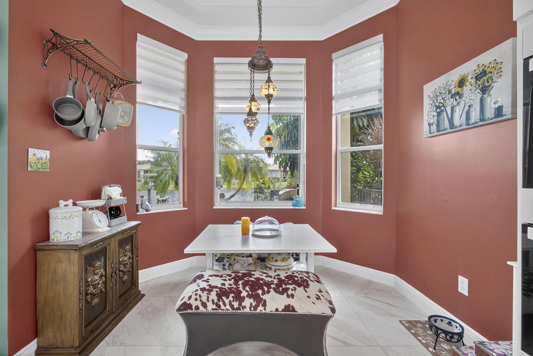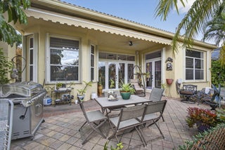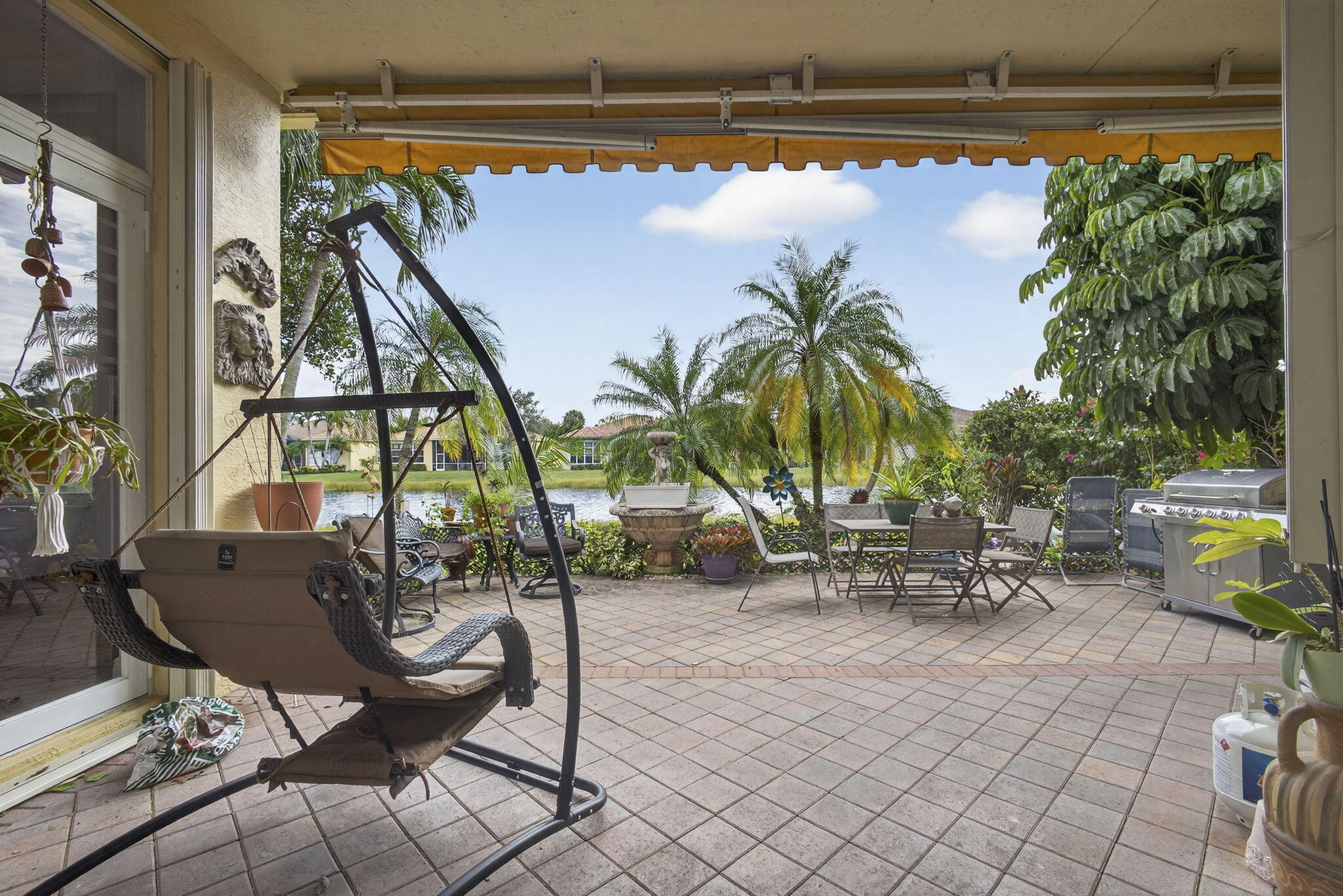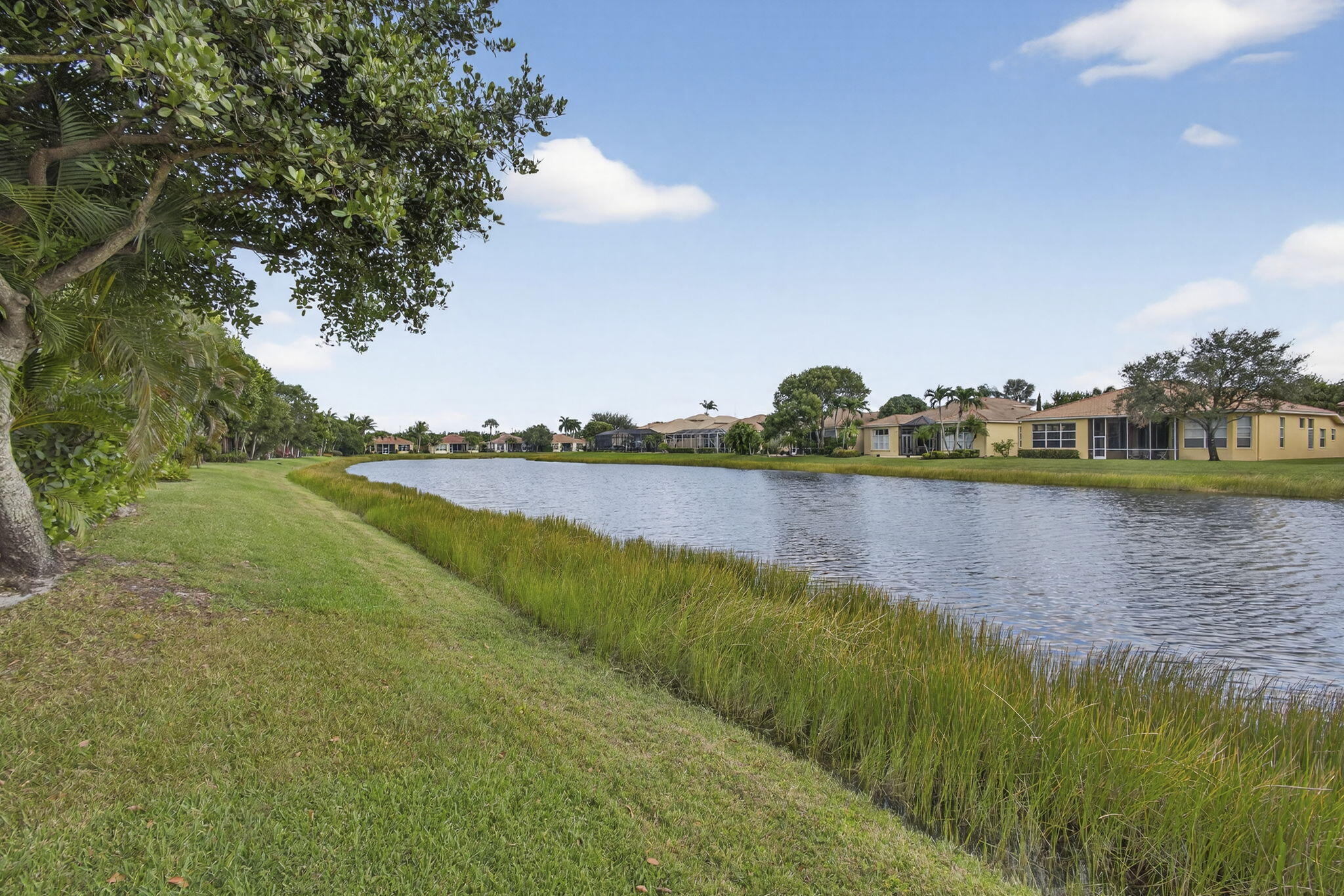 The ''good life'' is defined by Buena Vida, a resort style, full amenity, lifestyle community. Situated in cosmopolitan Wellington, which offers a bevy of restaurants & shopping with of fine merchants featured at the Wellington Green Mall.. This home ia a popular model featuring a great room, & a modernized open format kitchen. Two bedrooms & a convertible den/office (or bedroom) with 2.5 baths to serve the needs of the owners and guests. This lakeside home has recently been modernized with new 28X28 porcelain tiles throughout the main living area. Natural honey toned wood flooring is a warm feature in the primary bedroom. The recent kitchen remodel features quartz countertops & an island sink, offering breakfast bar seating. New white cabinets deliver a move in ready new home.
