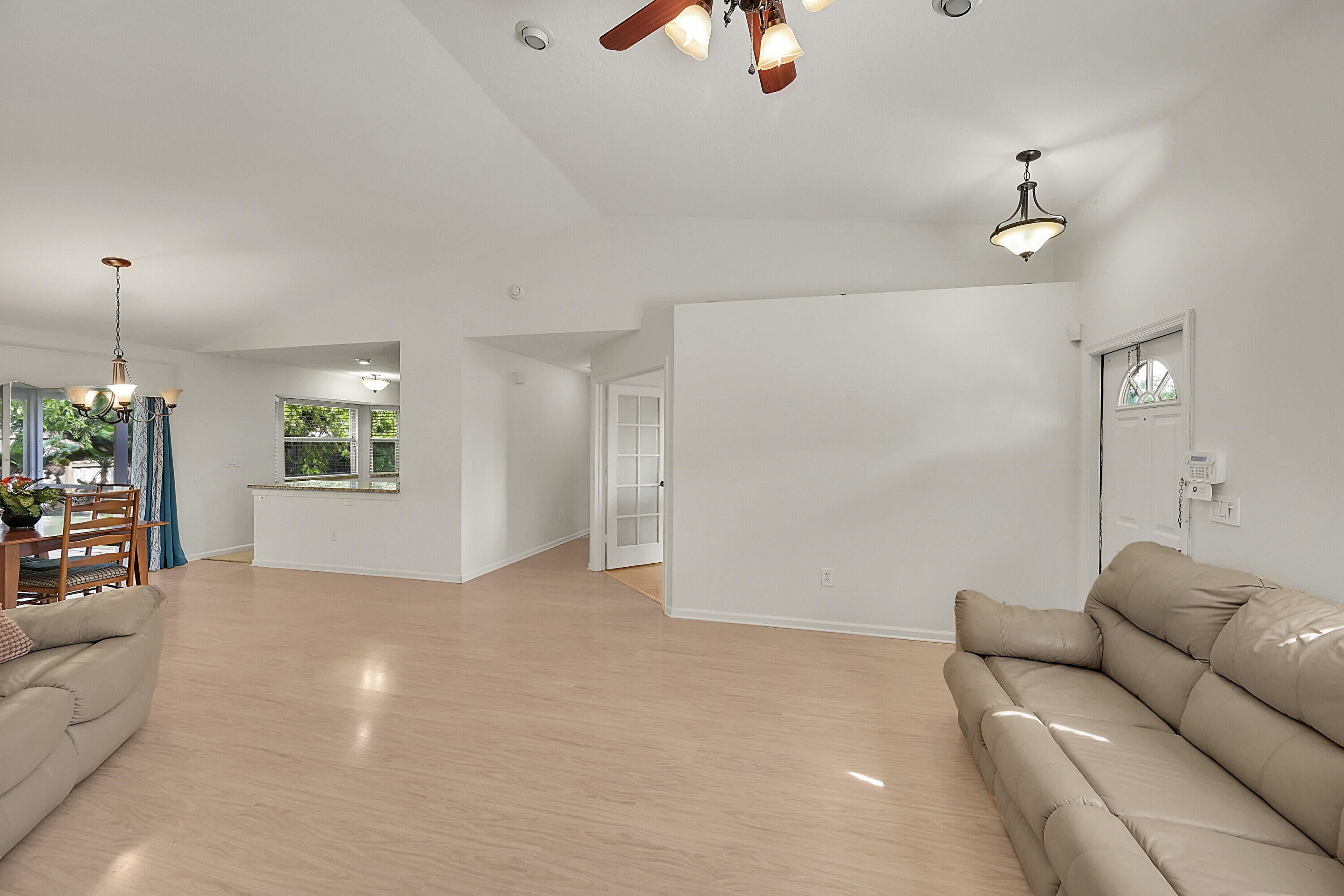 Located on a quiet cul-de-sac, this beautifully maintained 3-bedroom, 2-bath home features a bright eat-in kitchen with granite counters, tile backsplash, stainless steel appliances, snack bar, and walk-in pantry. Enjoy wood floors in the living and dining rooms with elegant window treatments and French doors.The master suite offers wood floors, two walk-in closets, and a ceiling fan. Relax on the screened patio overlooking a fenced yard with mature landscaping. Updates include exterior paint (2025), patio roof and screens (2020), water heater (2019), A/C (2017), and a very well-maintained roof (2006). Added features: generator transfer switch, lightning protector, panel shutters, irrigation system, and split floor planSaratoga Pines offers great amenitiescommunity pool, 2 pickleball courts, tennis, basketball, playground, BBQ area, and a beautiful nature preserve within the communityall for just $45/month HOA. Located in sought-after Saratoga Pinesclose to excellent schools and shopping, yet tucked away for peace and privacy. A must-see!