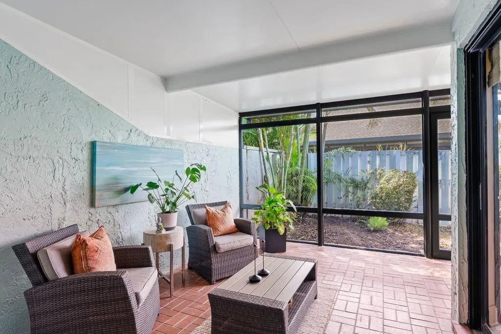 The heart of this 2bed 2bath home is an open flow that boasts stunning Shiplap and a vaulted ceiling. This private, coastal-chic patio villa offers white shaker cabinetry, quartz countertops, and durable ash gray porcelain tile throughout ensuring an easy upkeep. The large enclosed patio off the living area creates a perfect ambiance for al fresco dining and stargazing. The property comes with 1 carport, as well as 1 open parking spot, and a separate space for a golf cart. 2 outdoor storage areas. With its perfect blend of coastal charm, luxurious amenities, and unbeatable location within Jonathan's Landing, this incredible home is the ultimate haven for those seeking a relaxed, resort-inspired lifestyle with no obligatory golf membership.