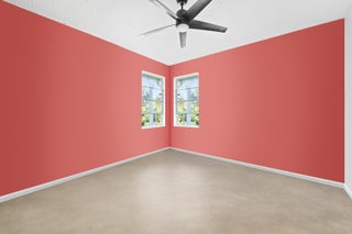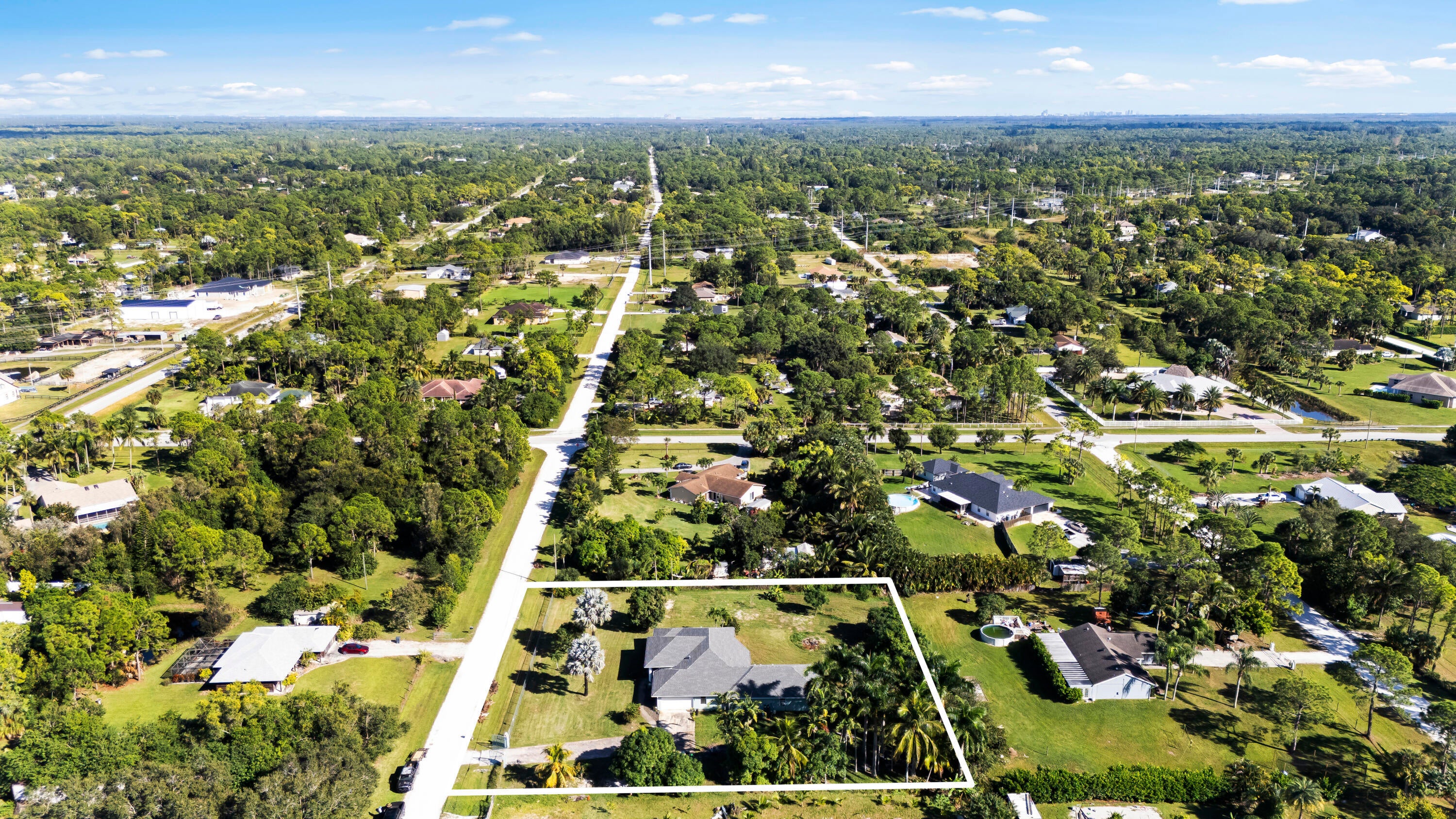 This stunning 5-bedroom, 4-bathroom home offers 4,121 total sq ft, with 3,058 under air square footage, nestled on a 1.15-acre dry, cleared lot. The split bedroom layout provides privacy and comfortability, with high ceilings throughout creating an airy atmosphere. Formal living, dining, and family rooms offer perfect spaces for entertaining. The large front foyer and double door entry add grandeur. Oversized bedrooms include a primary suite with double walk-in closets, double vanities, and a luxurious feel. Outdoors, enjoy a large covered back patio, large covered front porch, with a spacious driveway, and a 2-car garage. Located off two main paved roads, it offers quick access for easy commuting and errands. Ideal for customizing your dream home in the desirable area of Loxahatchee