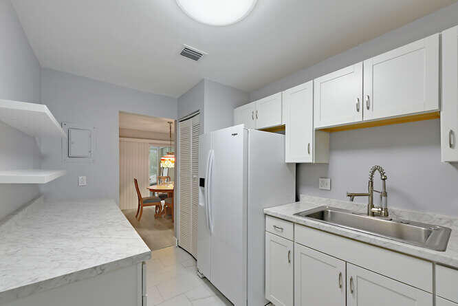 Welcome to this newly renovated end unit surrounded by lush greenery within the coveted Limetree Community. Experience the comfort and quiet of this charming villa, nestled in the peaceful, oak tree-lined 55+ neighborhood which includes private entrances and driveways with two parking spots. This home boasts new flooring with 6'' baseboards, updated kitchen and bathrooms, new A/C (2025) and a new roof (2022). Limetree offers an active, resort-style lifestyle with three pools (one just steps away), tennis, pickleball, bocce, shuffleboard, a fitness center, billiards room, and 24/7 roaming security.