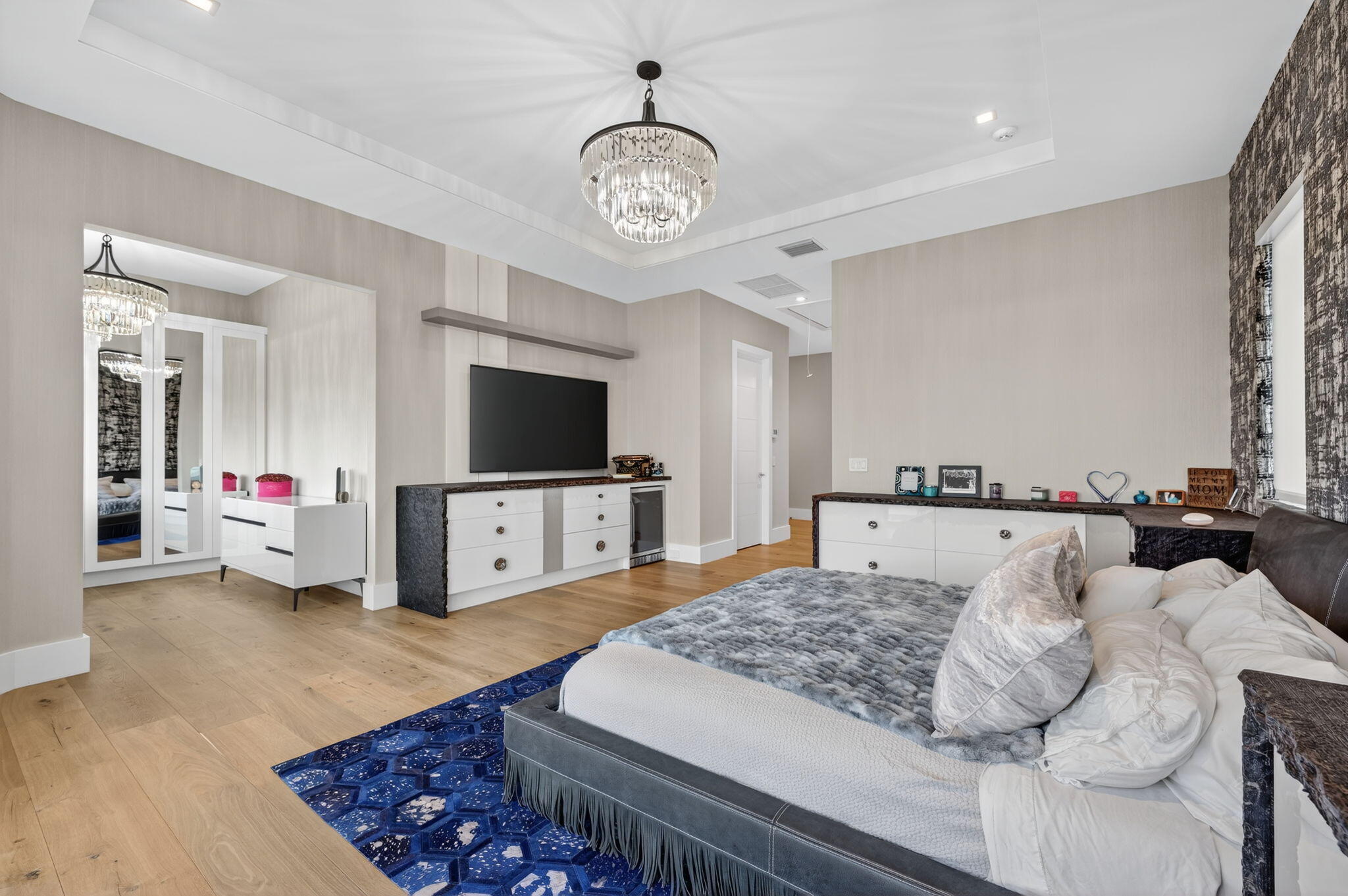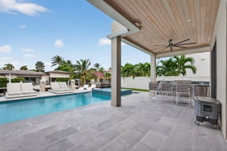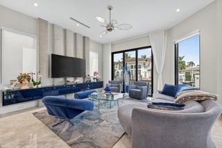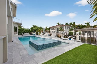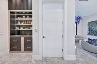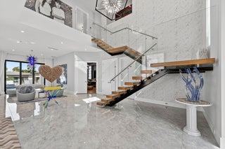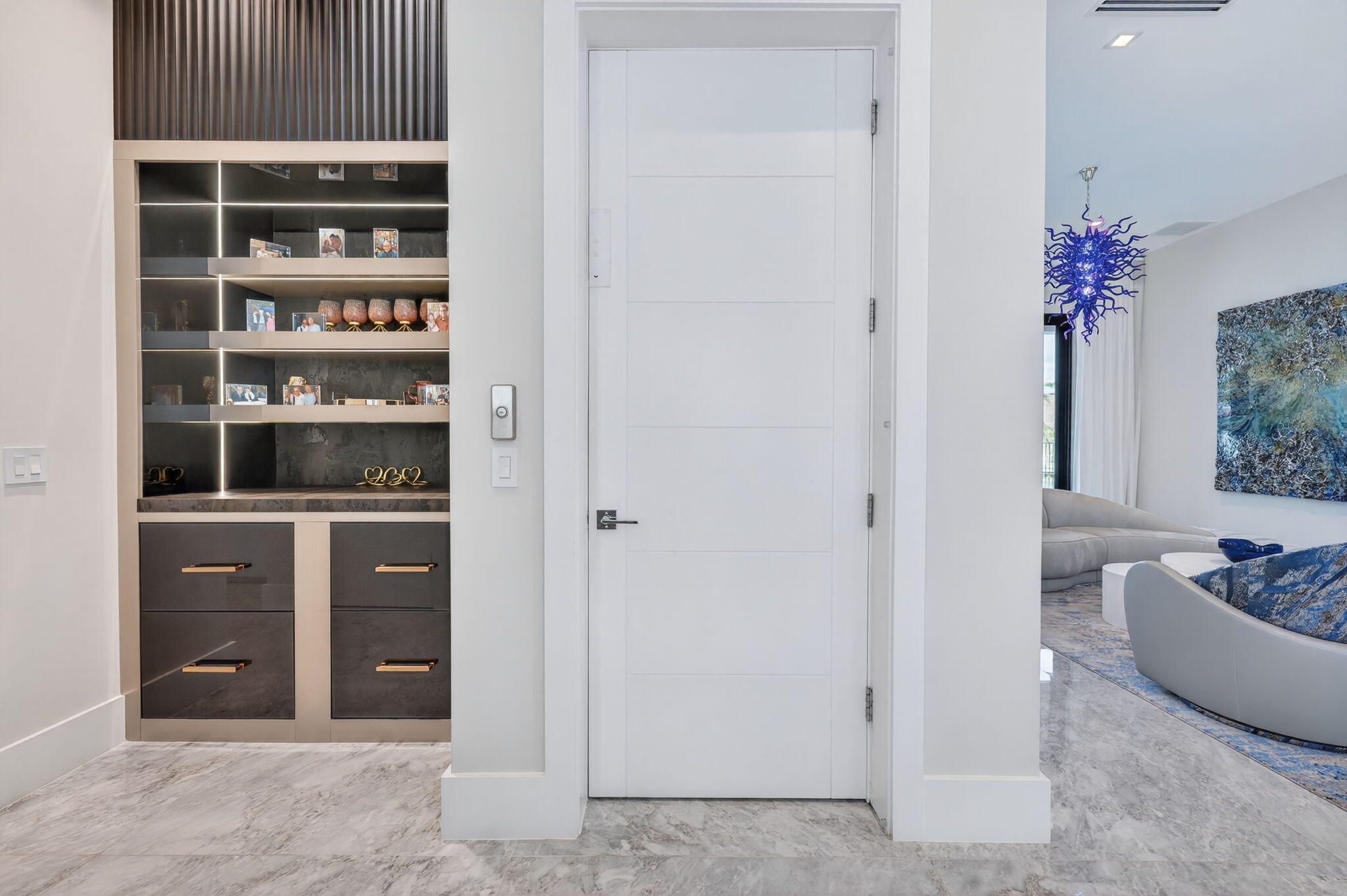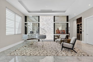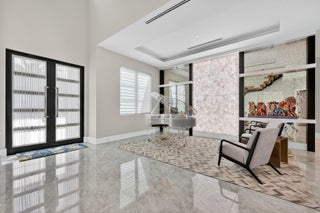 Exquisite Waterfront Estate with Unrivaled Luxury Finishes. Experience modern waterfront living in this magnificent newer-construction residence, showcasing a brand-new seawall and extraordinary high end craftsmanship. Upon entry, you're greeted by a dramatic illuminated marble feature wall and custom floating staircase--a stunning architectural centerpiece. The open-concept living spaces are highlighted by designer fixtures, impact-resistant windows, doors, and garage doors. 3 Carrier Infinity A/C systems for ultimate climate control. The chef's dream kitchen is a masterpiece featuring all Miele appliances, including oversized refrigerator units, two dishwashers, double ovens, speed oven, built-in coffee maker, pot filler, and induction all surrounded by exquisite custom cabinetry.Adjacent, a built-in beverage station with four Sub-Zero fridge drawers and a custom light-up marble bar with Sub-Zero wine storage make entertaining effortless. Enjoy cinematic experiences in the custom media room/theater, complete with a 7" marble fireplace, cabana bath, and designer lighting. Each en-suite bedroom offers a custom walk-in closet, with finishes such as Italian 48x48 porcelain flooring and 9.5" wide French oak engineered wood floors. The primary suite is an elegant retreat, featuring a private office, built-in dressers with artistic marble tops, additional custom closets, dual Toto toilets, a double shower, freestanding soaking tub, and a pink quartz light-up vanity. Outdoor living is equally spectacular: an outdoor kitchen, turf yard, and resort-style pool (40x14) with Champagne Spa surrounded by marble pavers and lush new palm landscaping. Additional features include an elevator, whole-house generator, and extensive custom built-ins throughout. This home redefines waterfront luxury, a must-see masterpiece for the discerning buyer.