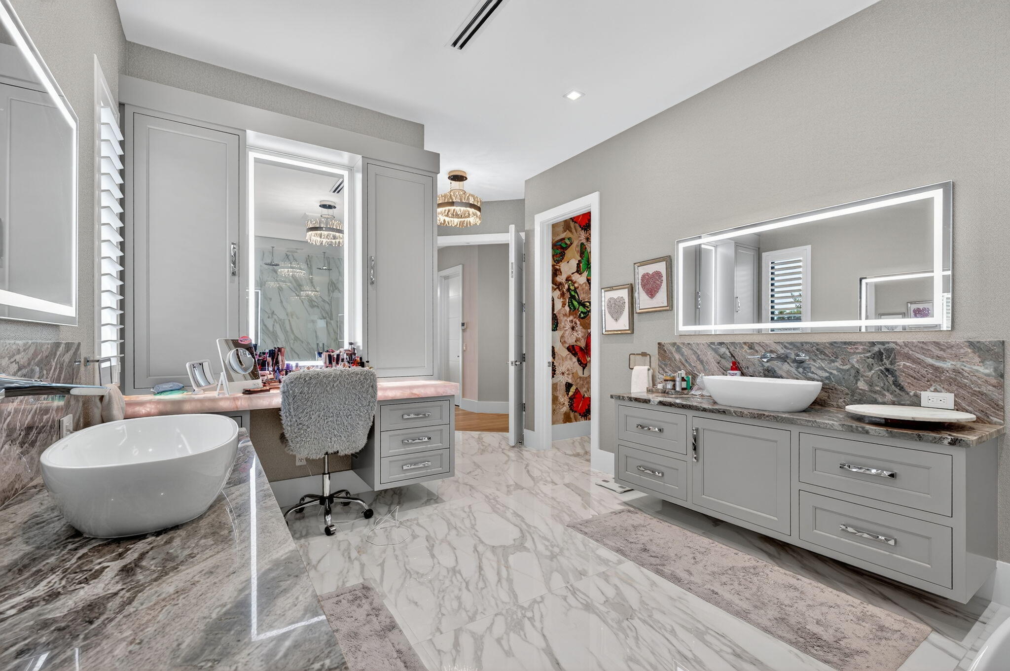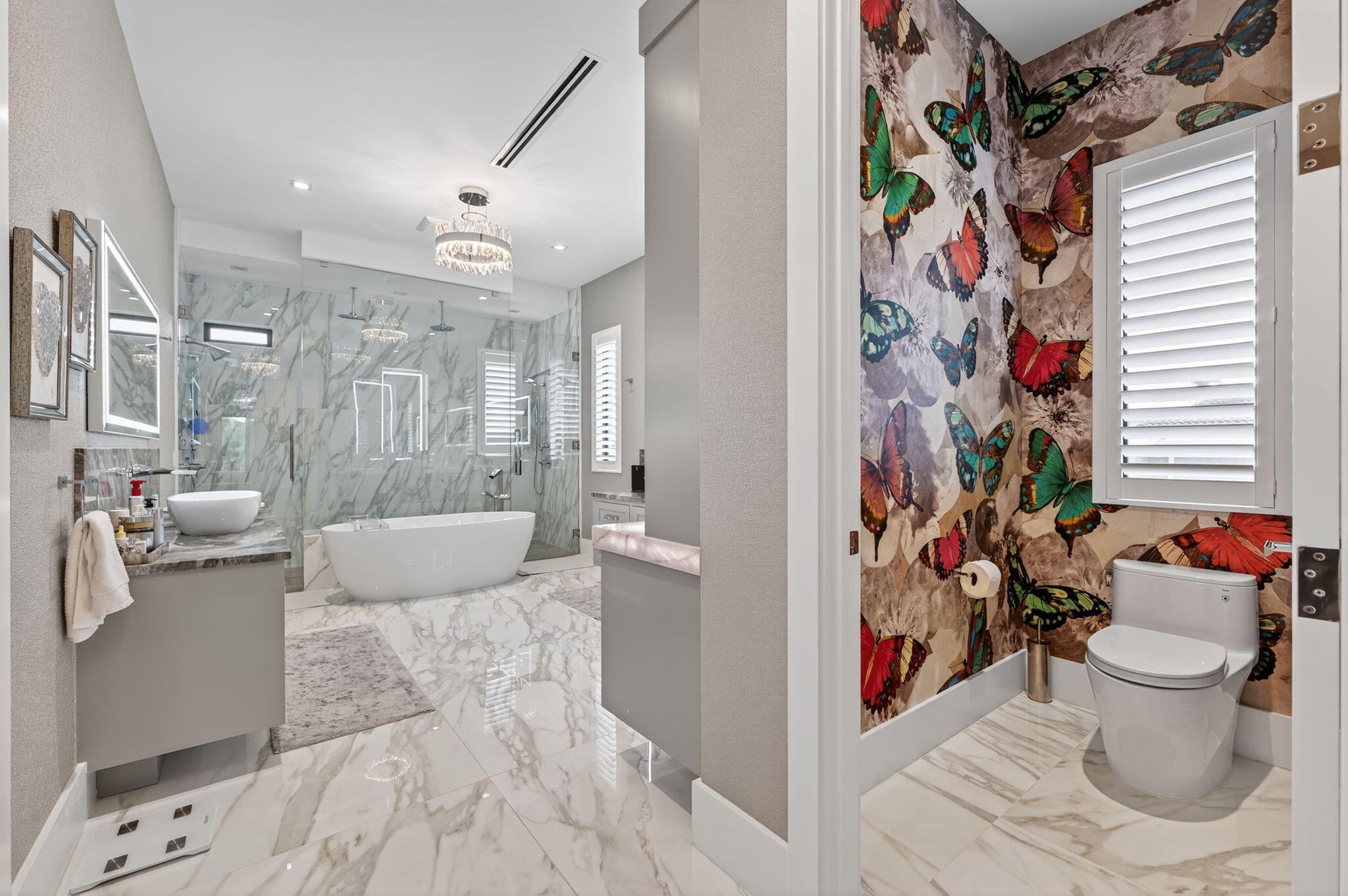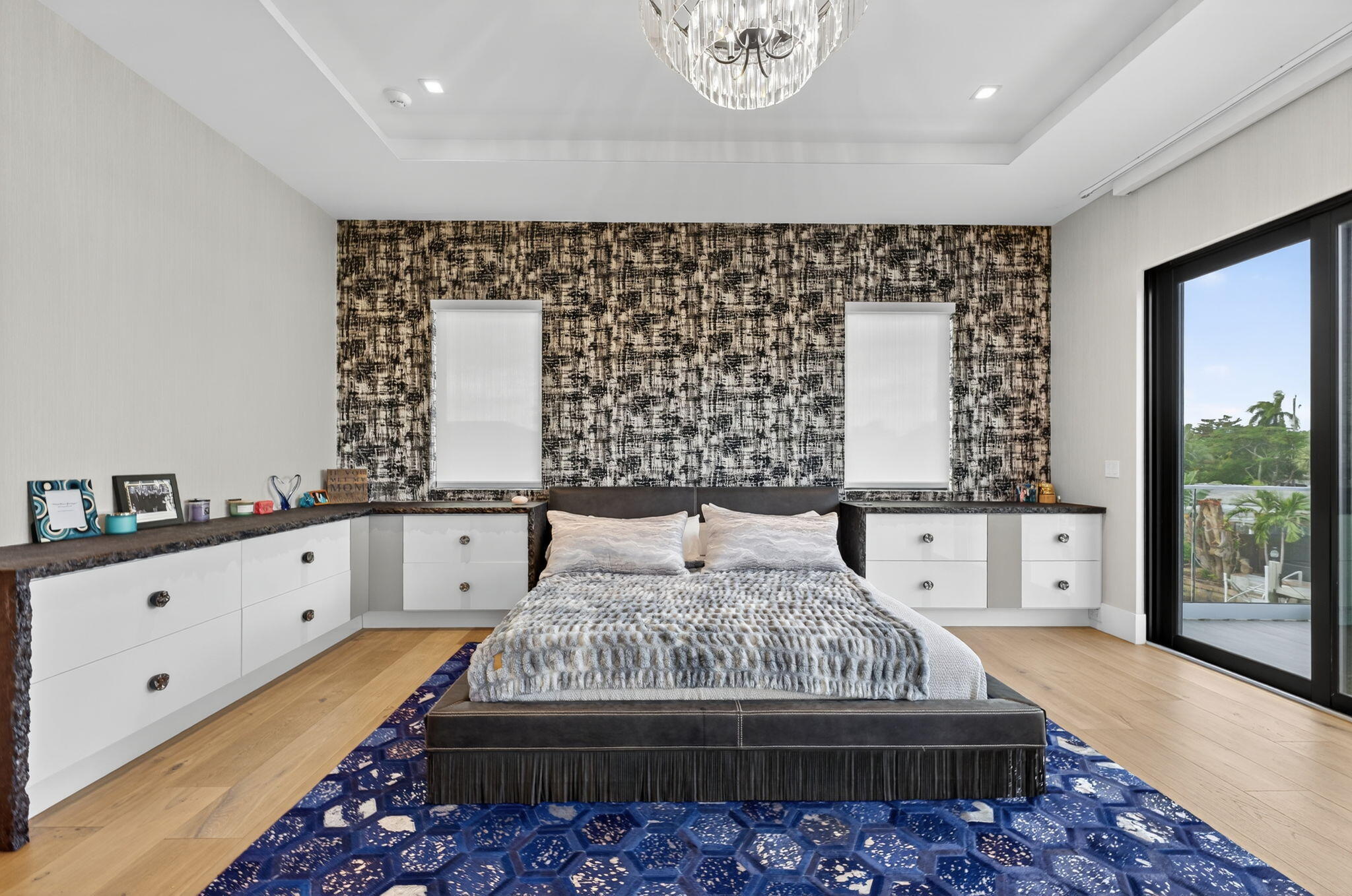 Exquisite Waterfront Estate with Unrivaled Luxury Finishes. Experience modern waterfront living in this magnificent newer-construction residence, showcasing a brand-new seawall and extraordinary high end craftsmanship. Upon entry, you're greeted by a dramatic illuminated marble feature wall and custom floating staircase--a stunning architectural centerpiece. The open-concept living spaces are highlighted by designer fixtures, impact-resistant windows, doors, and garage doors. 3 Carrier Infinity A/C systems for ultimate climate control. The chef's dream kitchen is a masterpiece featuring all Miele appliances, including oversized refrigerator units, two dishwashers, double ovens, speed oven, built-in coffee maker, pot filler, and induction all surrounded by exquisite custom cabinetry.Adjacent, a built-in beverage station with four Sub-Zero fridge drawers and a custom light-up marble bar with Sub-Zero wine storage make entertaining effortless. Enjoy cinematic experiences in the custom media room/theater, complete with a 7" marble fireplace, cabana bath, and designer lighting. Each en-suite bedroom offers a custom walk-in closet, with finishes such as Italian 48x48 porcelain flooring and 9.5" wide French oak engineered wood floors. The primary suite is an elegant retreat, featuring a private office, built-in dressers with artistic marble tops, additional custom closets, dual Toto toilets, a double shower, freestanding soaking tub, and a pink quartz light-up vanity. Outdoor living is equally spectacular: an outdoor kitchen, turf yard, and resort-style pool (40x14) with Champagne Spa surrounded by marble pavers and lush new palm landscaping. Additional features include an elevator, whole-house generator, and extensive custom built-ins throughout. This home redefines waterfront luxury, a must-see masterpiece for the discerning buyer.