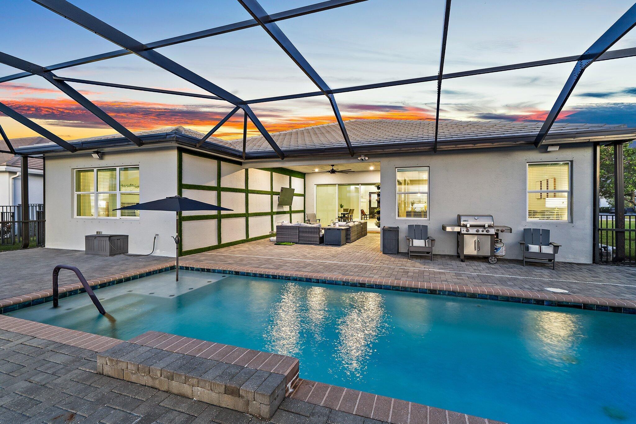 Redefining luxury living at Westlake!Sited on an oversized corner lot, this 2018 CBS Ranch style home offers five bedrooms + den. The idyllic lakefront location offers breathtaking sunset views. Design elements include custom closets, plank tile flooring, an open chef's kitchen with upgraded stainless steel appliances, two-car garage with EV charging, and a custom heated saltwater pool with a panoramic screen enclosure. The Kingfisher Grand is the premier single-story floor plan in Westlake, offering generously sized rooms across a split floor plan.Westlake is Palm Beach County's newest and most exciting new community. Westlake's Adventure Park offers endless amenities including a waterpark, food truck court, basketball courts, concert pavilion, bmx pump park and much more! The Vibrant Town Center offers shops, restaurants and local boutiques.