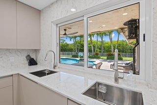 Recently renovated entire home. 5 large bedrooms with four fully renovated Bathrooms. Brand new MDF kitchen with granite counter tops, island and backsplash . New top of the line kitchen appliances with xl 33'' each stand alone fridge and freezer. additional freezer and fridge in the garage. Very large laundry room and new LG washer/dryer. Gigantic secluded master bedroom with his and her closets. Large living room and dining room overlooking pastoral backyard / pool deck. Cozy den and fireplace Quiet river running in the back, a private oasis . Beautiful greenery and palm trees surrounding home, privatizing it from all neighbors. Calmest place to enjoy life Lots of potential and land to expand. Walking distance to nearby places of worship. Developing and growing Area. Last area of Boca with large plots of land.