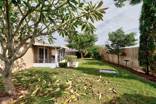 Tucked away in High Hawk, a wonderfully small gated enclave in south county, this fun & welcoming 3 bed/2 bath/2 car garage home has much sought after southern exposure! Updates include the 2021 roof & 2023 water heater. The interior has vaulted ceilings, an eat-in kitchen w/ pantry, good closet space, recessed lights & a lovely primary bedroom w/ bath featuring a big walk-in shower. Outside there is lovely upgraded landscaping, accordion hurricane shutters, gutters, a nice screened in porch & private back yard. The community is gated, has sidewalks & is close to Indian River Academy School.