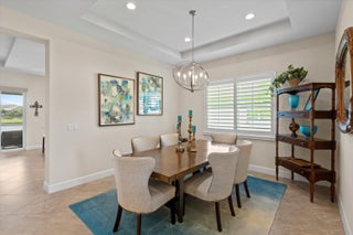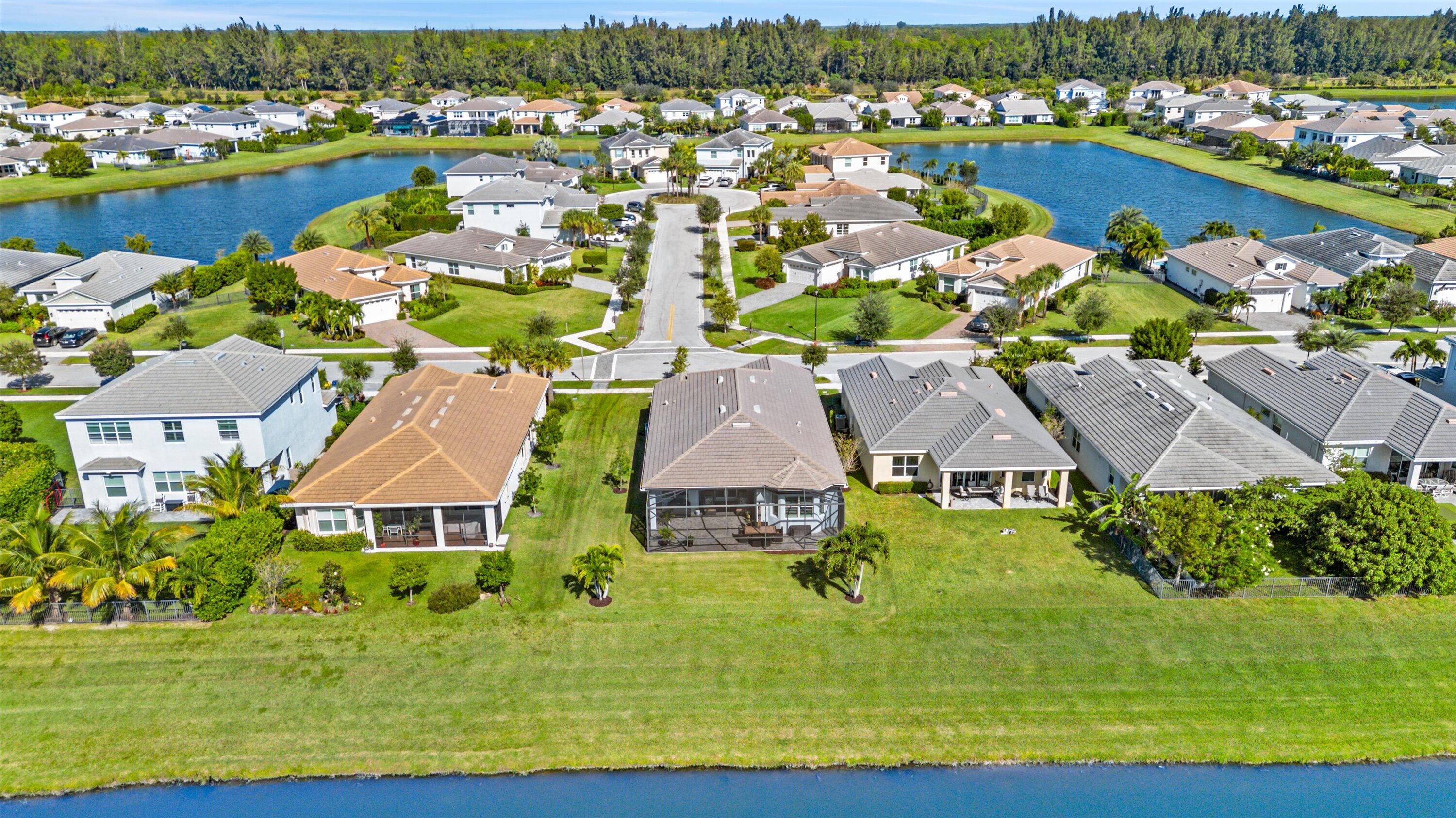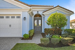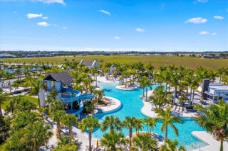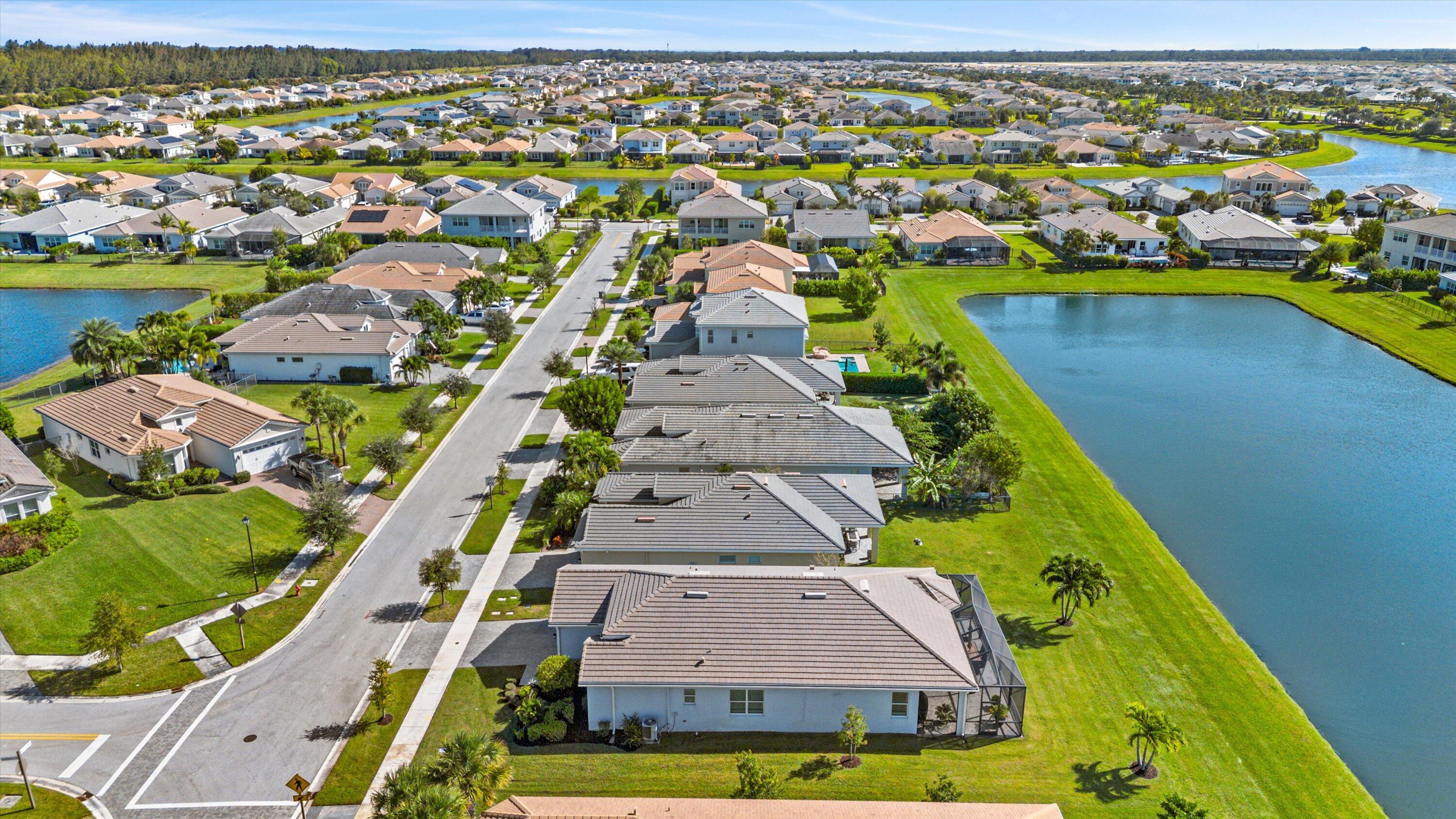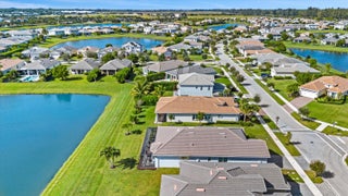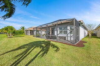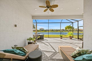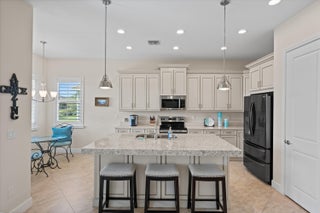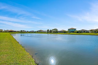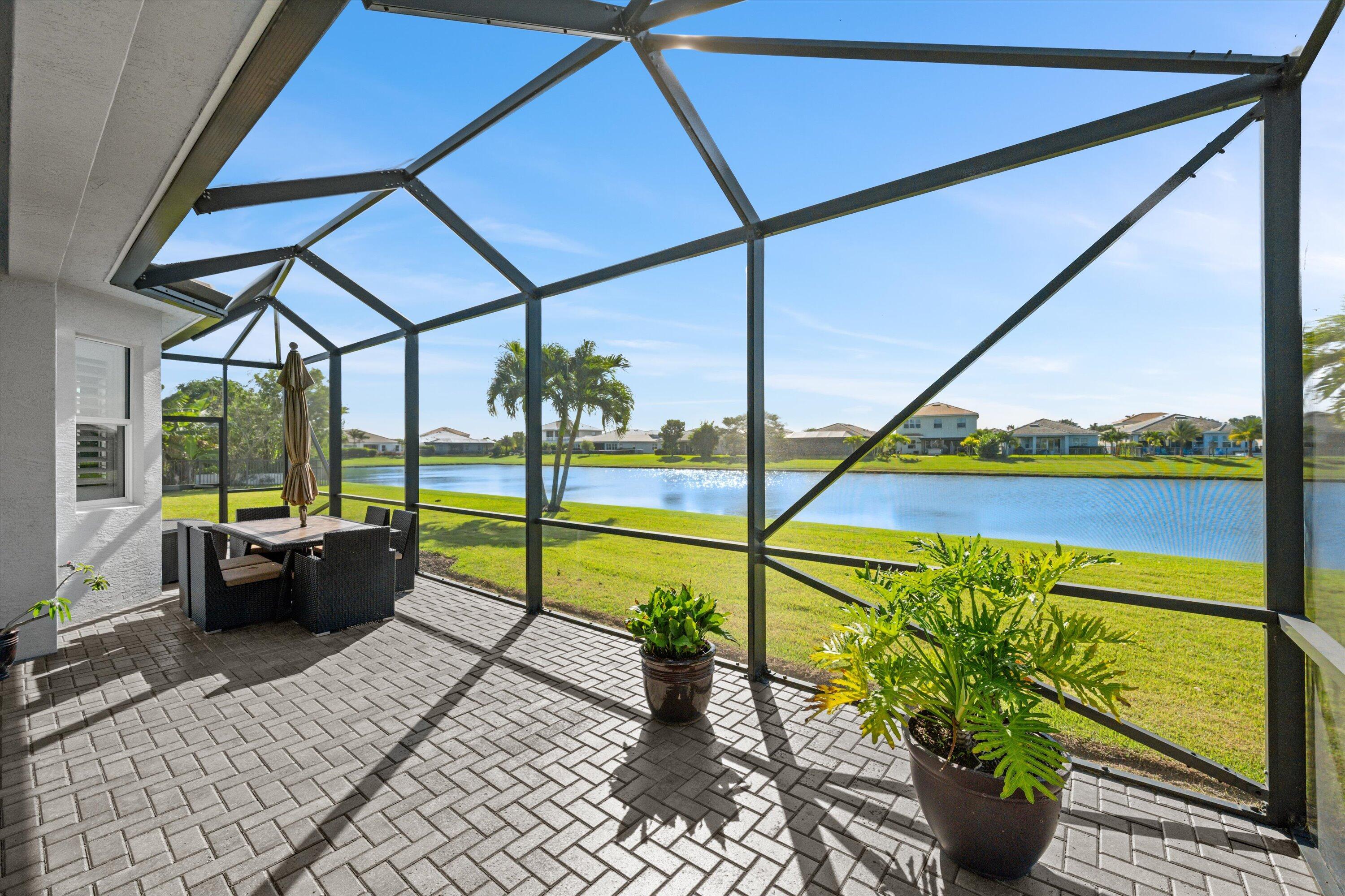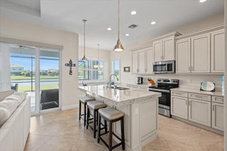 Welcome to this beautifully maintained home in The Hammocks of Westlake, offering comfort, style, and peaceful lakefront living. Please note: the third ''bedroom'' is a versatile den with double doors, functioning beautifully as an office, guest room, or flex space, but it does not have a traditional closet.The property features impact windows, a freshly sealed driveway, beautifully landscaped surroundings, and a bright, inviting interior. A side easement provides additional space between this home and the neighbor, offering extra privacy and a more open feel.Through the double-door entry, you'll find an open floor plan with upgraded tile throughout, plantation shutters, and high-hat lighting. The den with glass doors offers flexible use and can easily accommodate work-from-homeneeds, guests, or additional living space. The beautiful kitchen includes soft-close cabinetry, quartz countertops, a mitered-edge island, and a walk-in pantry, opening seamlessly to the spacious family room and dining area ideal for everyday living and entertaining. The primary suite offers plantation shutters, a generous walk-in closet, and a spa-like bathroom with quartz countertops, frameless shower, and upgraded tile. A guest ensuite features its own walk-in closet and a shower/tub combination, and a half bath is conveniently located for visitors. The laundry room includes upper cabinets, washer, and dryer. Step outside to the extended screened lanai, finished with beautiful pavers and showcasing a gorgeous, tranquil lake view the perfect spot for morning coffee, evening relaxation, or hosting friends and family. Residents of Westlake enjoy access to Adventure Park with its lagoon-style resort pool, splash pad, lap pool, ice cream shop, dog park, basketball courts, playgrounds, concert pavilion, clubhouse, fitness trail, and miles of scenic walking and biking paths. This home delivers the perfect blend of comfort, style, and resort-style living.