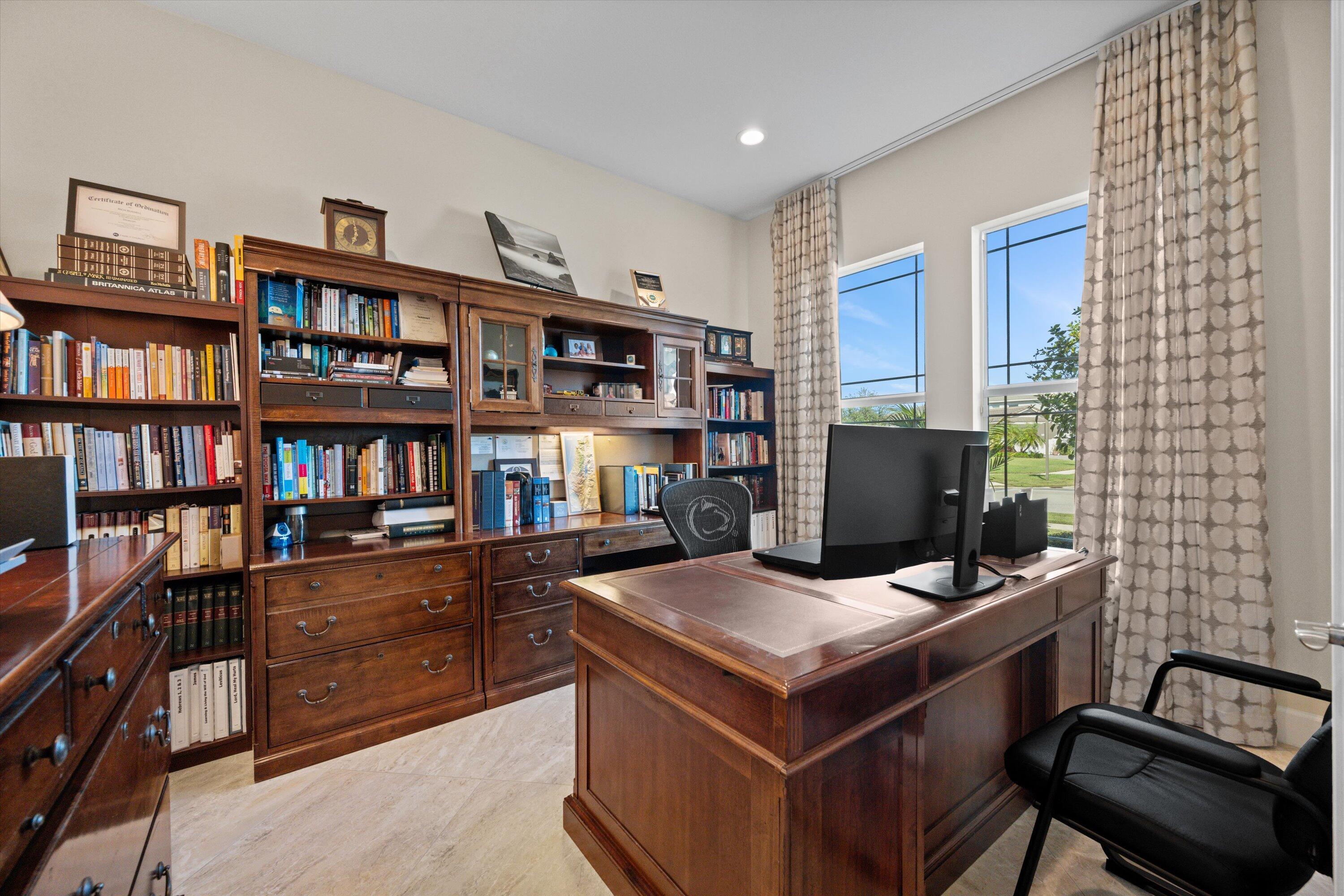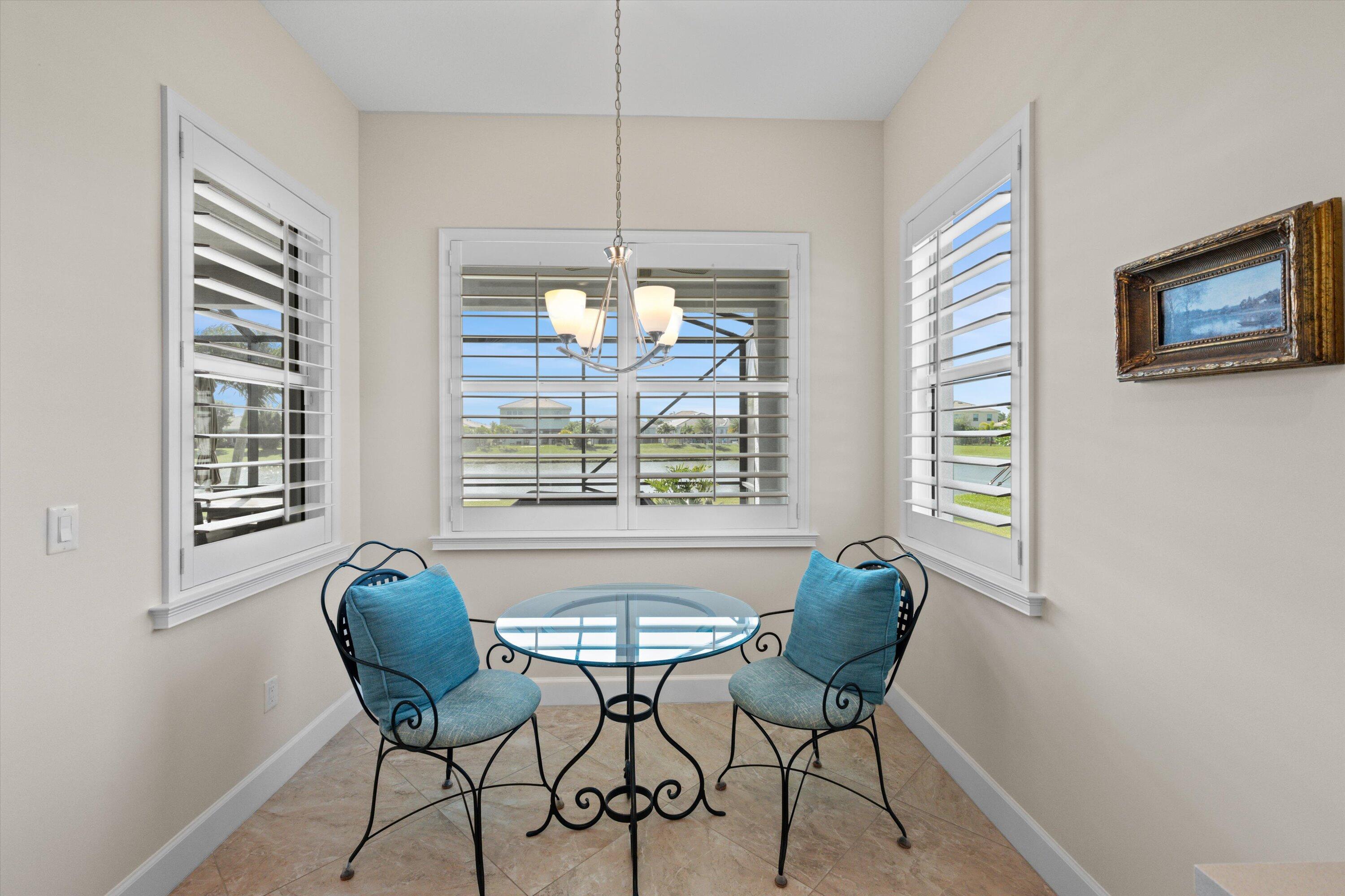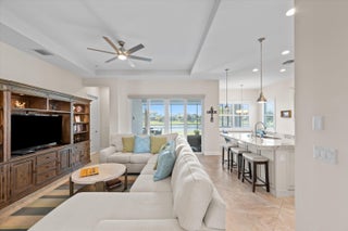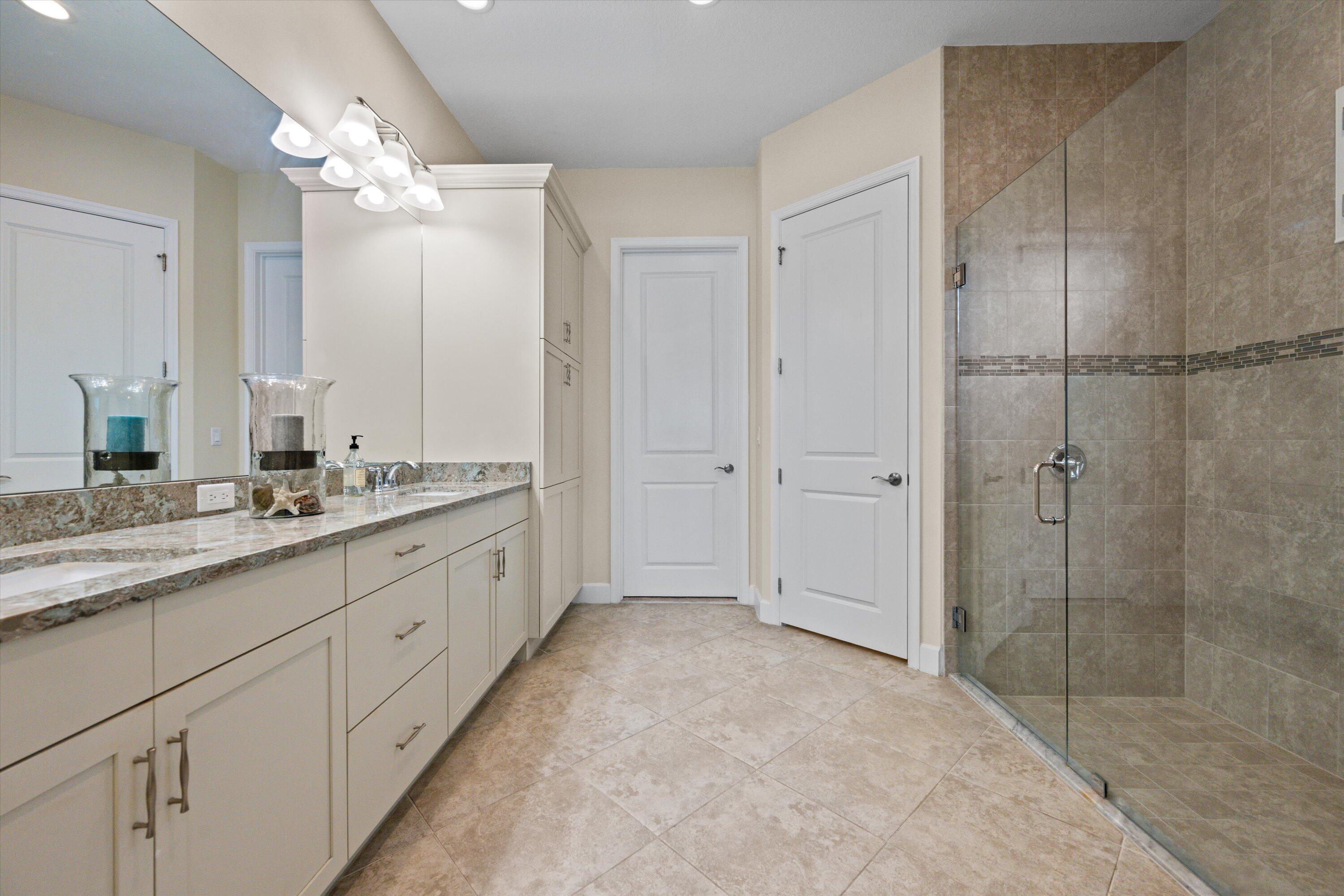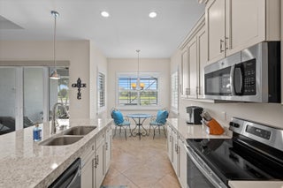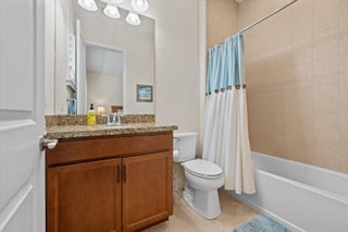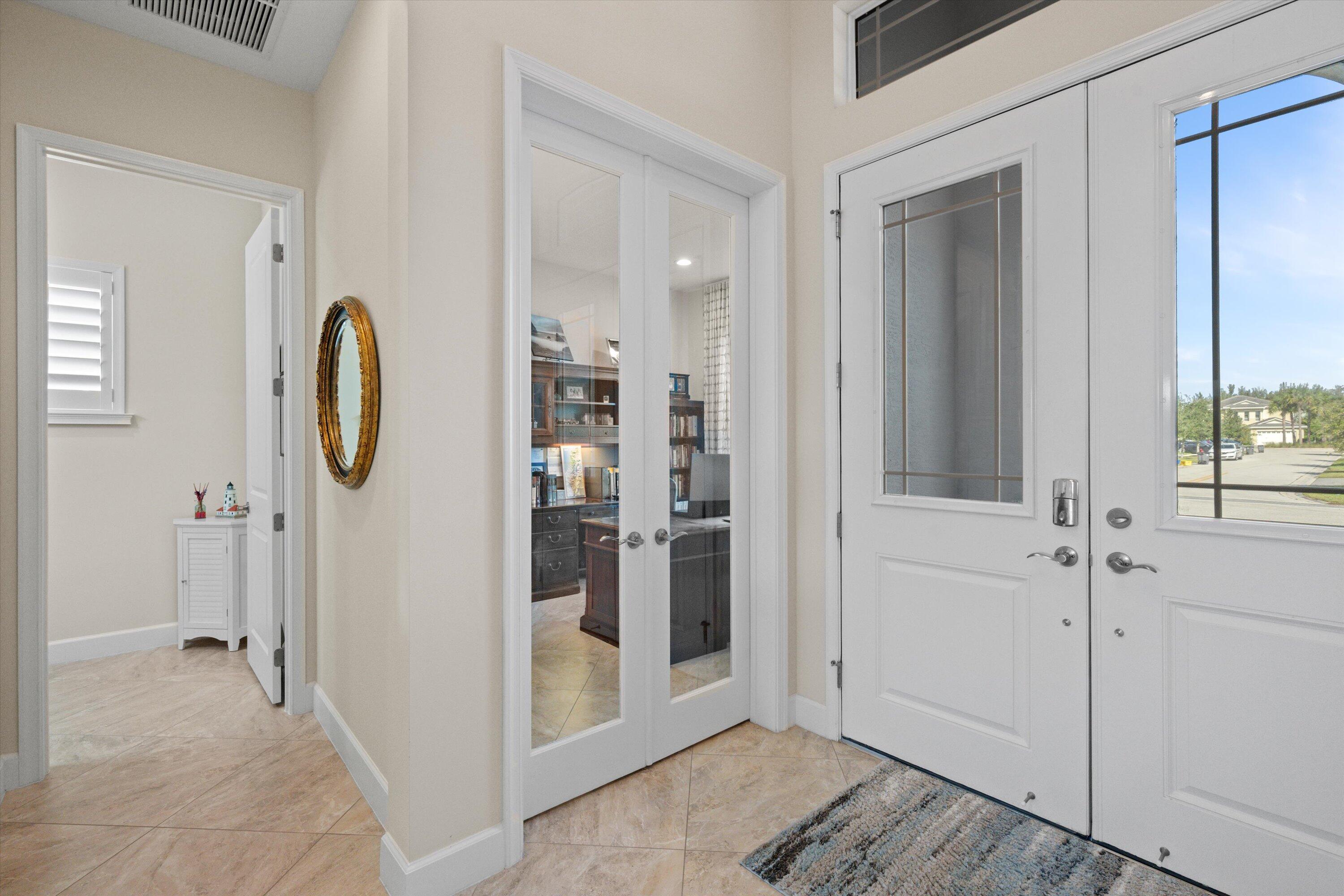 Welcome to this beautifully maintained home in The Hammocks of Westlake, offering comfort, style, and peaceful lakefront living. Please note: the third ''bedroom'' is a versatile den with double doors, functioning beautifully as an office, guest room, or flex space, but it does not have a traditional closet.The property features impact windows, a freshly sealed driveway, beautifully landscaped surroundings, and a bright, inviting interior. A side easement provides additional space between this home and the neighbor, offering extra privacy and a more open feel.Through the double-door entry, you'll find an open floor plan with upgraded tile throughout, plantation shutters, and high-hat lighting. The den with glass doors offers flexible use and can easily accommodate work-from-homeneeds, guests, or additional living space. The beautiful kitchen includes soft-close cabinetry, quartz countertops, a mitered-edge island, and a walk-in pantry, opening seamlessly to the spacious family room and dining area ideal for everyday living and entertaining. The primary suite offers plantation shutters, a generous walk-in closet, and a spa-like bathroom with quartz countertops, frameless shower, and upgraded tile. A guest ensuite features its own walk-in closet and a shower/tub combination, and a half bath is conveniently located for visitors. The laundry room includes upper cabinets, washer, and dryer. Step outside to the extended screened lanai, finished with beautiful pavers and showcasing a gorgeous, tranquil lake view the perfect spot for morning coffee, evening relaxation, or hosting friends and family. Residents of Westlake enjoy access to Adventure Park with its lagoon-style resort pool, splash pad, lap pool, ice cream shop, dog park, basketball courts, playgrounds, concert pavilion, clubhouse, fitness trail, and miles of scenic walking and biking paths. This home delivers the perfect blend of comfort, style, and resort-style living.