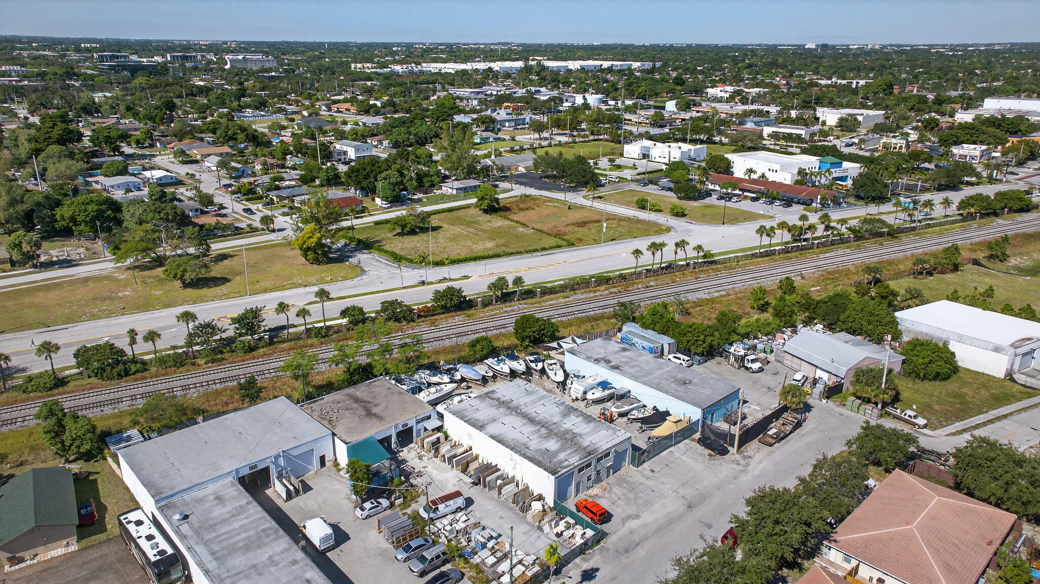 3,800 sq ft warehouse with two 1,900 sq ft units! Each unit offers office space, restrooms, multiple bay doors. and impact windows Former cabinet shop and boat storage yard--delivered vacant and empty. Unit 217 includes 13x10 and 10x10 bay doors; Unit 219 offers two 10x10 bay doors, interior ceiling height of 14.6 ft and a larger office. Property includes secure parking for up to 18 trailers plus plenty of front parking. Ideal for storage, light industrial, or fabrication