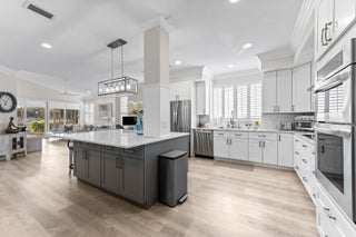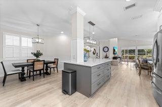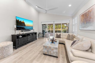 Beautifully renovated, newly furnished 3bed 2.5bath single-family home with direct golf-course views. The main level features a bright, open kitchen-living area with an oversized kitchen island, flooded with natural light, creating an ideal space for cooking and entertaining. The updated primary suite is conveniently located on the first floor. A large screened-in patio extends the living space, providing the perfect spot to enjoy golf-course sunsets, with room for a small pool. Upstairs, two comfortable bedrooms share a Jack-and-Jill bath. Additional features include impact glass, plantation shutters, and an expanded garage. The HOA takes care of it all; lawn care, exterior maintenance, roof maintenance, cable & 24-hour gated security. Minutes from I-95.